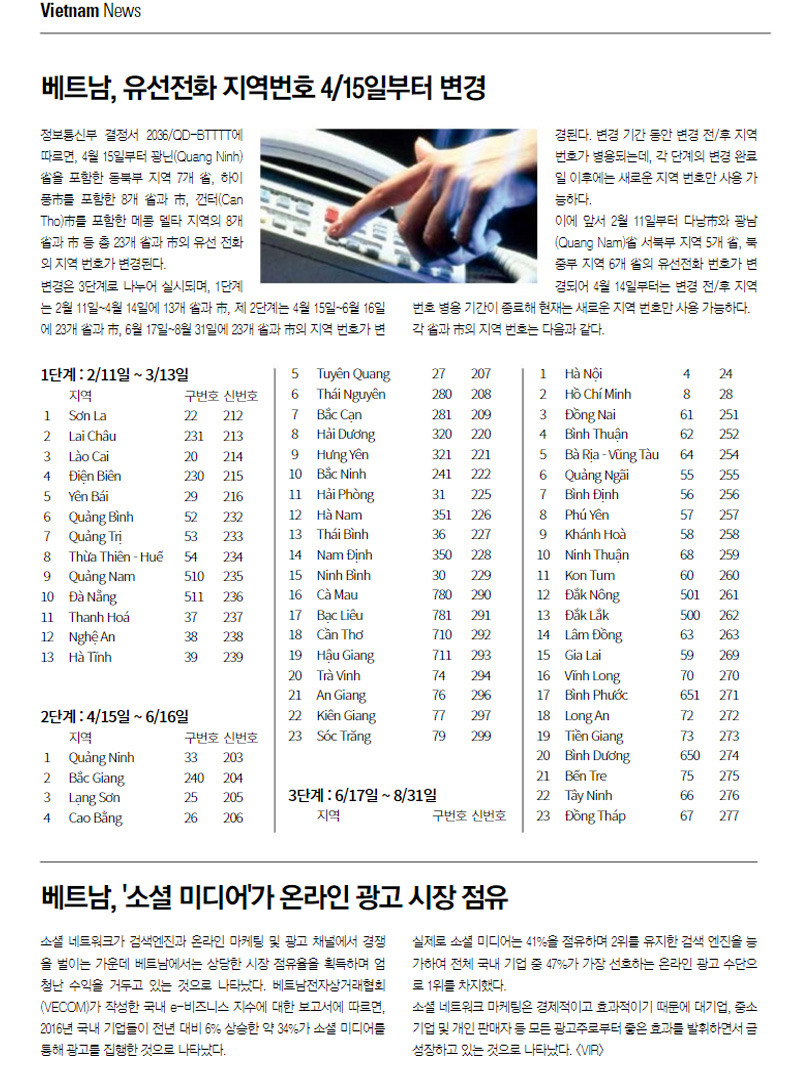 베트남 유선전화 지역번호 변경 작성자안완식|작성시간17.12.29|조회수246 목록 댓글 0 글자크기 작게가 글자크기 크게가 출처 : Good Morning Vietnam 2017.4. 다음검색 현재 게시글 추가 기능 열기 북마크 공유하기 신고 센터로 신고 댓글 댓글 0 댓글쓰기 답글쓰기 댓글 리스트