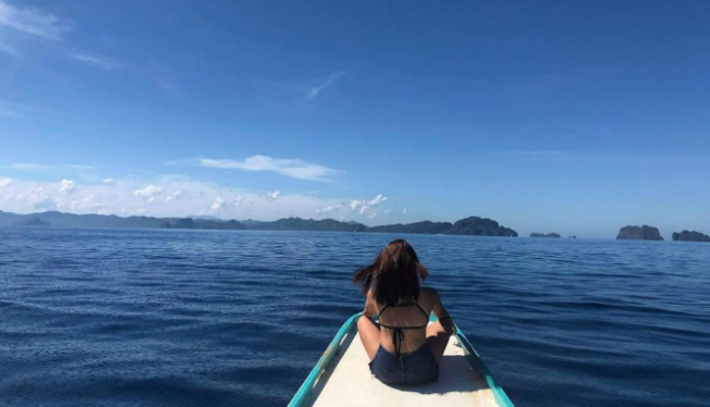 휴가를 즐기러 필리핀에 오는 거냐고 그녀가 물었다.