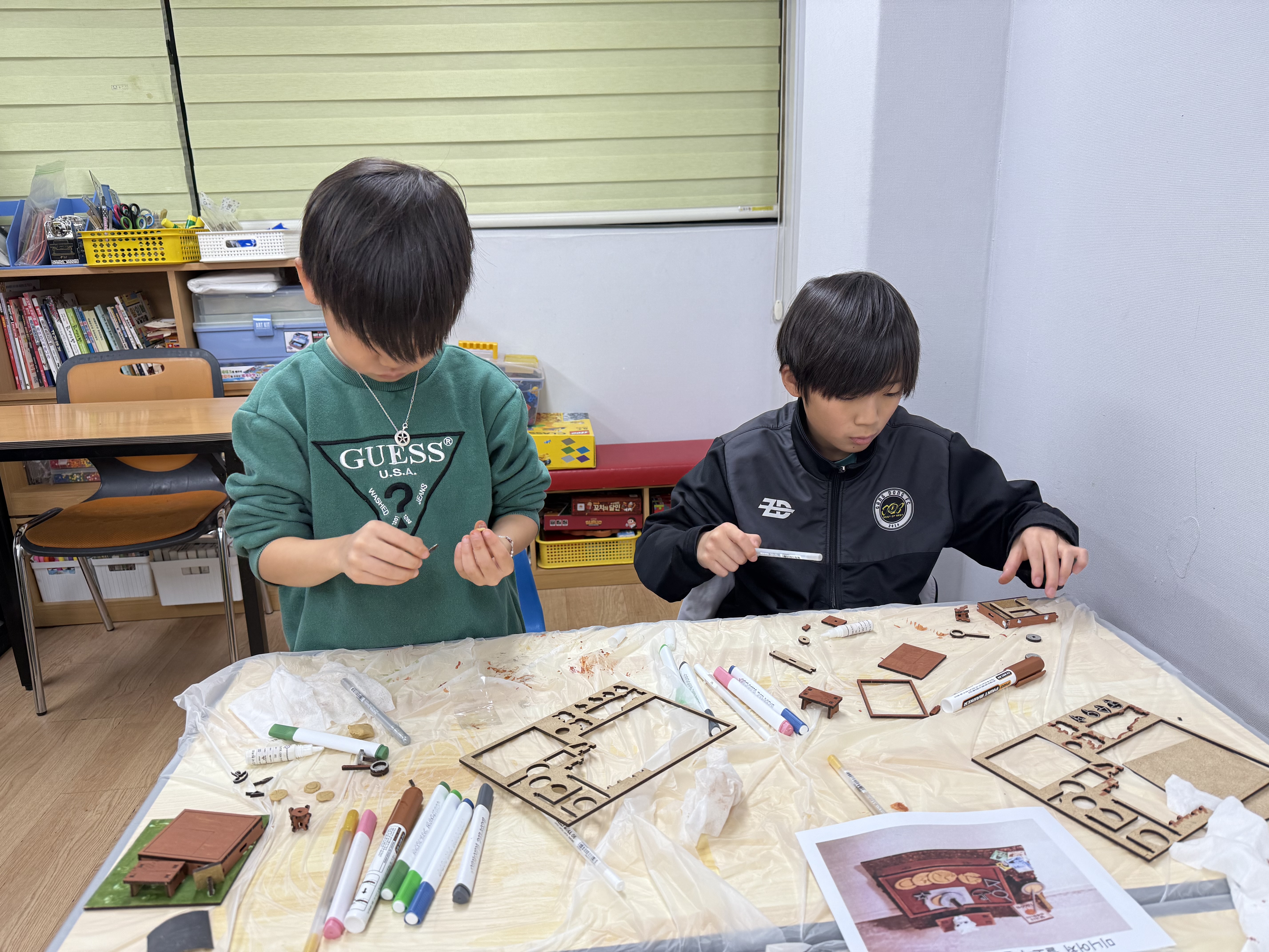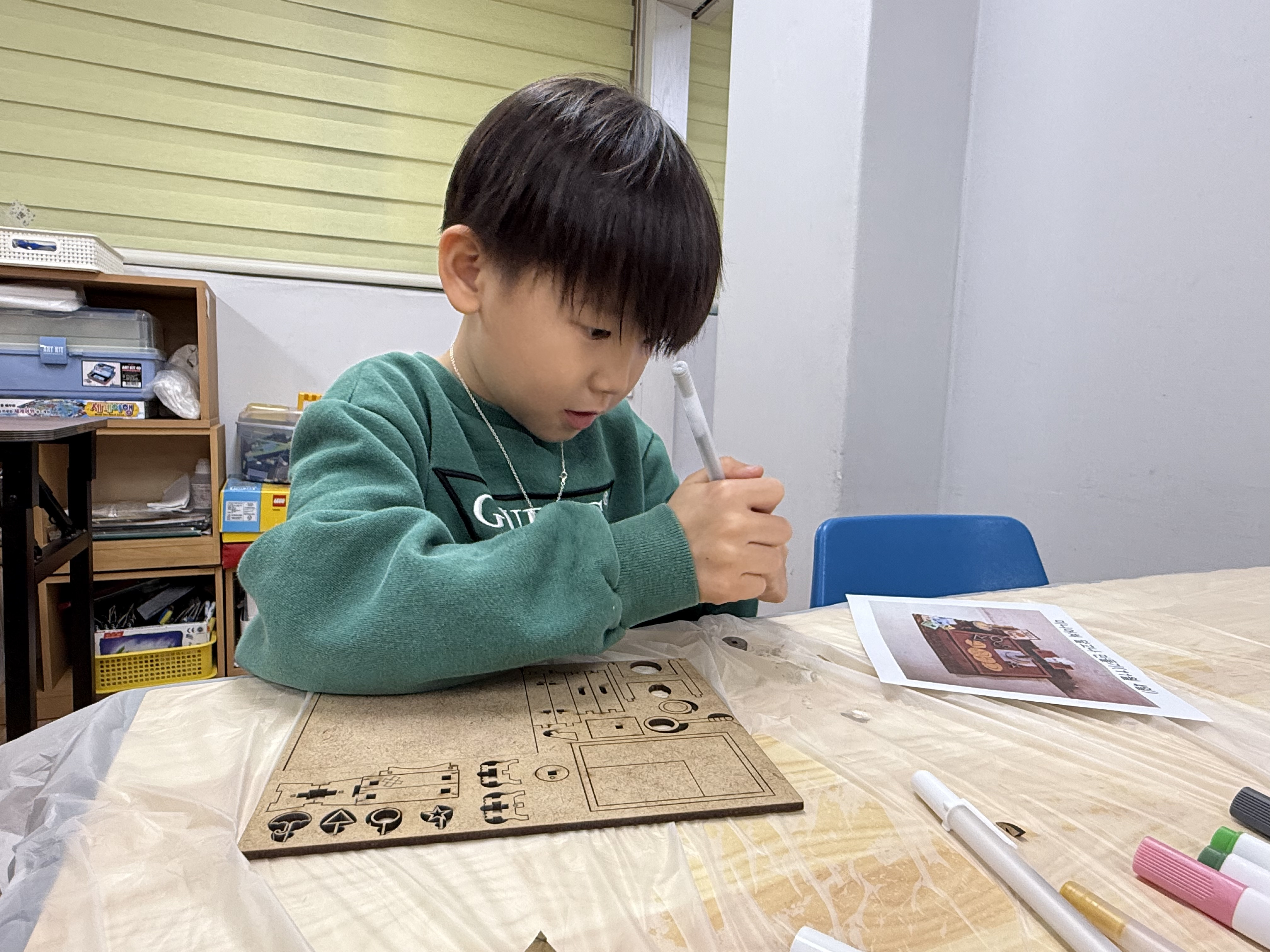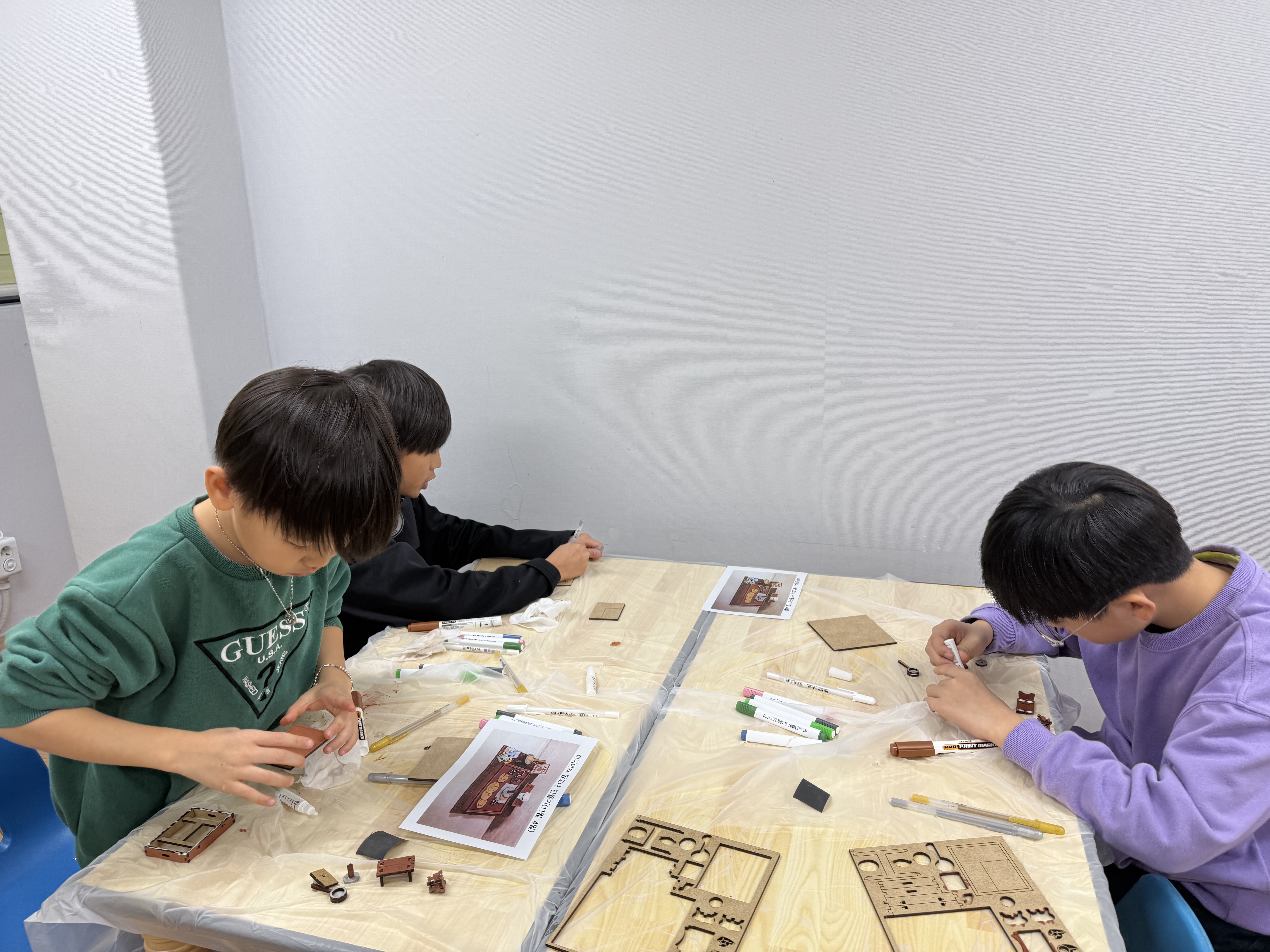 미니어처 부품들을 아크릴 마카로 꼼꼼이 채색하고 조립한 후