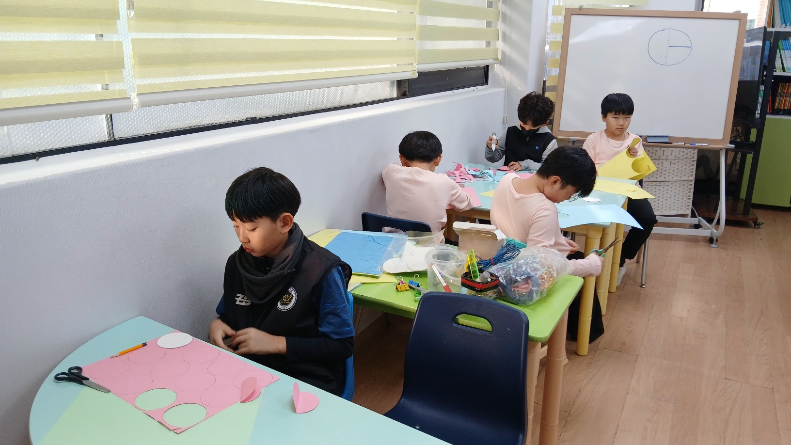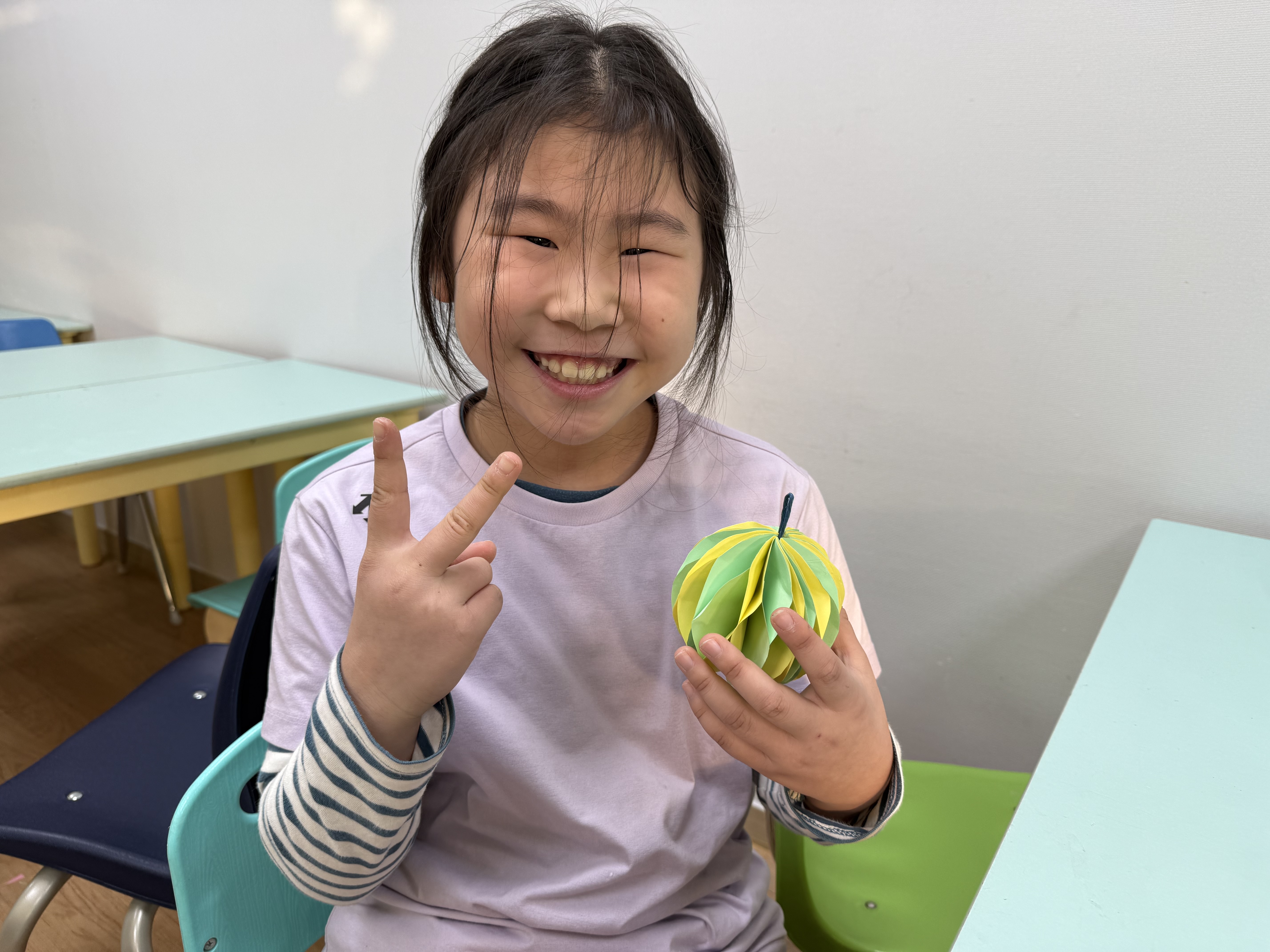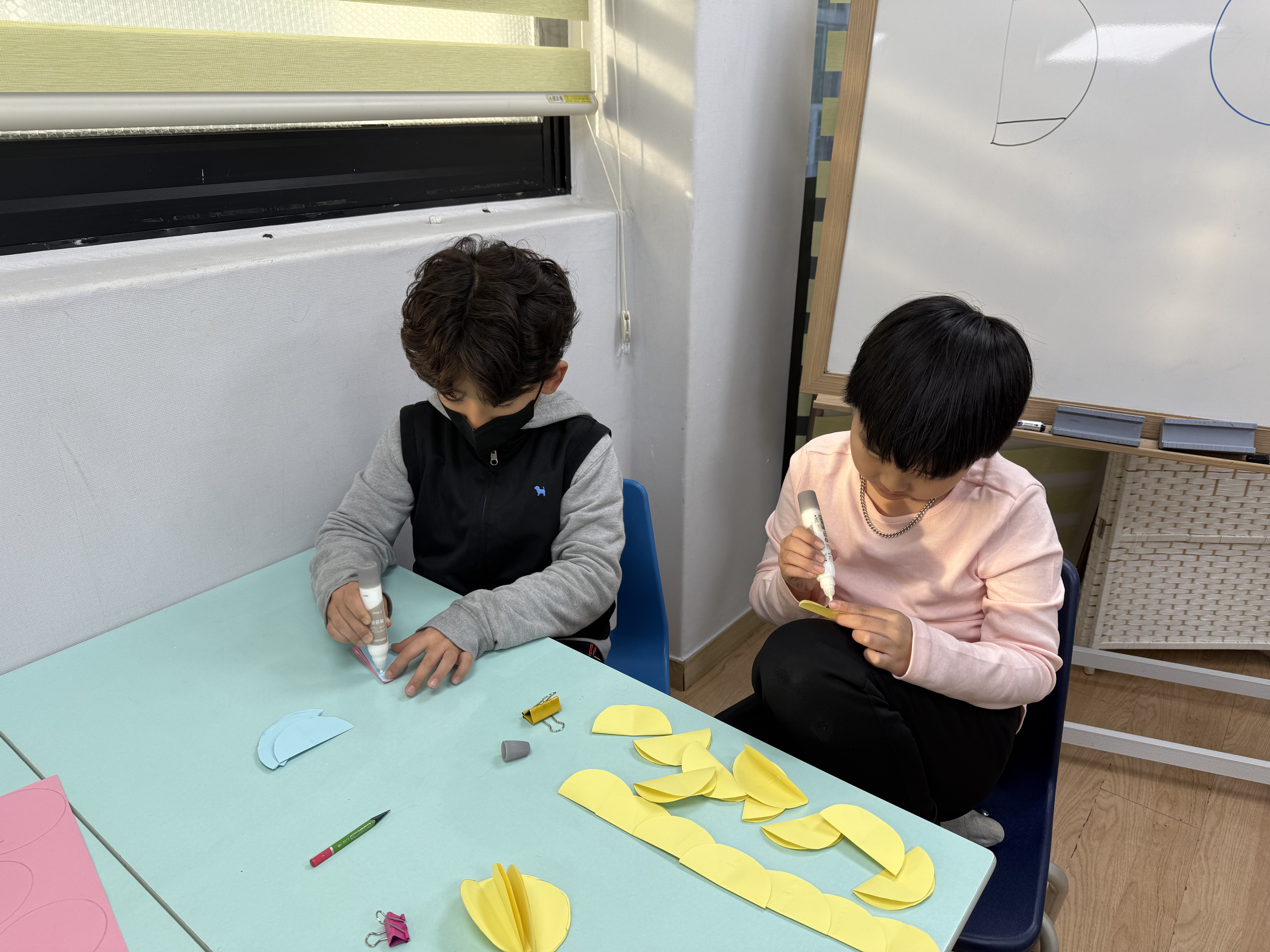 아동들도 단순한 방법의 공예활동이기는 하나 종이 한장 한장 집중하여 오리고 붙이면서 부채처럼 펼치면 나오는 문양에 신기해하였다.