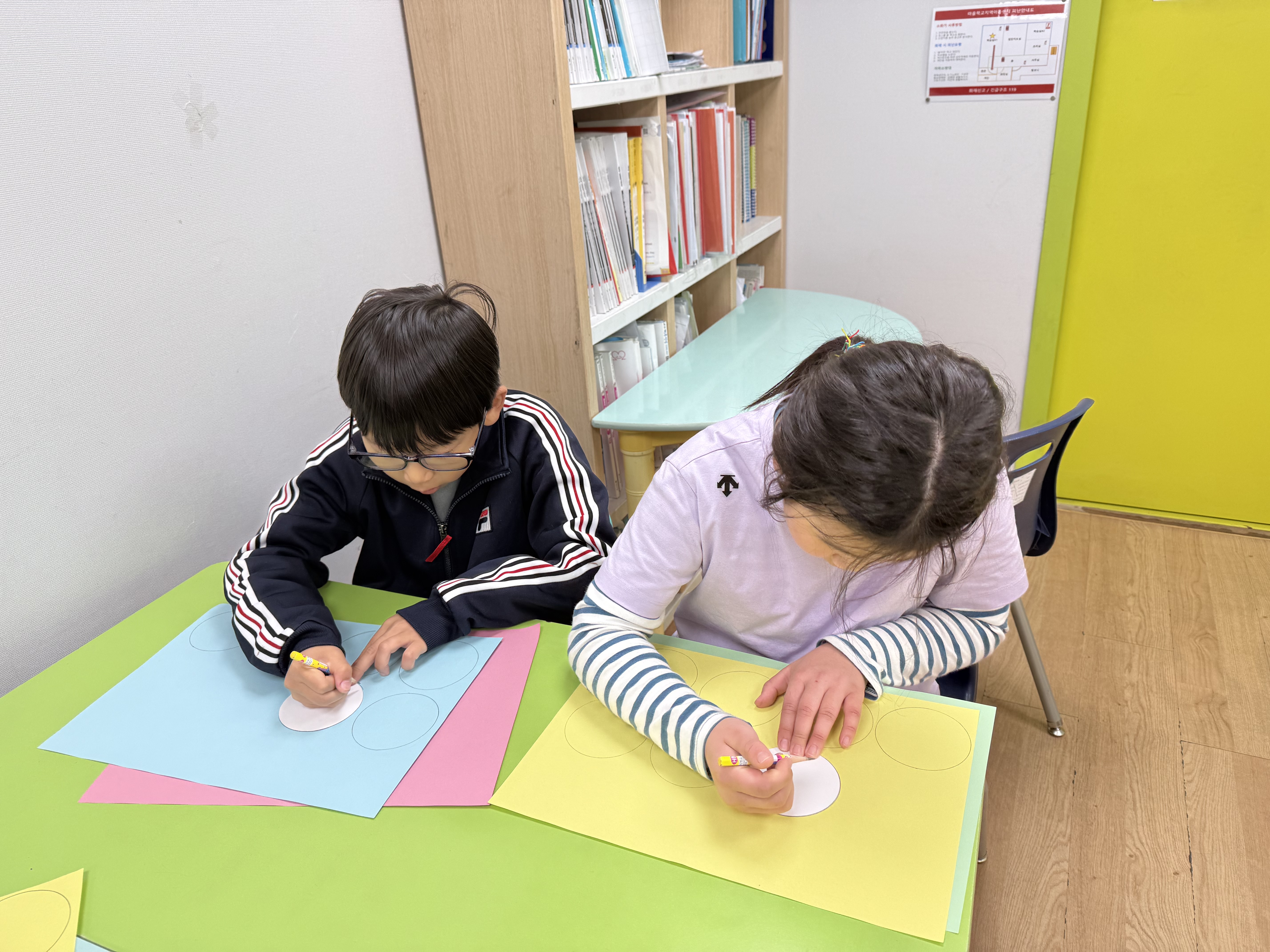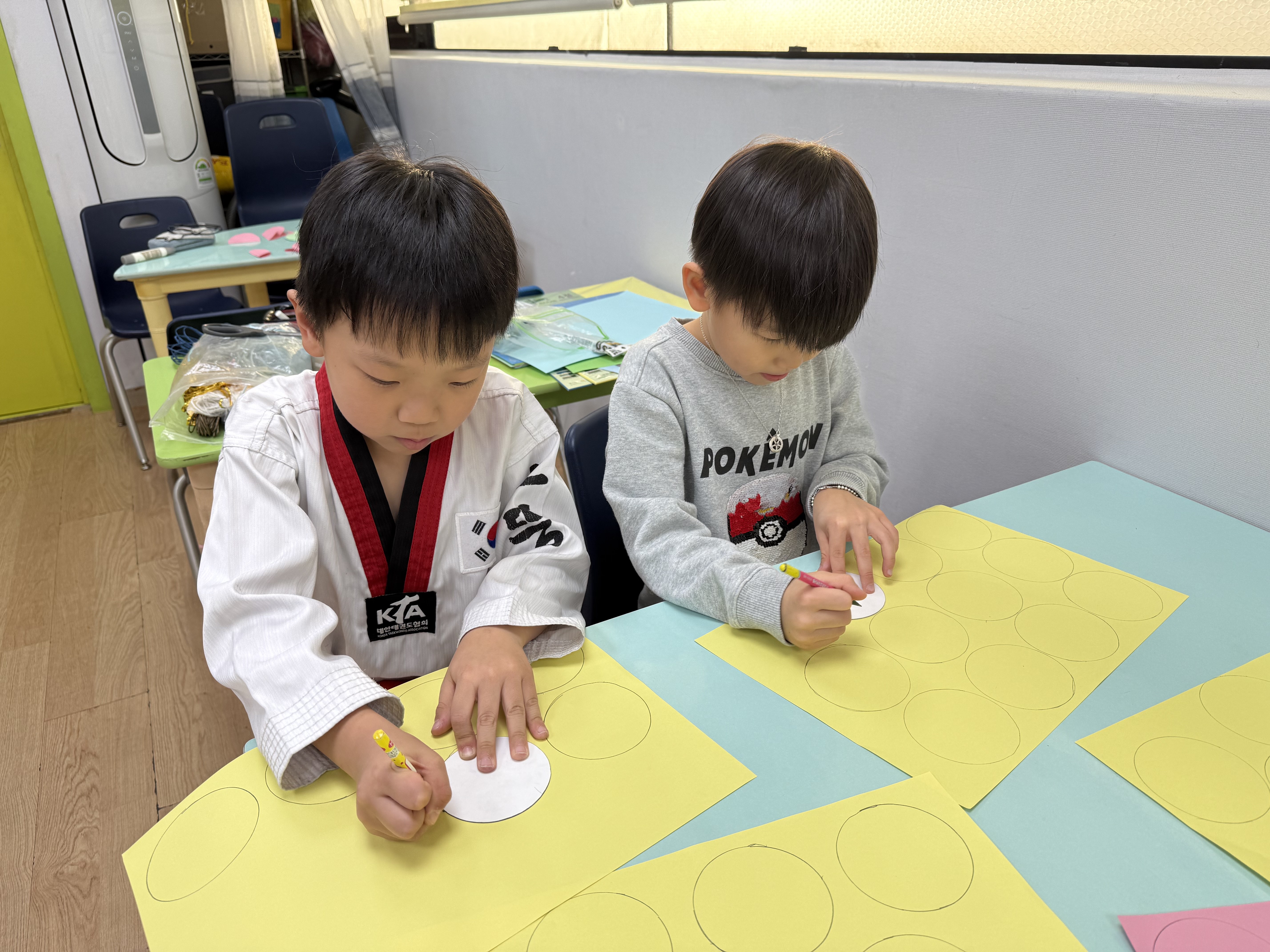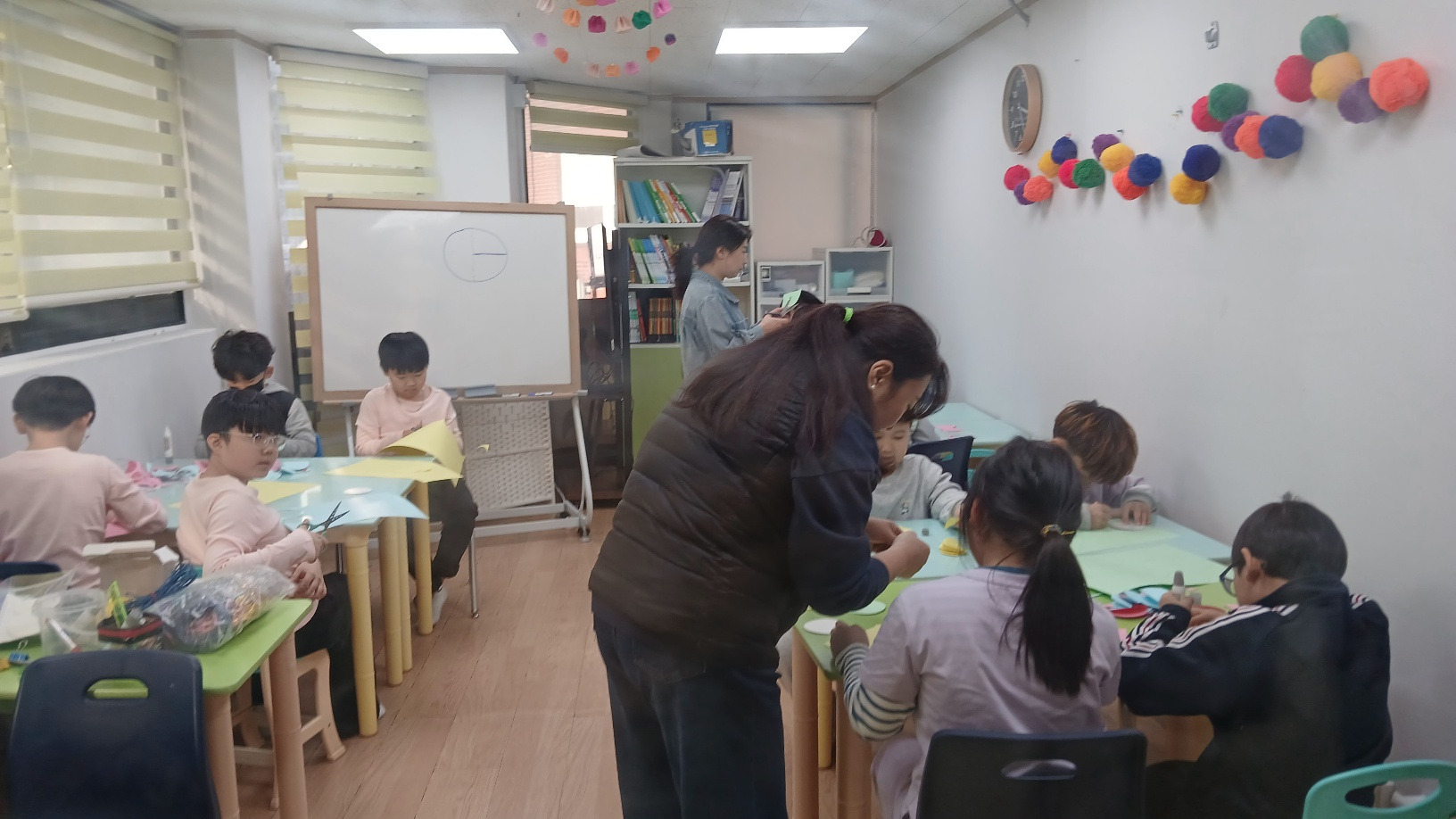 아동들도 단순한 방법의 공예활동이기는 하나 종이 한장 한장 집중하여 오리고 붙이면서 부채처럼 펼치면 나오는 문양에 신기해하였다.