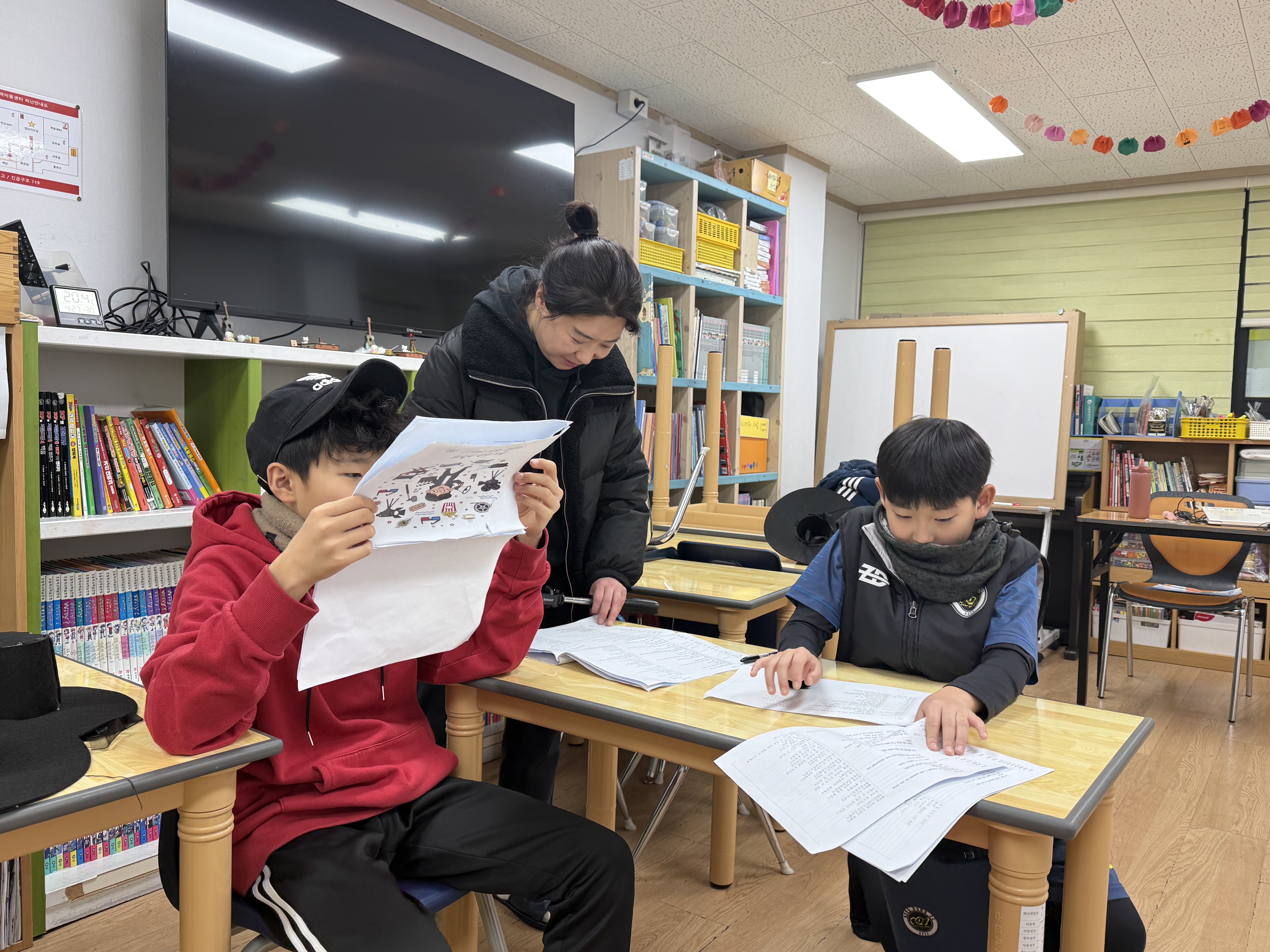 마을학교 영어영상 동아리에서는 아동들이 정한 장면들을 촬영하고 있습니다.