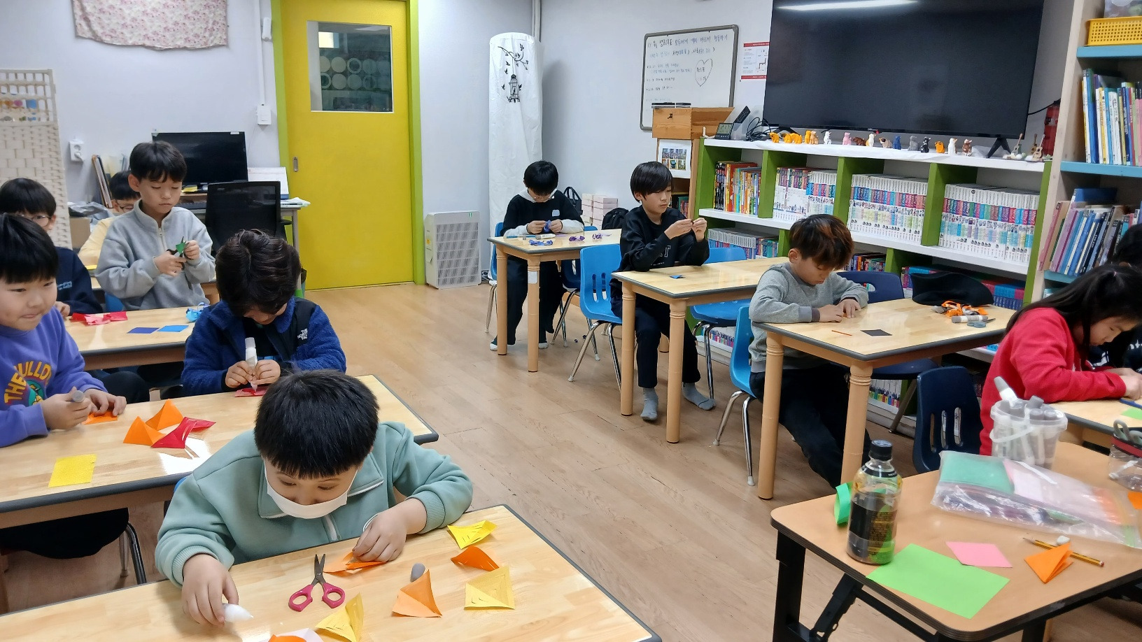 완성된 눈꽃을 펼치며 모양을 비교하고 감상하는 시간을 가졌습니다.