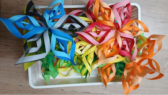 겨울 계절활동으로 색종이를 활용한 눈꽃 결정 만들기를 진행하였습니다.