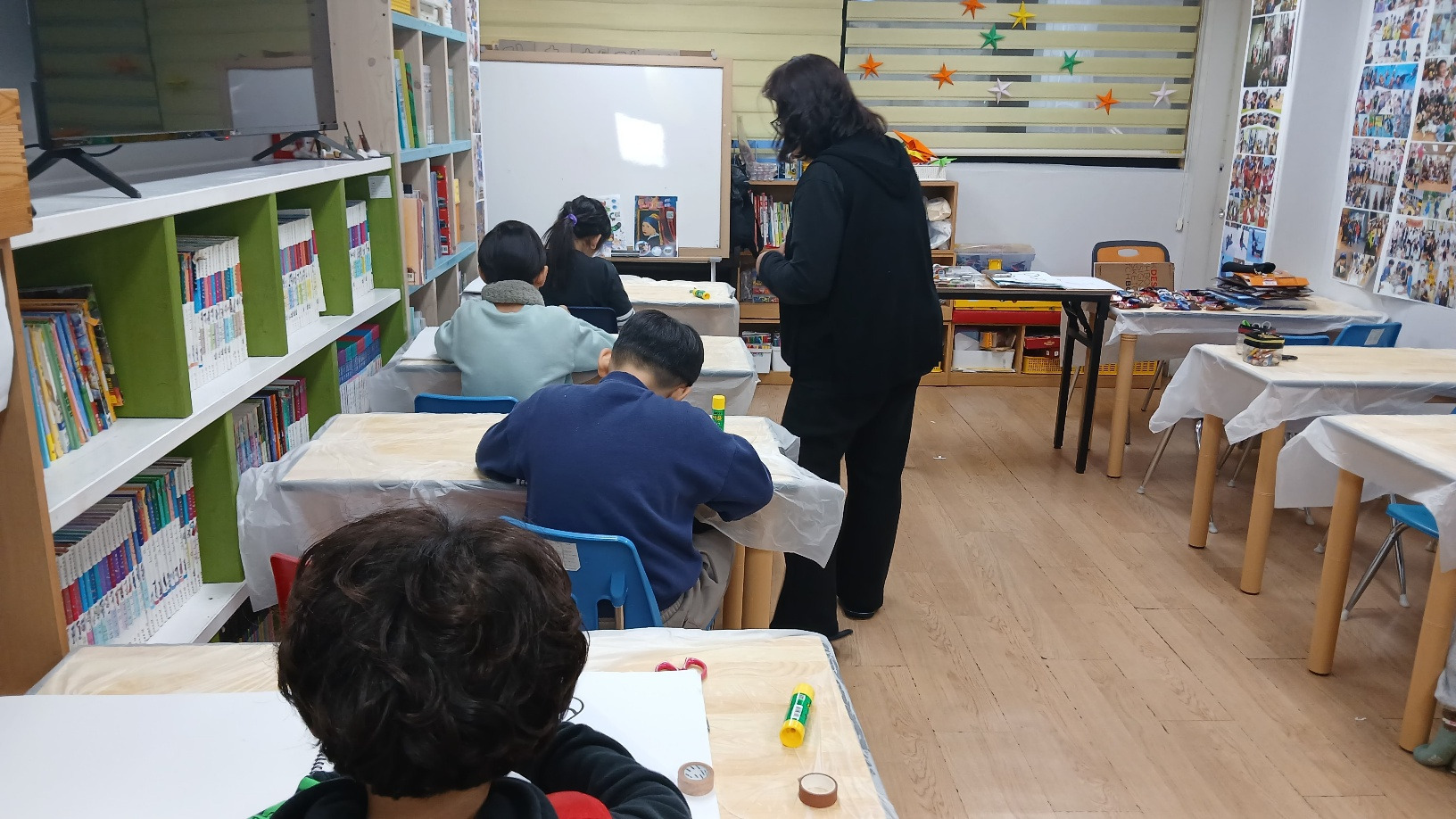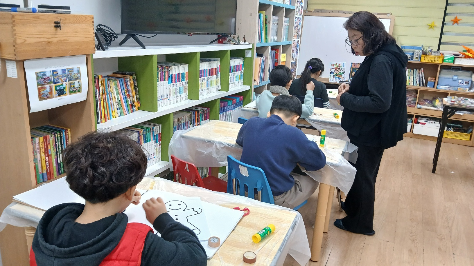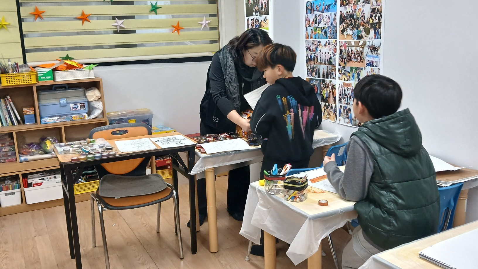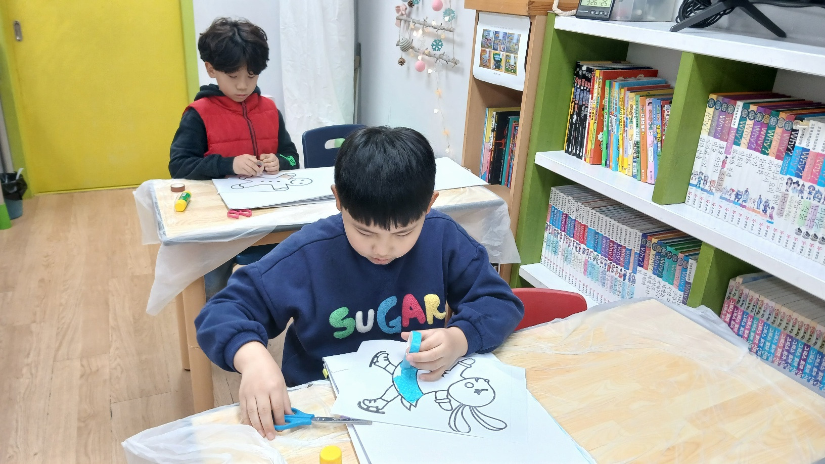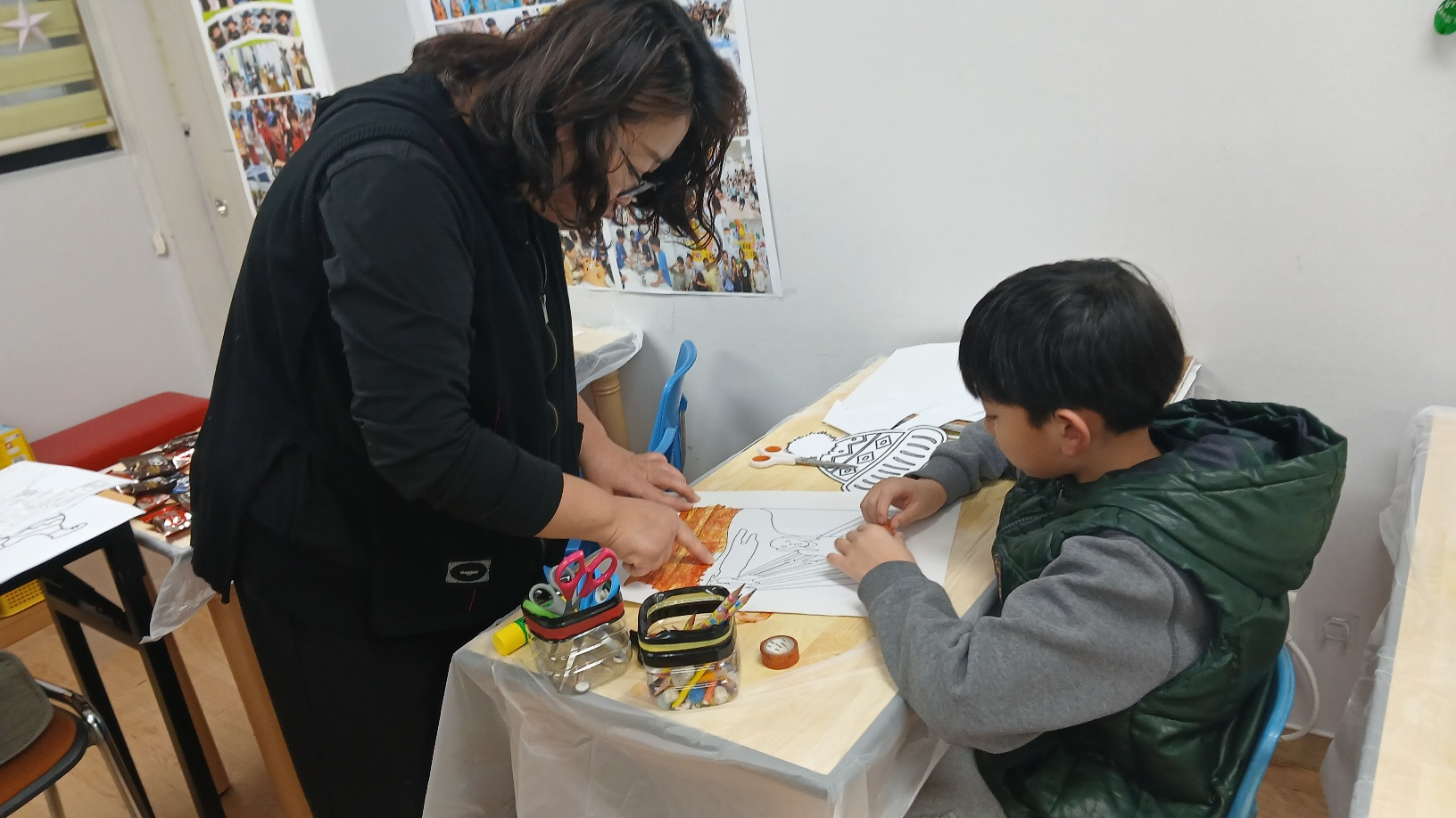 색색의 마스킹 테이프로 나만의 콜라주 작품을 완성하며, 간단한 테이프가 특별한 예술로 변하는 순간을 경험하고, 붙이고 겹치며 만드는 창의적인 아트를 통해 아이디어를 자유롭게 표현하는 즐거운 미술 수업이었습니다. 2025년 마지막 미술수업이라 더 아쉬웠습니다.
