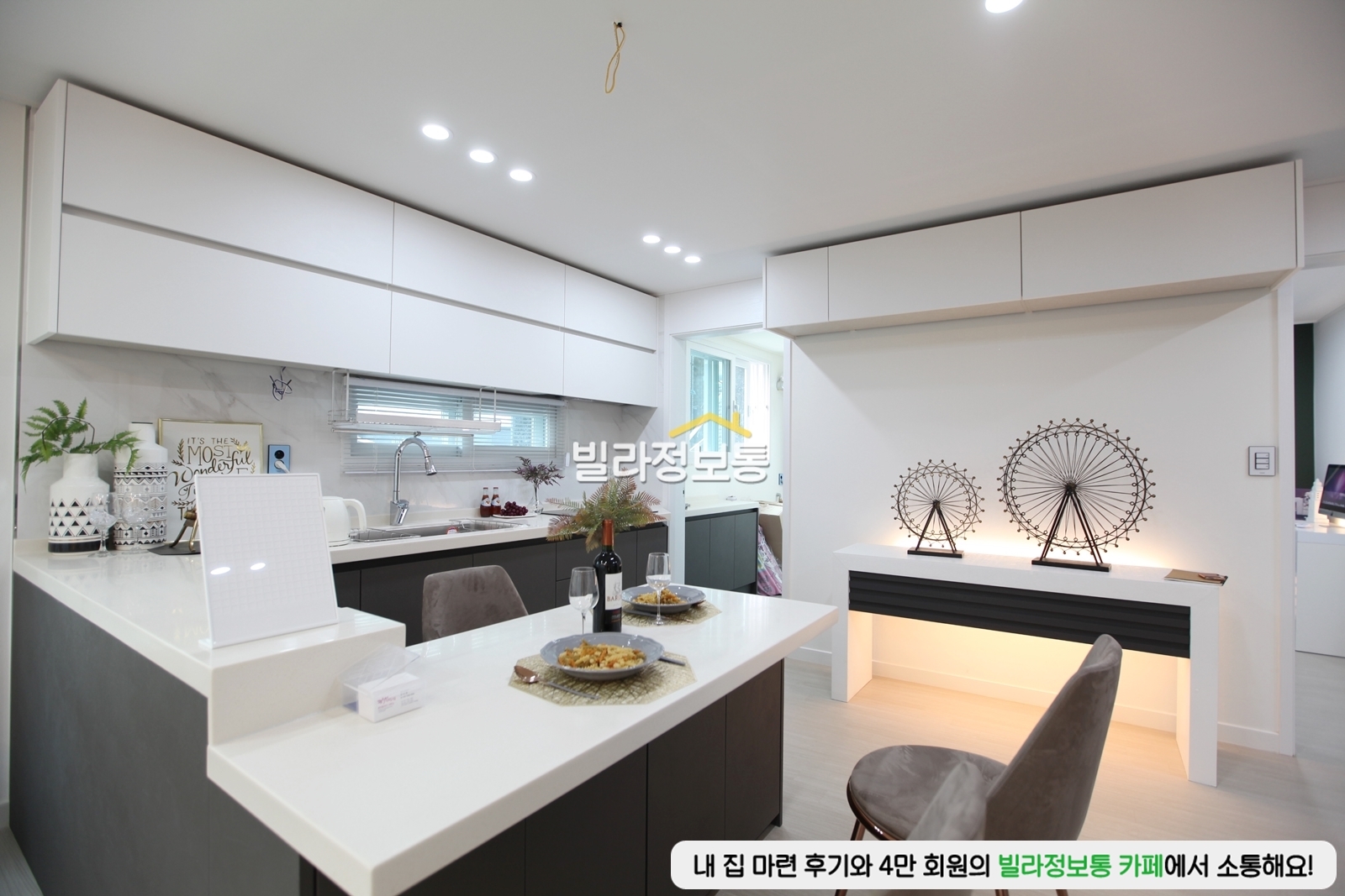 아일랜드 식탁이 시공되어 있어요.