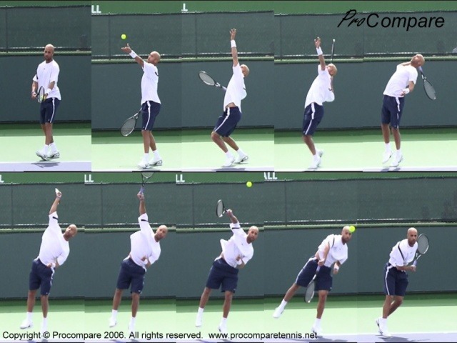 서브는 온몸을 하나의 대나무처럼 이용합니다. 발끝부터 손끝까지 하나의 대나무처럼 근육과 뼈로 연결되어 있습니다. 대나무가 구부려졌다가 반대로 돌아가서 반대로 휘어버리는 그런 탄력을 서브에서 이용합니다. 몸을 대나무처럼 탄력있게 만들어서 서브를 넣습니다. (이런 형태의 온몸의 근육이 미세하게 상호연결되어 있어야 합니다. 이런 형태를 느낄려면 온몸에 힘을 빼고 연습을 해야합니다. 1~수년을요.... 그러지 않고 무리하게 시도하면 어깨관절이 찢어질 것입니다)