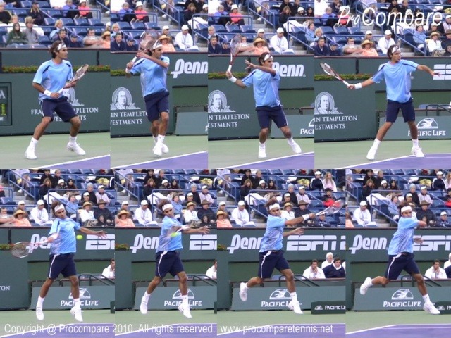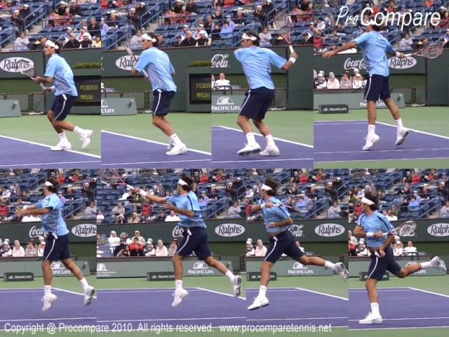 지금까지 모던 포핸드 설명이 페더러 포핸드를 기준으로 이뤄졌습니다. 페더러는 이스턴보다는 이스턴과 세미웨스턴 사이의 그립을 잡고 있는 것으로 분석되고 있습니다.