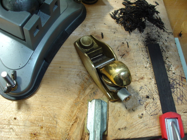 흑단 을 얇게 하기 위하여 작은 바이올린 대패를 이용하여 대패질을 하였습니다. 스크레이퍼보다 훨씬 능률적이었습니다.