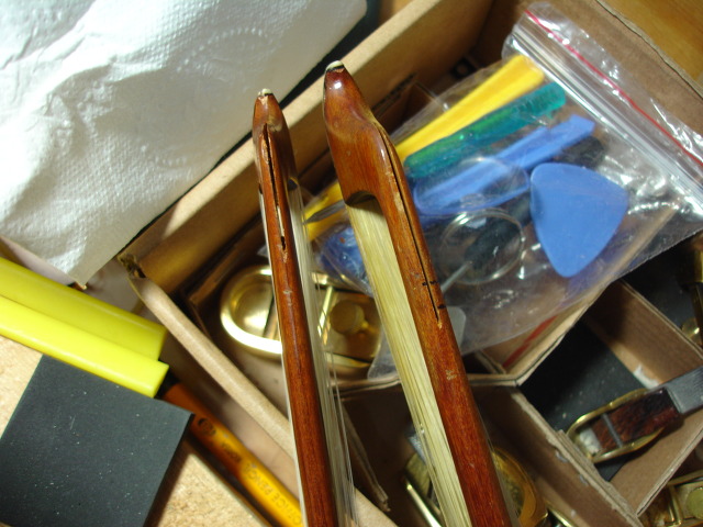 너무 한가롭게 지내는것 같아 그동안 활대끝부분이 부러진 첼로 활과 바이올린 활을 수리하는 중입니다.