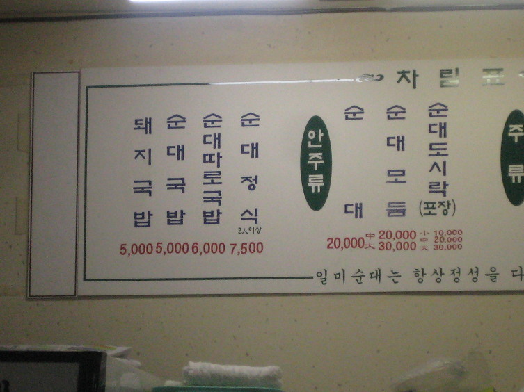 메뉴.. 순대정식은 순대를 따로 돔베에 담아 준다는데 1인이라 달리 선택의 여지가 없군요...