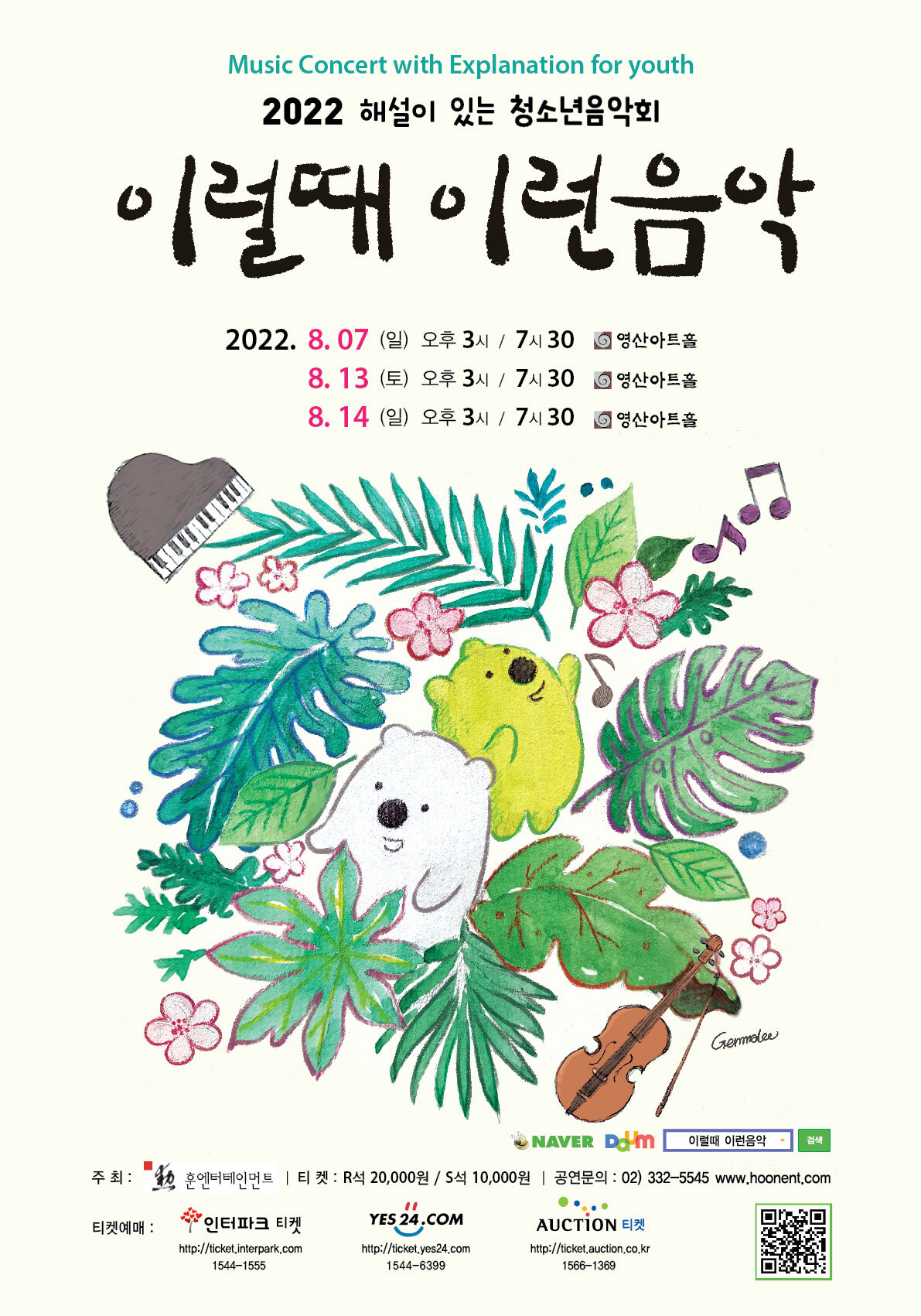 2003년부터 19주년을 맞게 되는 ‘해설이 있는 청소년을 위한 음악회’의 원조 공연으로 매년 전석 매진을 기록한 여름방학 ‘여름이야기’ 시리즈로 연주되는 이번 공연에서는 2대의 피아노, 현악앙상블, 피아노 트리오, 오케스트라, 플루트, 트럼펫, 성악, 가곡과 함께하는 왈츠, 환상곡, 애니메이션 주제곡으로 연주되는 광고나 영화에서 들어왔던 오페라 아리아, 뮤지컬 넘버, 발레 모음곡, 오케스트라, 국악 등 지금까지 클래식 공연에서 느낄 수 없었던 ‘특별한 해설’이 있는 음악회로 청소년 여러분을 그 현장에 초대합니다.