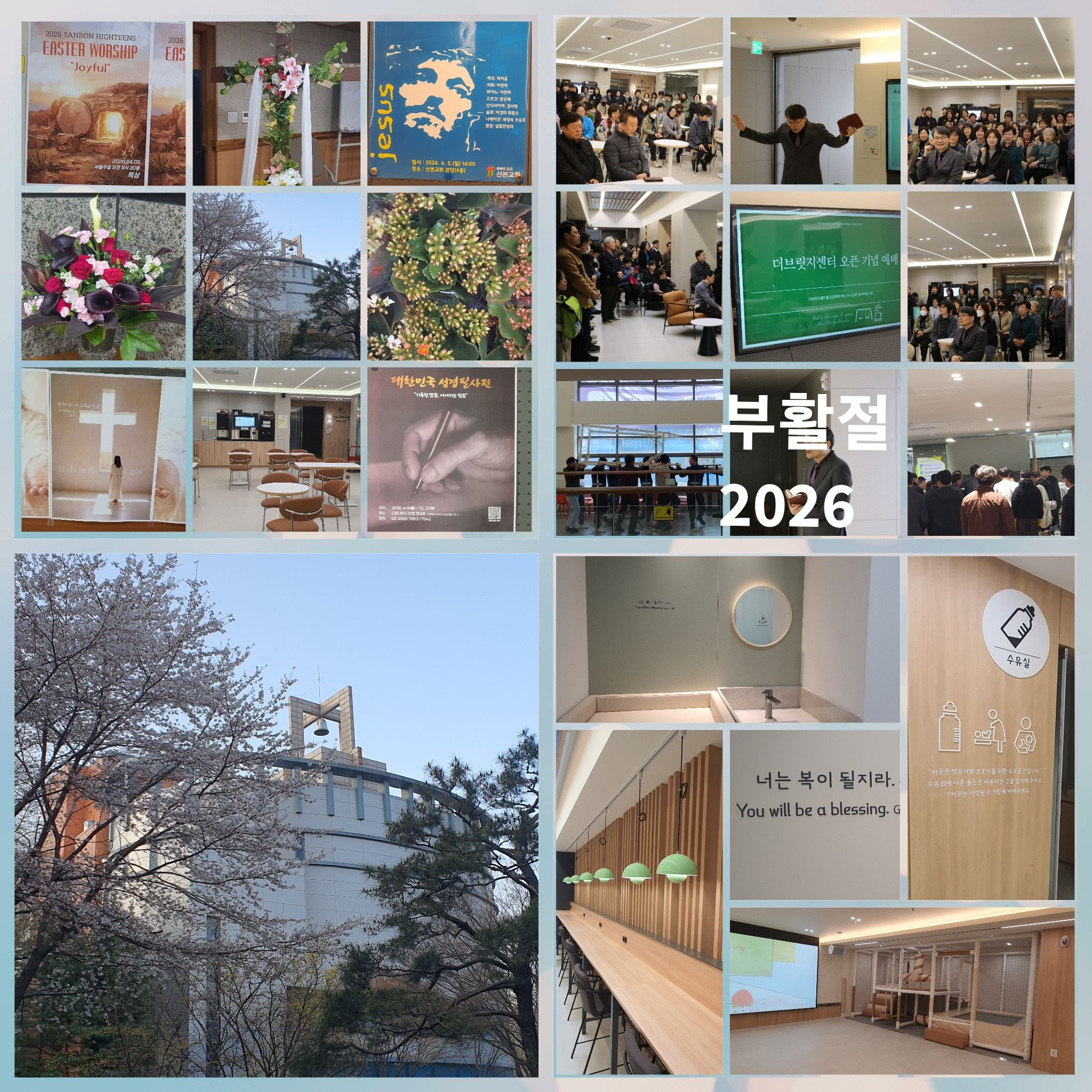 "산본가족 여러분, 부활은 이론이나 지식이나 관념이 아닙니다. 부활은 실제입니다. 어제 문을 연 '더 브릿지 센터'는 죽은 공간이었지만 아름다운 공간으로 살아났습니다. 죽어가는 지역사회를 살리고, 단절된 세대를 잇는 이 공간이야말로 '무덤'에 갇힌 세상 속에 '부활의 생명'을 흘려보내는 실제적인 통로입니다. 커피 한 잔을 나누는 그 자리가 바로 마리아가 주님을 만난 동산이 될 것입니다." 무엇보다 여러분이 예수님의 부활의 증거고 증인이 되시길 바랍니다. 여러분을 통해 여러분이 사랑하는 사람들이 부활하신 주님을 만나는 은혜가 있기를 바랍니다.