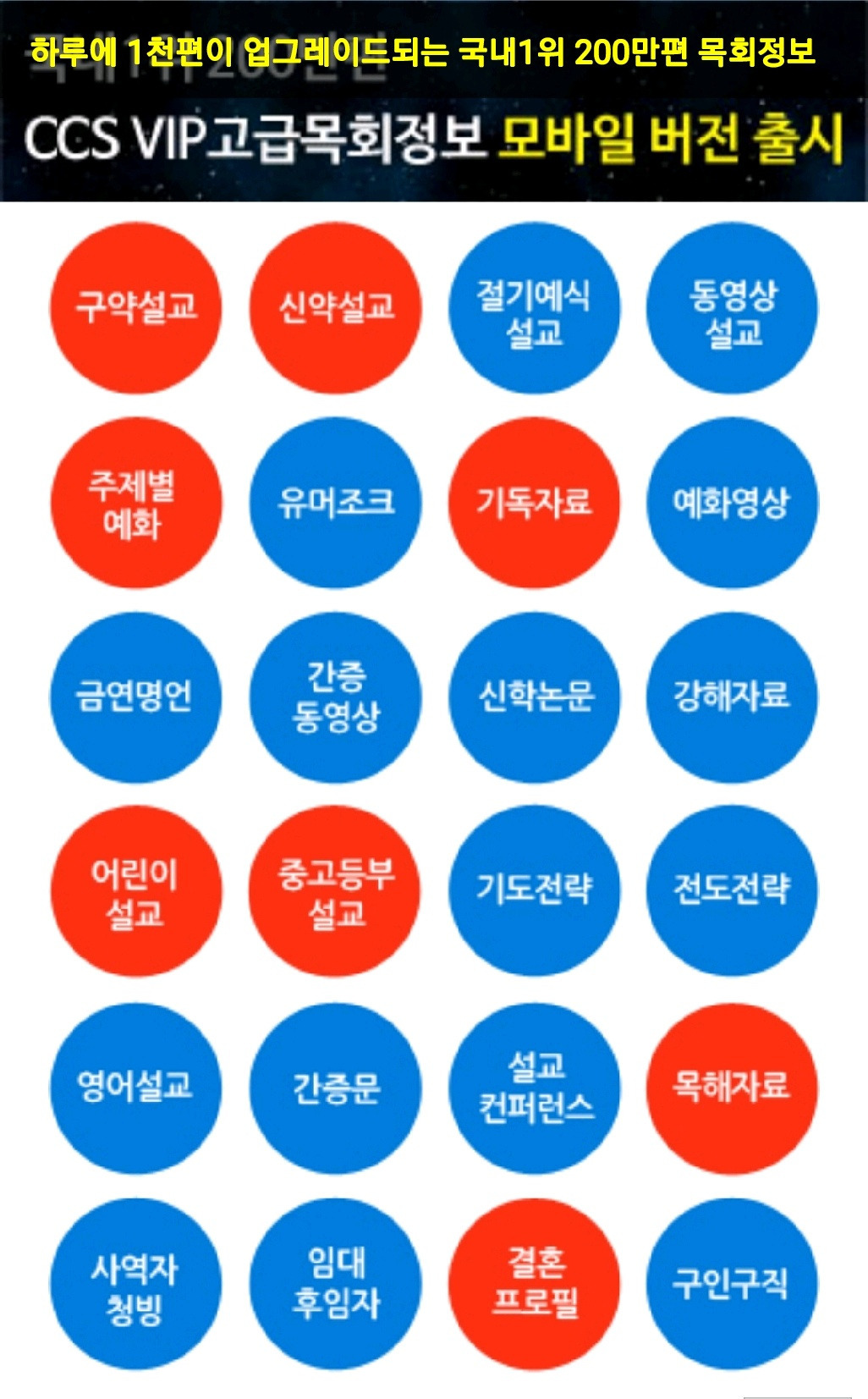 (고급목회정보) 8천기가 방대한 200만편 VIP고급기독목회정보, 성경장별/절별 설교문/예화자료] 방대한 예화영상/설교문자료/예화/유머/설교동영상/강해자료/PPT/MP3파일/기도/전도/상담/찬양 CCM찬양PPT7천개/신학논문/간증문/주일학교/중고등부/청년대학부 설교자료등)자료등 20억대 목회자료, 31년 역사 국내 1위 고급목회정보를 인터넷으로 이용하는 회원권 폭발적인기 www.ccs33.com