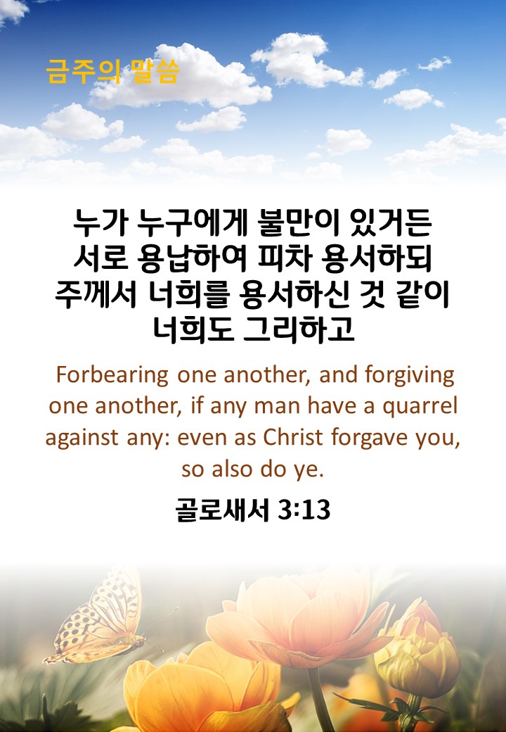 골로새서 3장 13절 작성자마경훈목사|작성시간23.06.28|조회수159 목록 댓글 0 글자크기 작게가 글자크기 크게가 다음검색 현재 게시글 추가 기능 열기 북마크 공유하기 신고 센터로 신고 댓글 댓글 0 댓글쓰기 답글쓰기 댓글 리스트