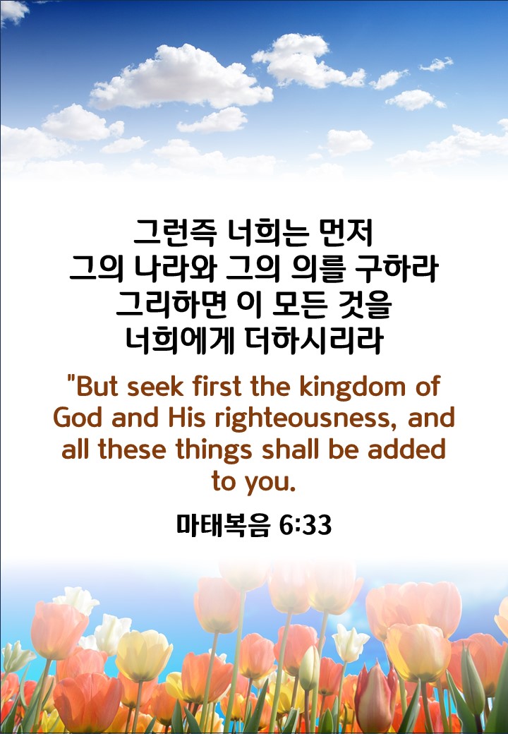 마태복음 6장 33절 작성자마경훈목사|작성시간23.06.28|조회수90 목록 댓글 0 글자크기 작게가 글자크기 크게가 다음검색 현재 게시글 추가 기능 열기 북마크 공유하기 신고 센터로 신고 댓글 댓글 0 댓글쓰기 답글쓰기 댓글 리스트