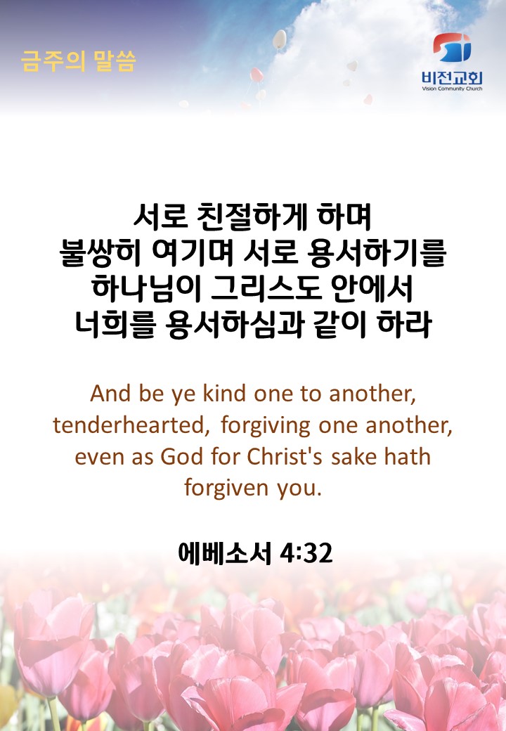 에베소서 4장 32절 작성자마경훈목사|작성시간23.06.28|조회수33 목록 댓글 0 글자크기 작게가 글자크기 크게가 다음검색 현재 게시글 추가 기능 열기 북마크 공유하기 신고 센터로 신고 댓글 댓글 0 댓글쓰기 답글쓰기 댓글 리스트