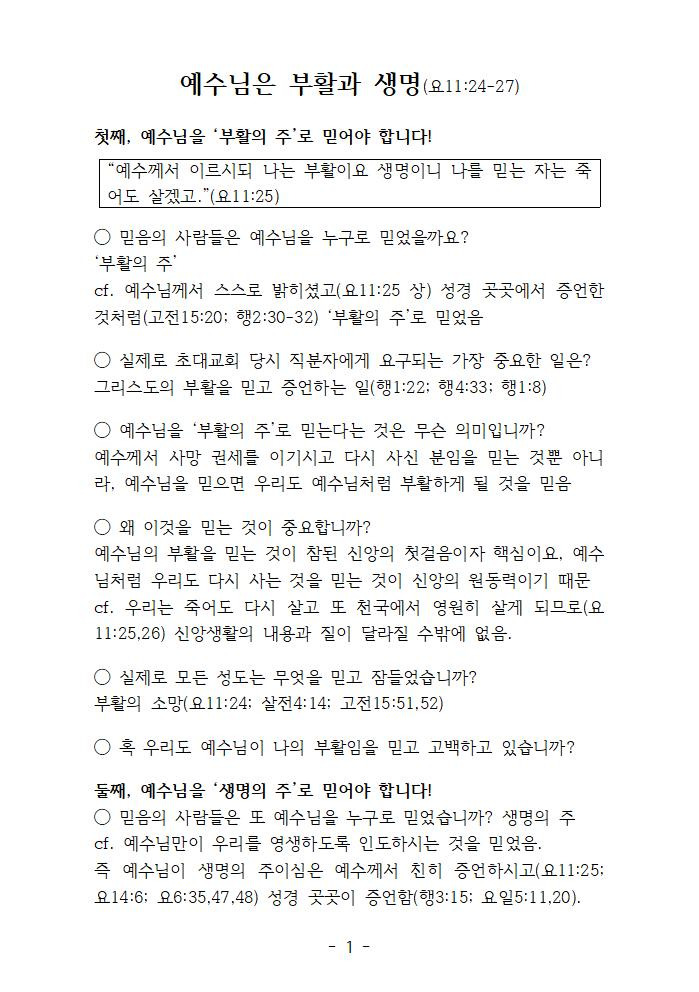[반별나눔444] 예수님은 부활과 생명 (요11:24-27) 작성자비전가이드|작성시간26.03.26|조회수13 목록 댓글 0 글자크기 작게가 글자크기 크게가 260329.hwp80.00KB 첨부파일첨부된 파일이 4개 있습니다. png 파일 부활 소망.png 다운로드 jpg 파일 260329001.jpg 다운로드 jpg 파일 260329002.jpg 다운로드 hwp 파일 260329.hwp 다운로드 다음검색 현재 게시글 추가 기능 열기 북마크 공유하기 신고 센터로 신고 댓글 댓글 0 댓글쓰기 답글쓰기 댓글 리스트