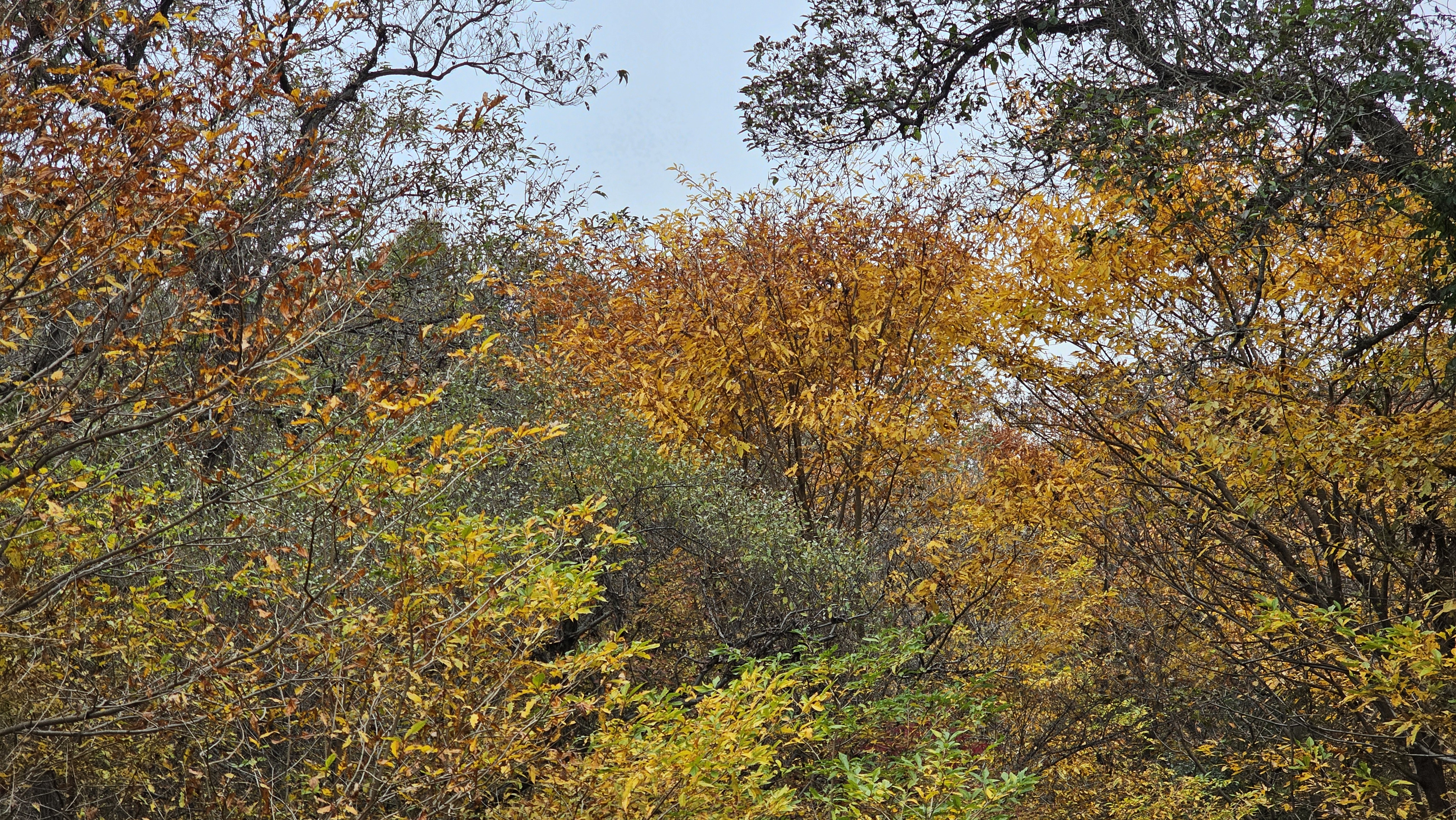 줍기를 마치고 고즈넉한 일만보 숲길을 천천히 걷는다. 사각사각 밟히는 나뭇잎 소리가 더 가깝게 들린다. 차분한 하늘 덕에 마음도 차분해지고, 나무와 풀, 잎, 돌, 물, 새도 더 가깝게 다가와 내게 말을 거는 것 같다.