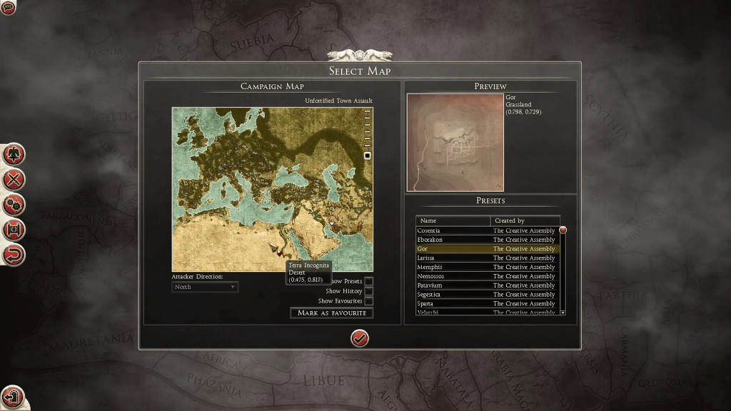 - 제일 눈에 띄는 건 커스텀 전투를 위해 캠페인 지도 어디든 클릭하여 위치를 선택할 수 있다는 것... 물론 프리셋 지역도 존재합니다.