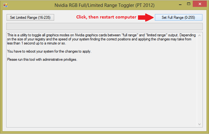 압축풀고 실행해서 Set Full Range(0_255) 누르고 재부팅 하면 간단하게 설정 완료