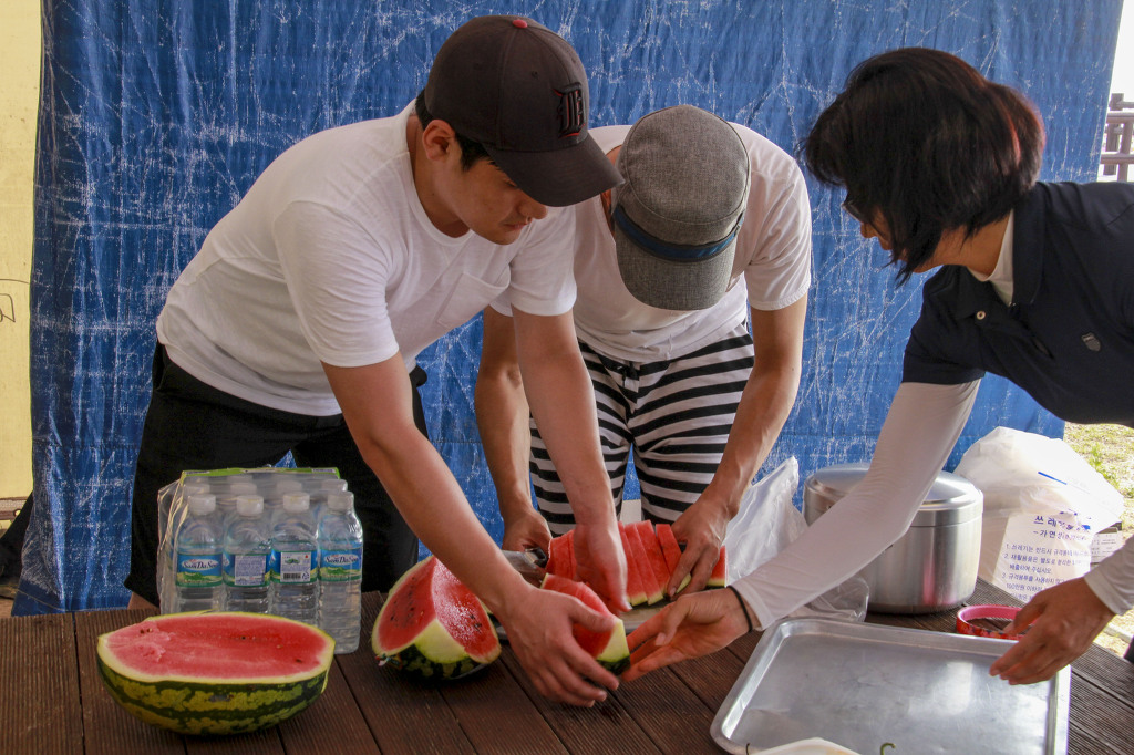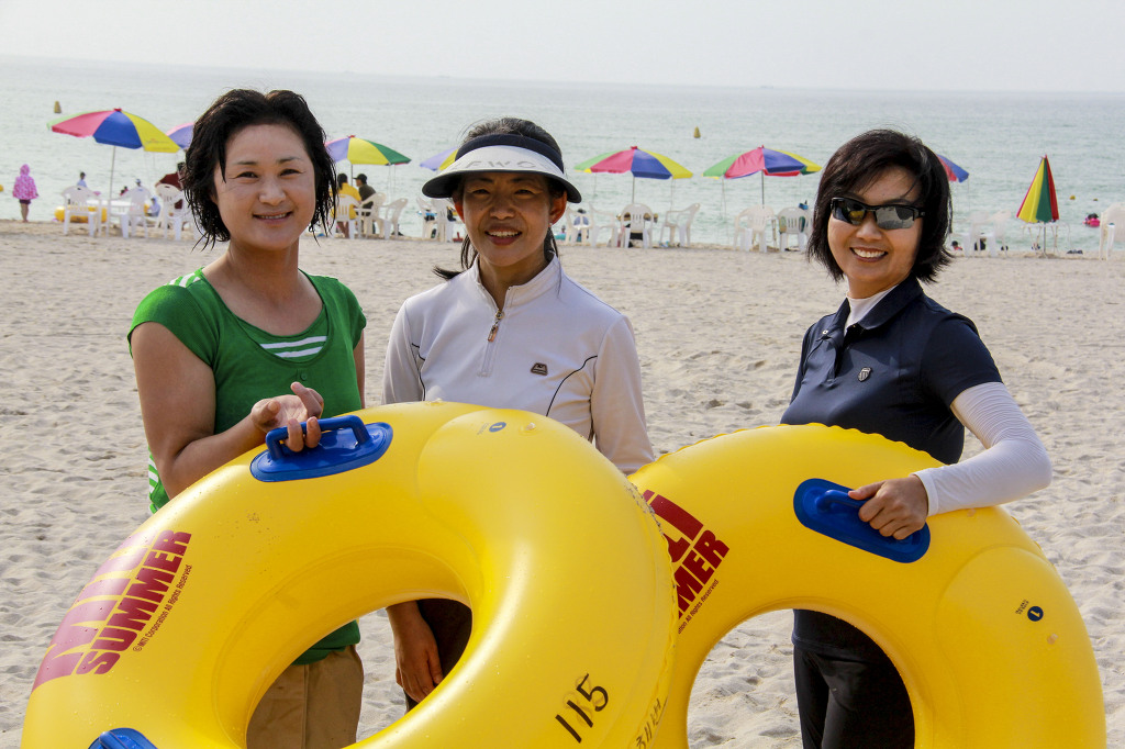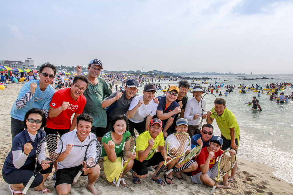 수영을 하는 사람, 물질을 하는 사람, 모래사장에서 뜨거운 모래로 찜질을 하는 사람, 또 한쪽에서는 윷놀이가 한창이다. 게임 스코어에 신경을 써야 하는 코트장을 벗어나 가족들과 바다에서 놀다 온 회원들의 모습들이 싱그럽다. 가족을 먼저 챙기는 수신제가의 현장.