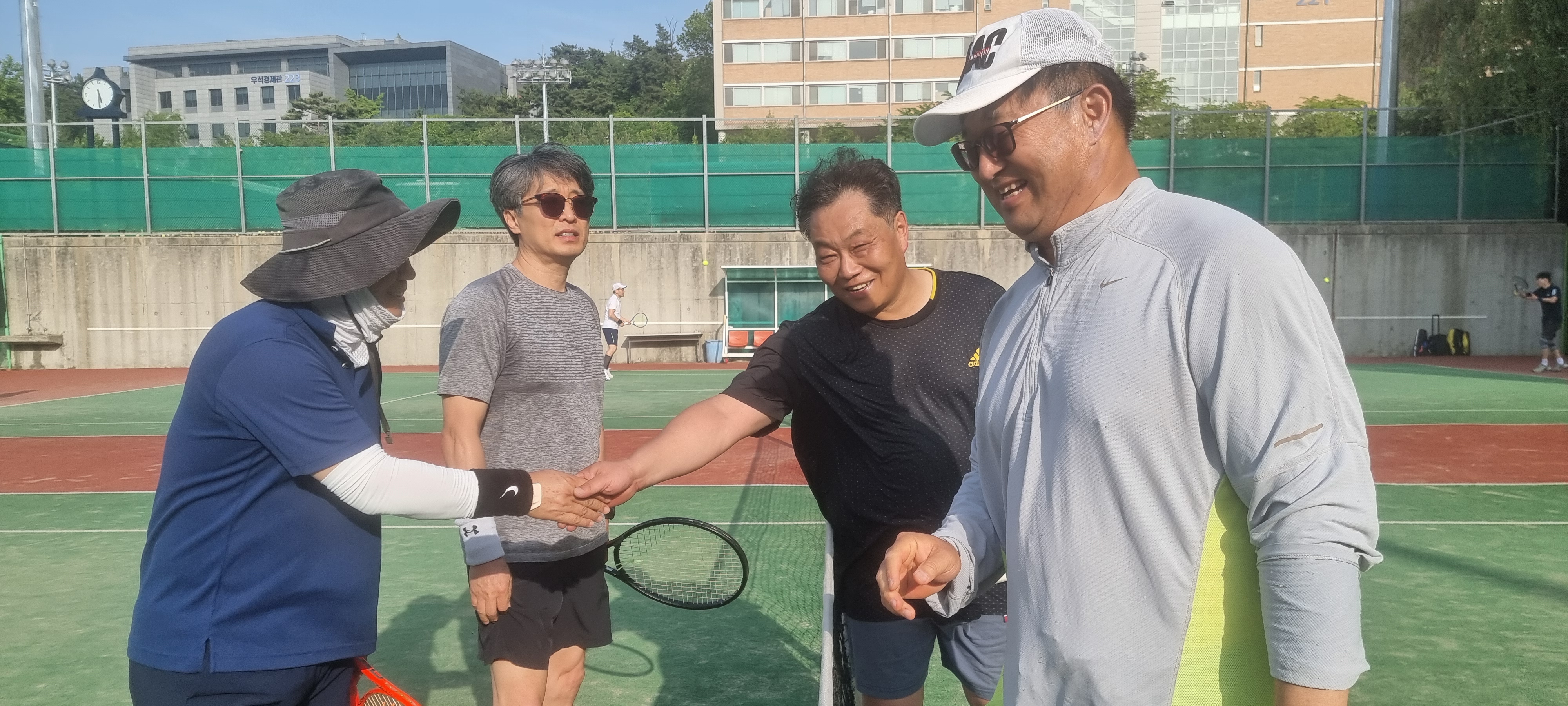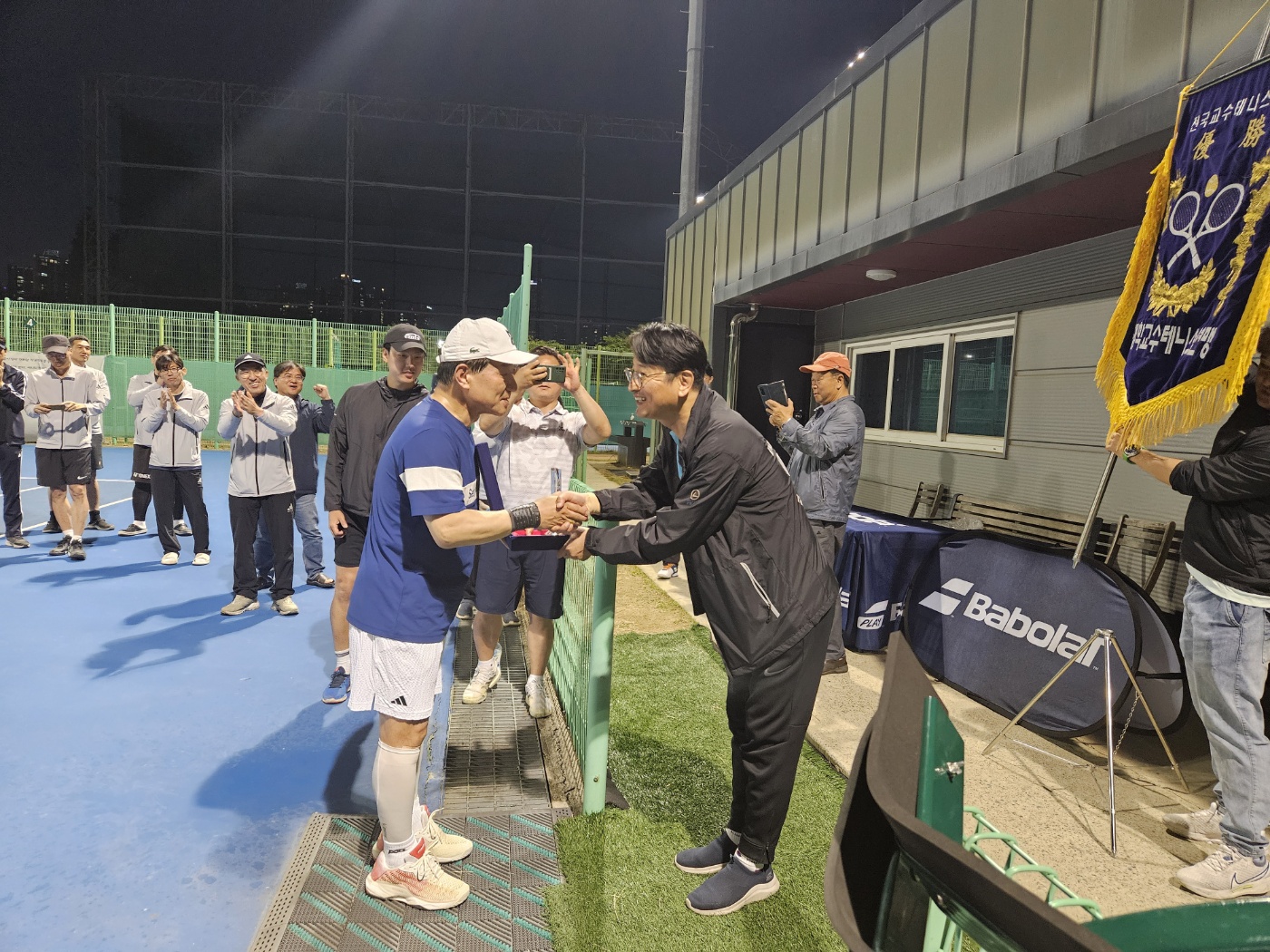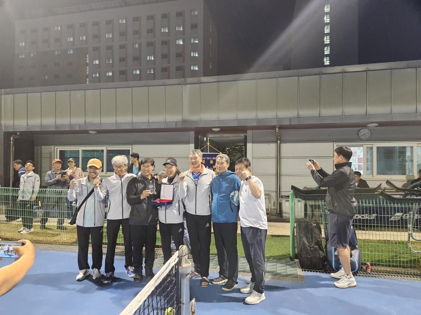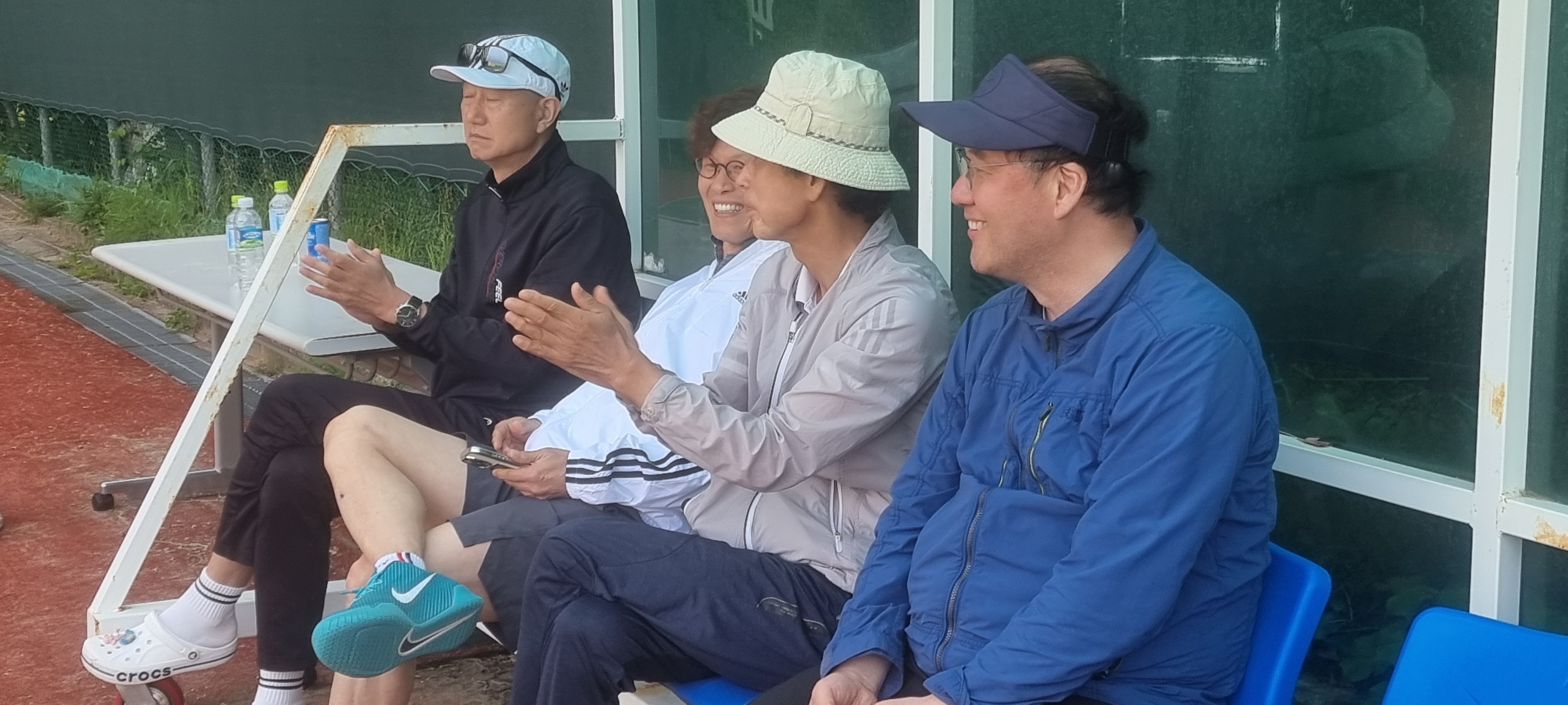 첫날 개인전 경기는 일찍 마무리 되었다. 장년부 시상은 인천대 유창완 교수테니스회 회장께서 방문하여 끝까지 자리를 함께 하게 되었다.