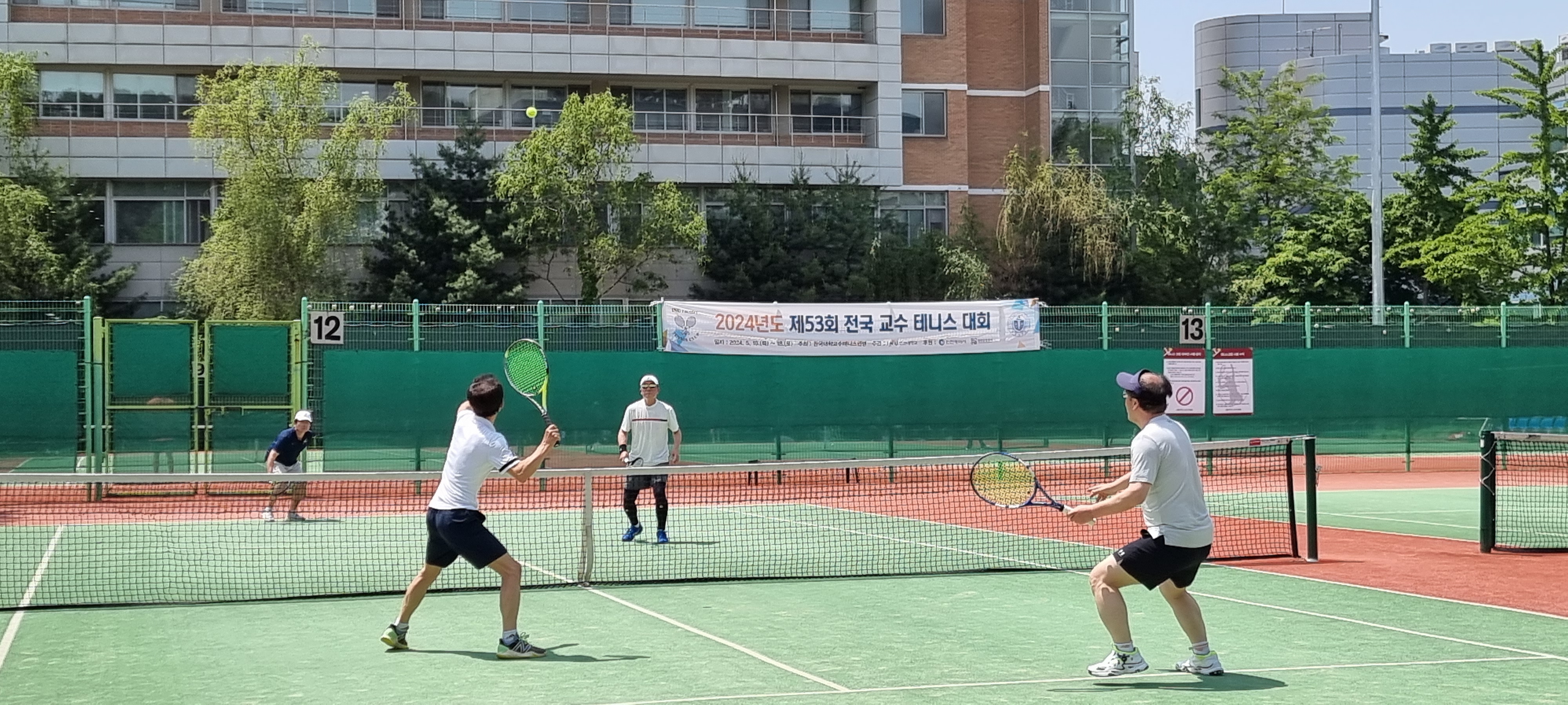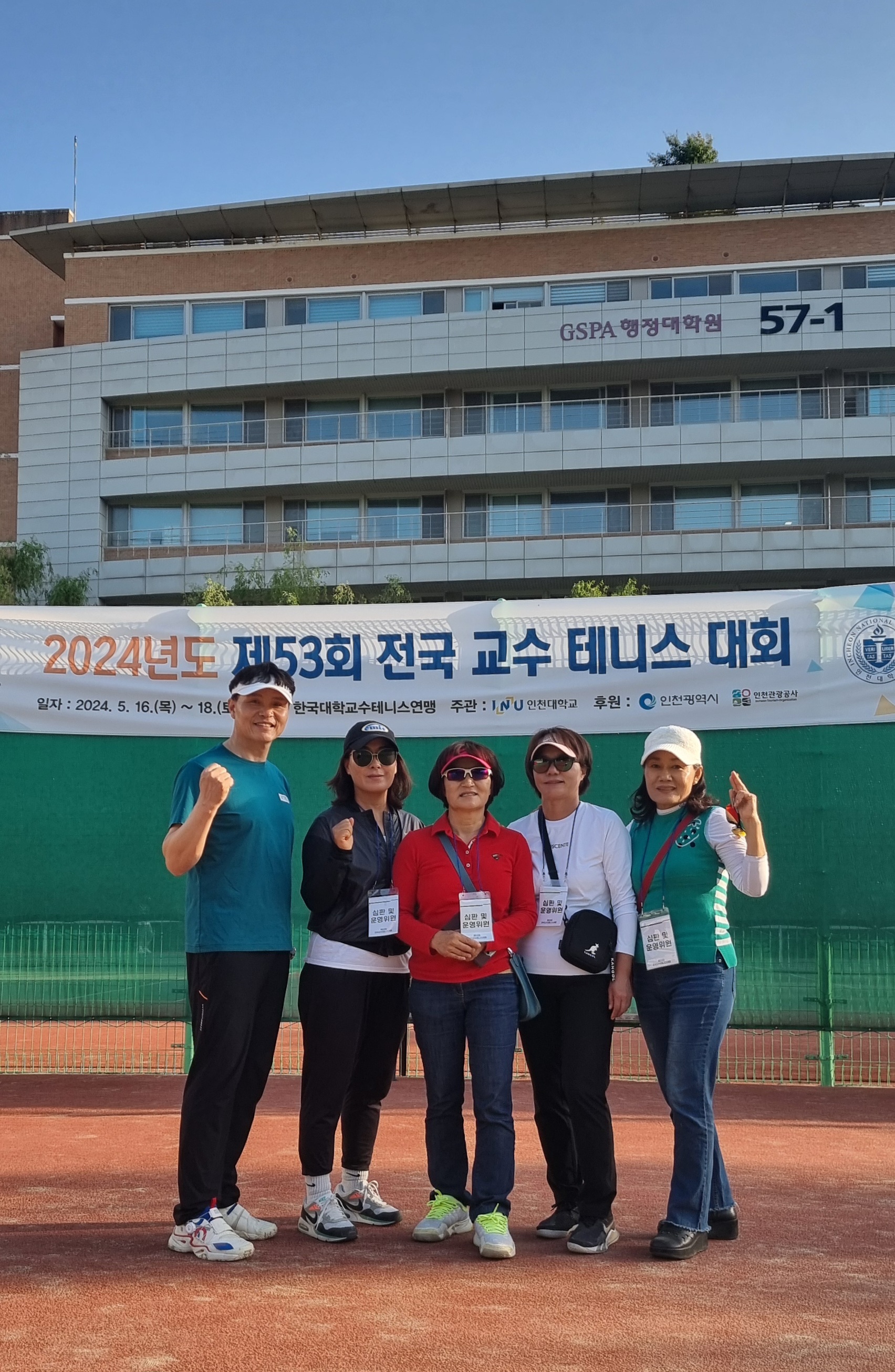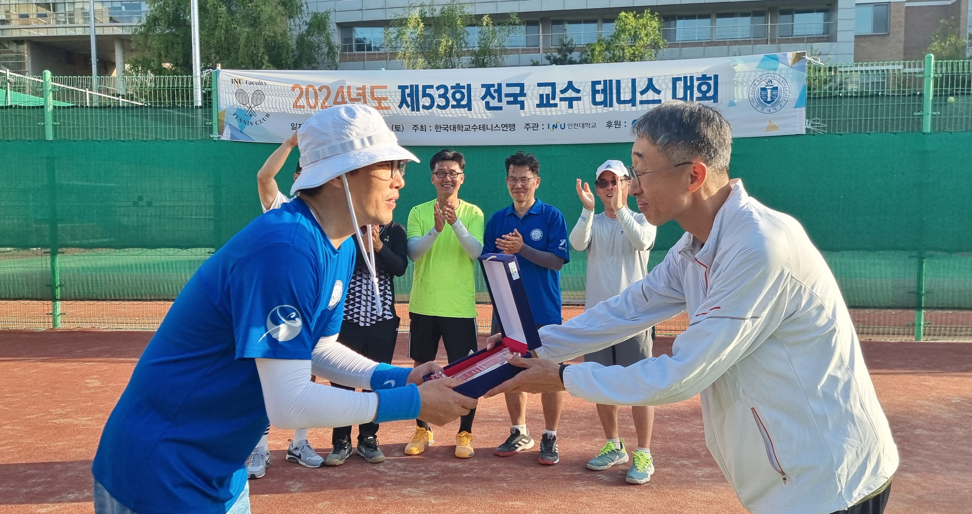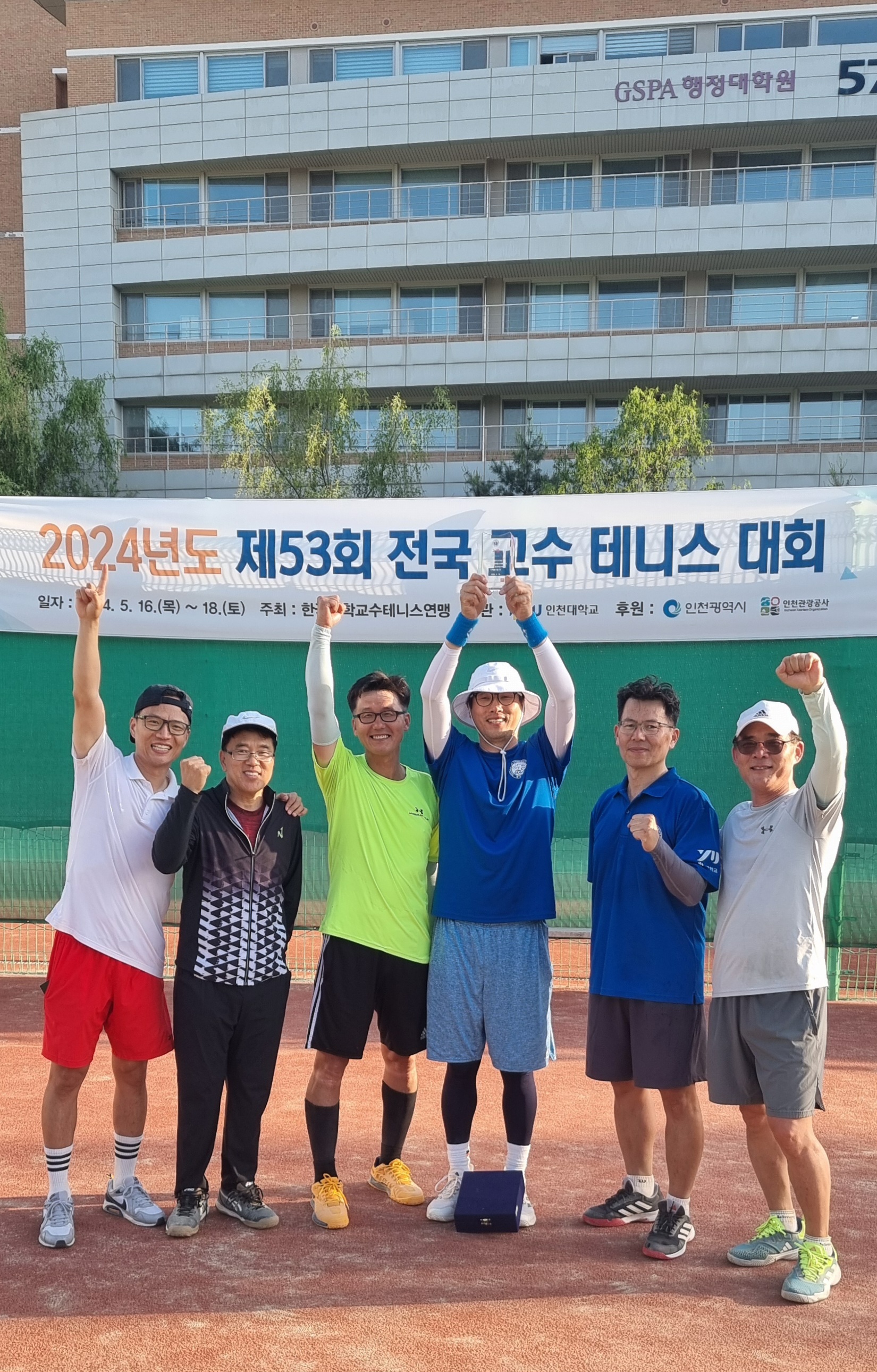2024년 제53회 전국교수테니스대회가 5월 17일~ 18일 양 이틀에 걸쳐 인천대학교를 비롯해 인천 \열우물 경기장과 송도달빛코트, 인천시립가좌테니스장, 서울대학교 코트등 9군데로 분산되어 총 85개 코트를 사용하여 개최 되었다. 전국의 85개 대학 1308 명이 참석한 이 대회는 첫날 개인전을 시작으로 청년부와 일반부, 장년부와 시니어부 그리고 여성부까지 총 12개 부서로 세분화하여 치러졌다.