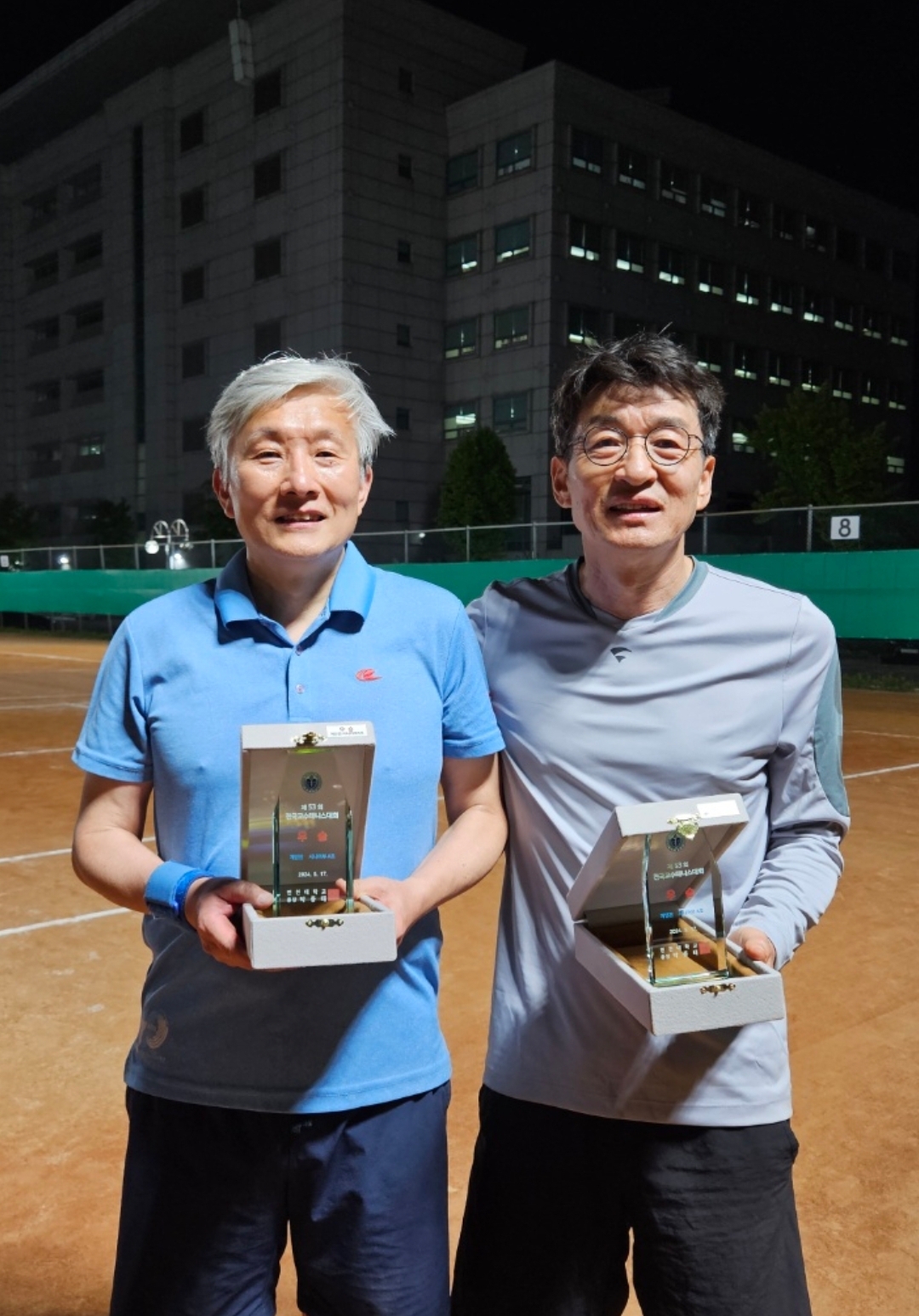 장년부 B조 우승은 국립 창원대학교 교수들이 차지했다. 서울대 시흥캠퍼스에서 4강을 마치고 늦게 관악캠퍼스로 이동해 결승을 치른 김원정, 윤태호 교수팀은 “내 인생에서 테니스로 상패를 받은 것은 첨이다. 둘이 파트너해서 7~8년간 대회를 다녔는데 계속 8강도 못 올라갔다”며 “어깨에 힘을 빼고 무리하지 않게 경기를 하다보니 의외로 좋은 결과가 나온 것 같아 너무 기쁘다”고 전했다.