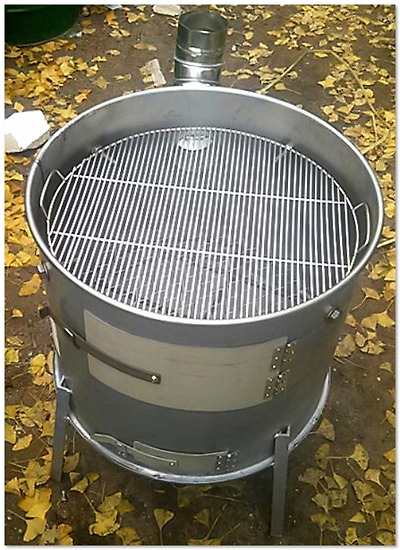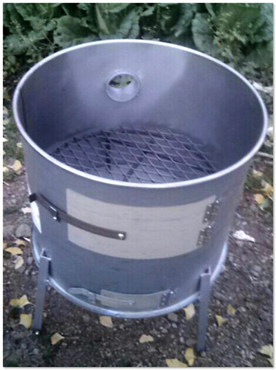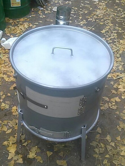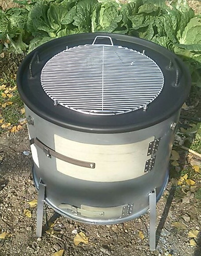 굽거나 통돼지,소세지, 통닭을 넣고뚜껑을 덮고 훈제바베큐를 만들어 먹을 수 있도록 제작했음.