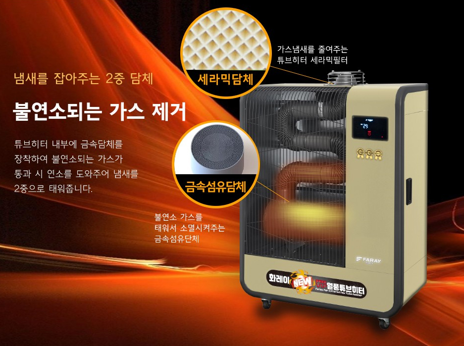 원적외선 난방 방식을 이용해 넓은 공간에서 강력하고 효율적인 난방이 가능하고