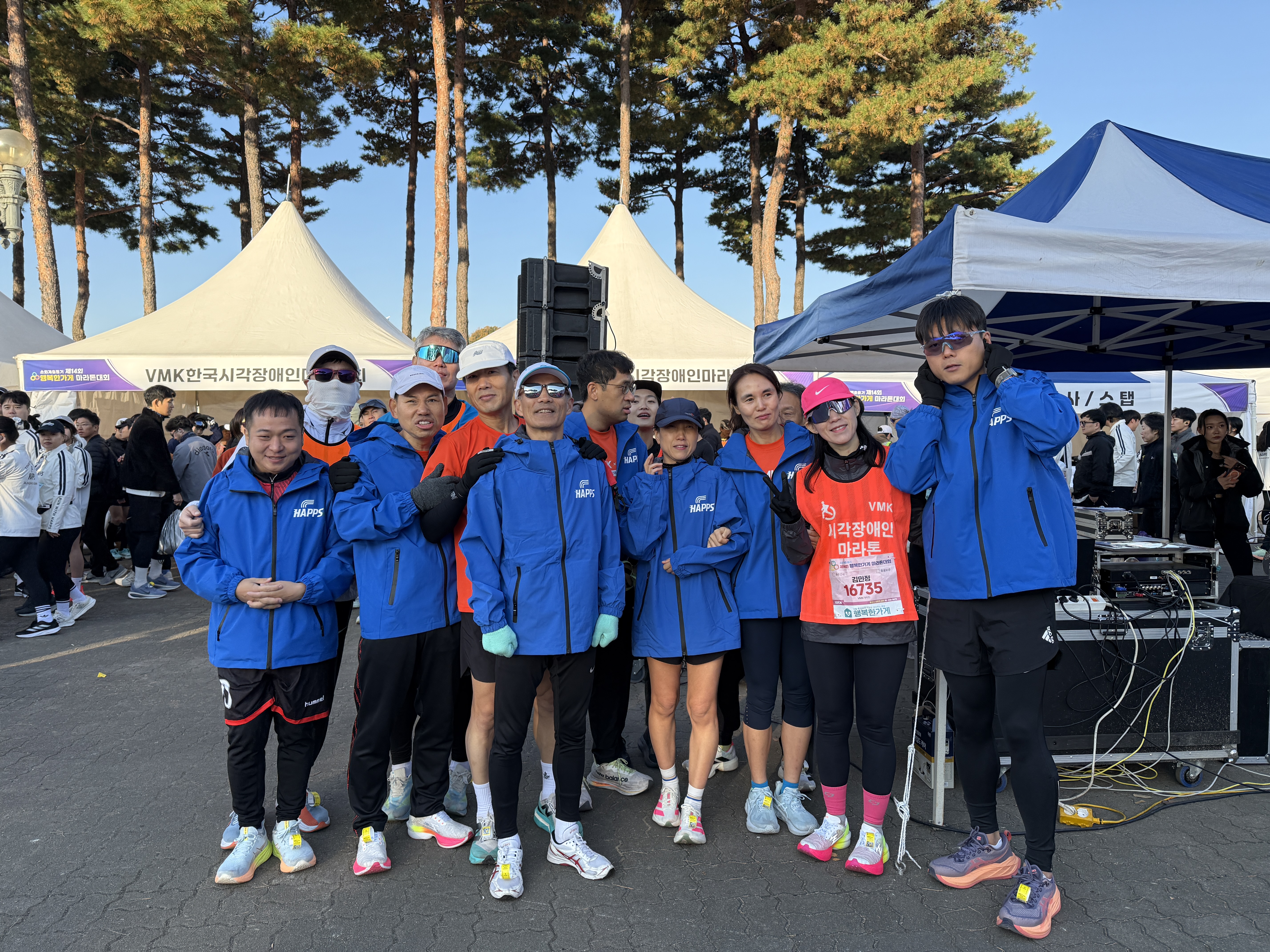 2025년 11월 15일(토) 서울 상암 월드컵공원 평화광장에서 열린 '소외계층돕기 제14회 행복한가게 마라톤대회'에 참가한 한국시각장애인마라톤회(VMK, 회장 이민규) 회원 32명과 빛나눔 동반 주자(가이드 러너)와 스태프 포함 70여 명이 참여해 청명한 가을 날씨와 풍경을 만끽하며 레이스를 즐겼습니다.