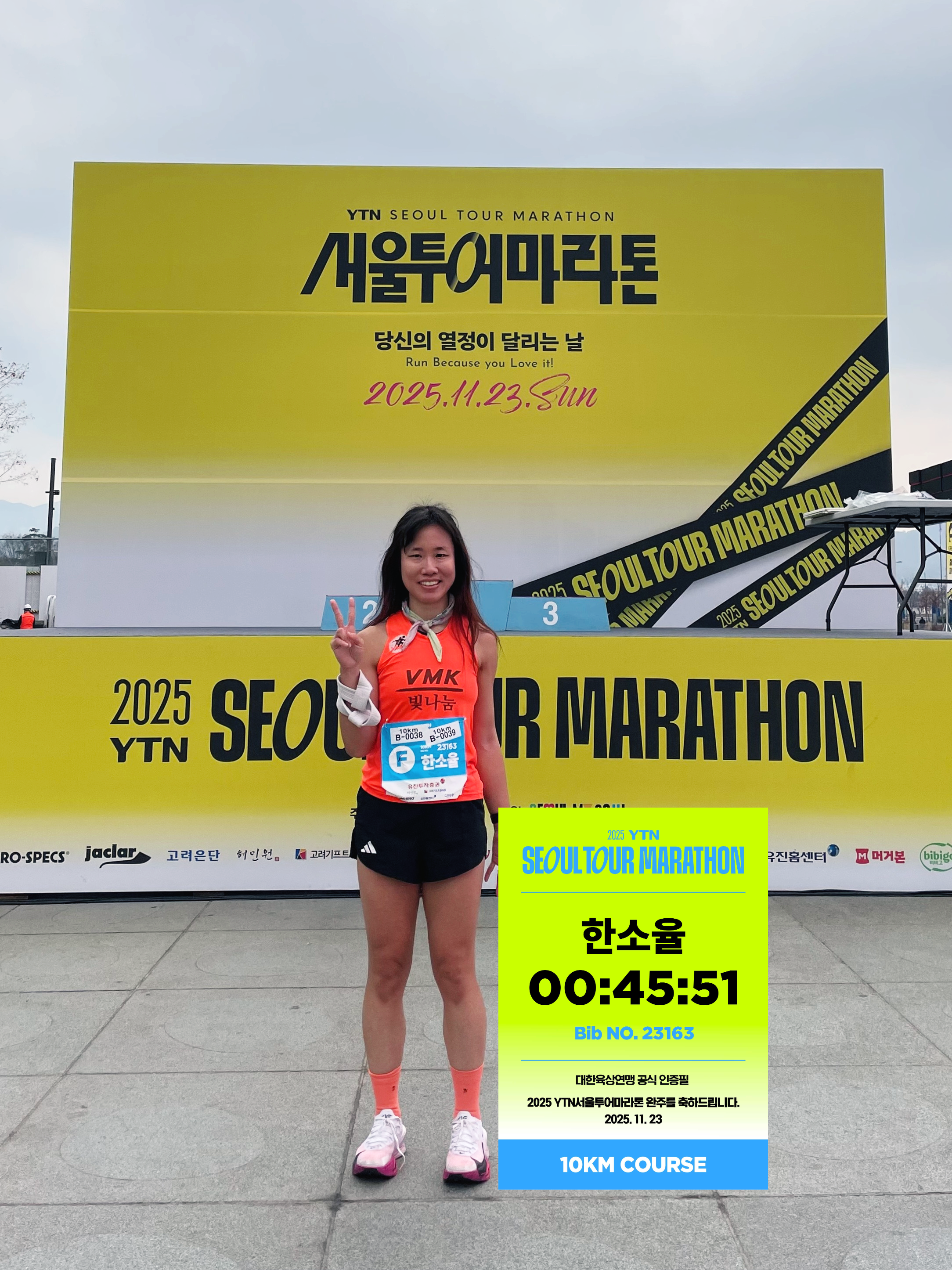 △ 힌소율 님 10km 기록 45분 51초 PB 달성