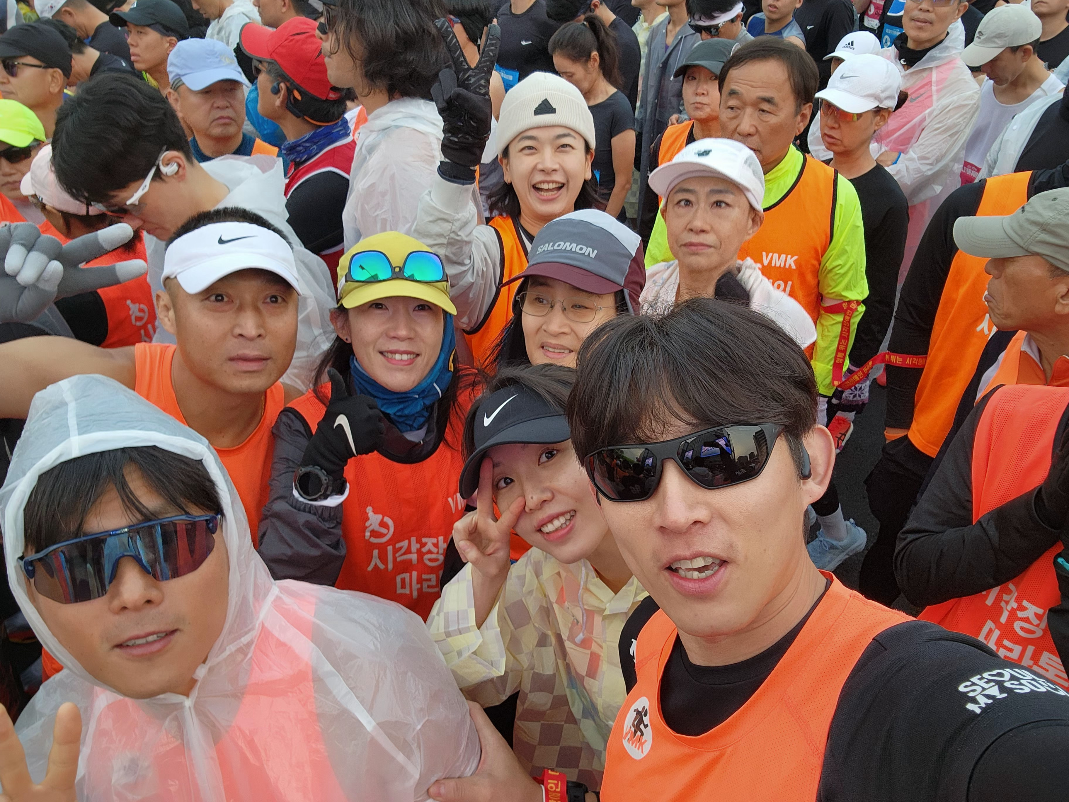 오늘(23일, 일요일) 오전 광화문광장에서 8시에 시작한 '2025 YTN 서울 투어 마라톤 대회'에 참가한 한국시각장애인마라톤회(VMK) 소속 시각장애인 31명은 이들과 함께 뛰는 빛나눔동반주자(가이드 러너)와 광화문광장, 남대문, 동대문, 청계천 등을 함께 즐기면서 달렸습니다. 위 사진은 6시 55분 광화문 우체국 앞에서 화이팅을 외치며 기념사진을 찍고 있는 모습입니다.