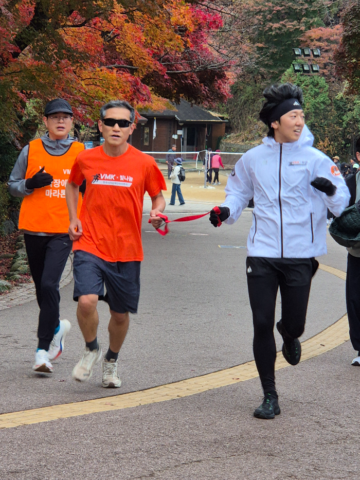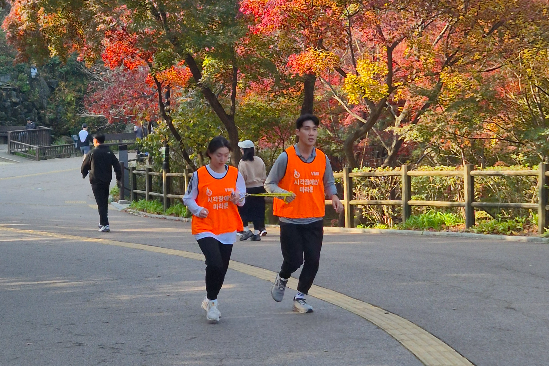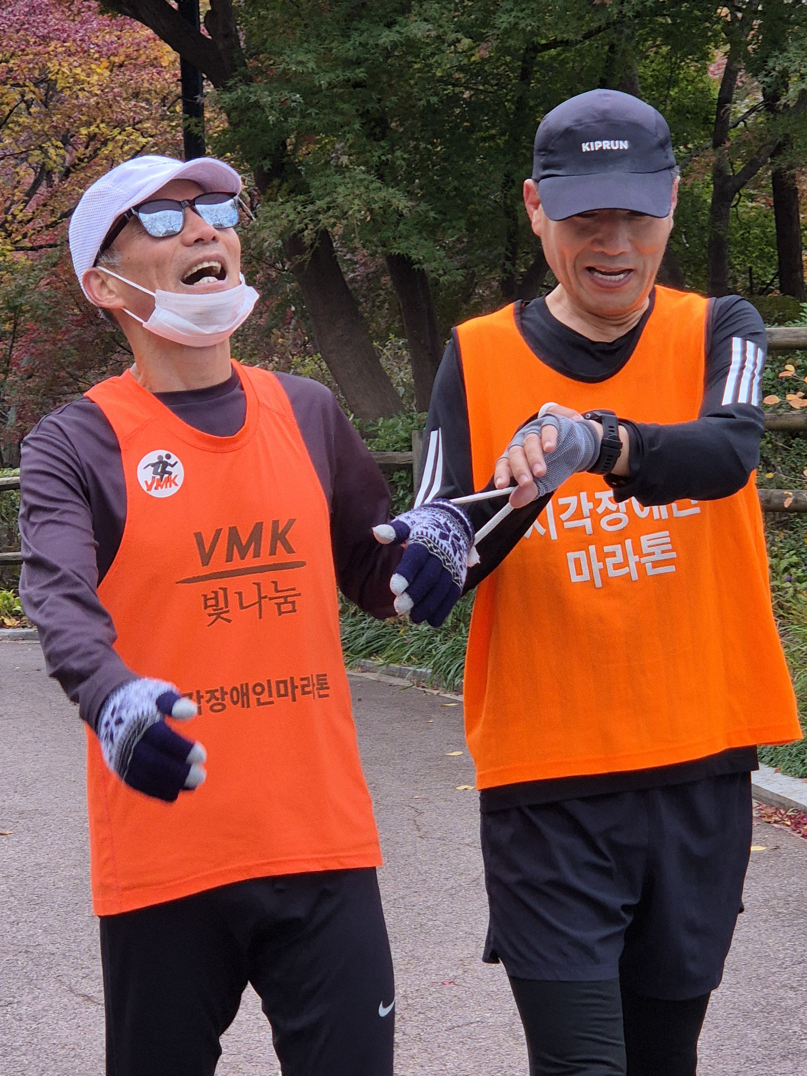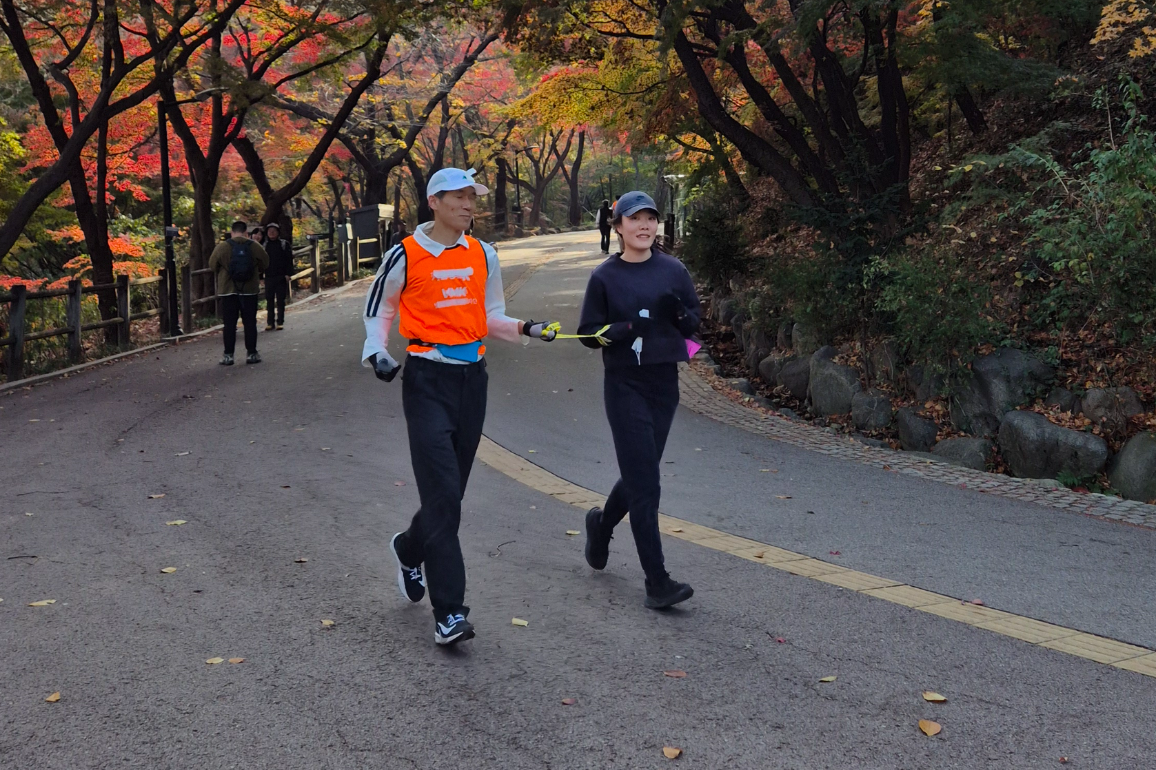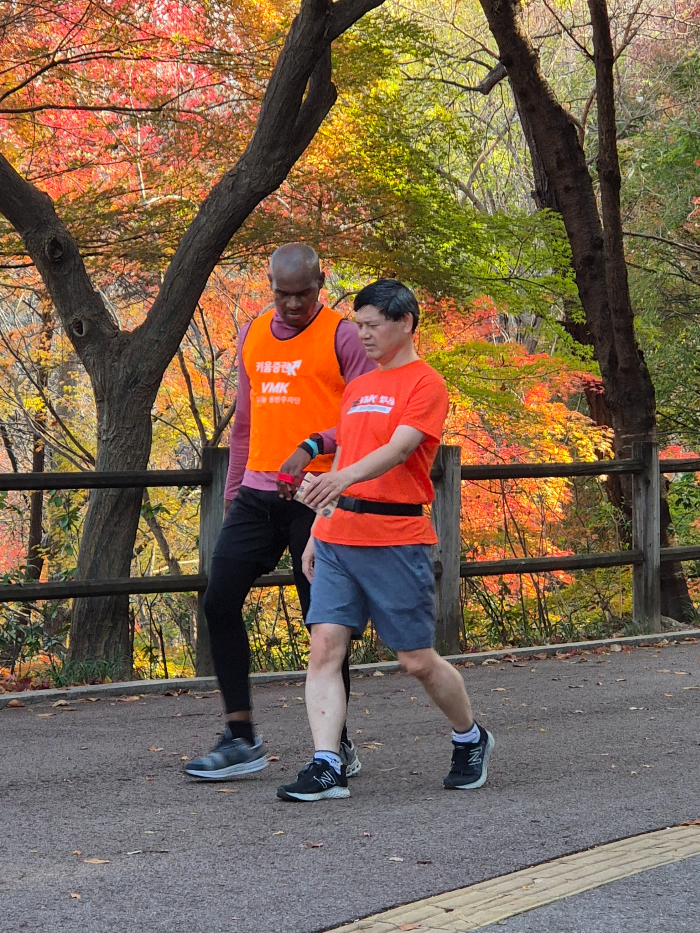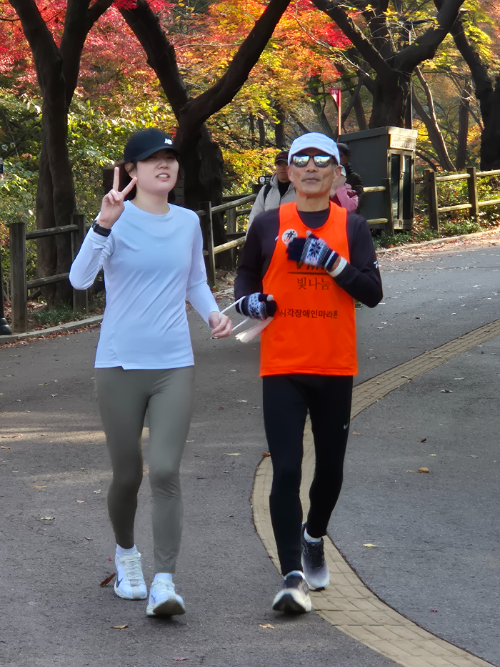 2025년 11월 22일(토) 오전 9시, 서울시 중구 남산 북측순환로에서 한국시각장애인마라톤회(VMK) 정기 훈련과 빛나눔 동반주자 신입 단원을 위한 가이드 러너 교육이 진행됐습니다.