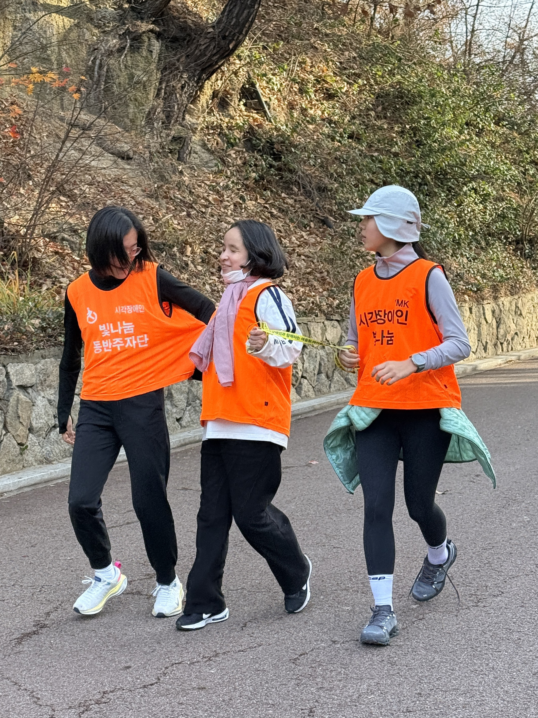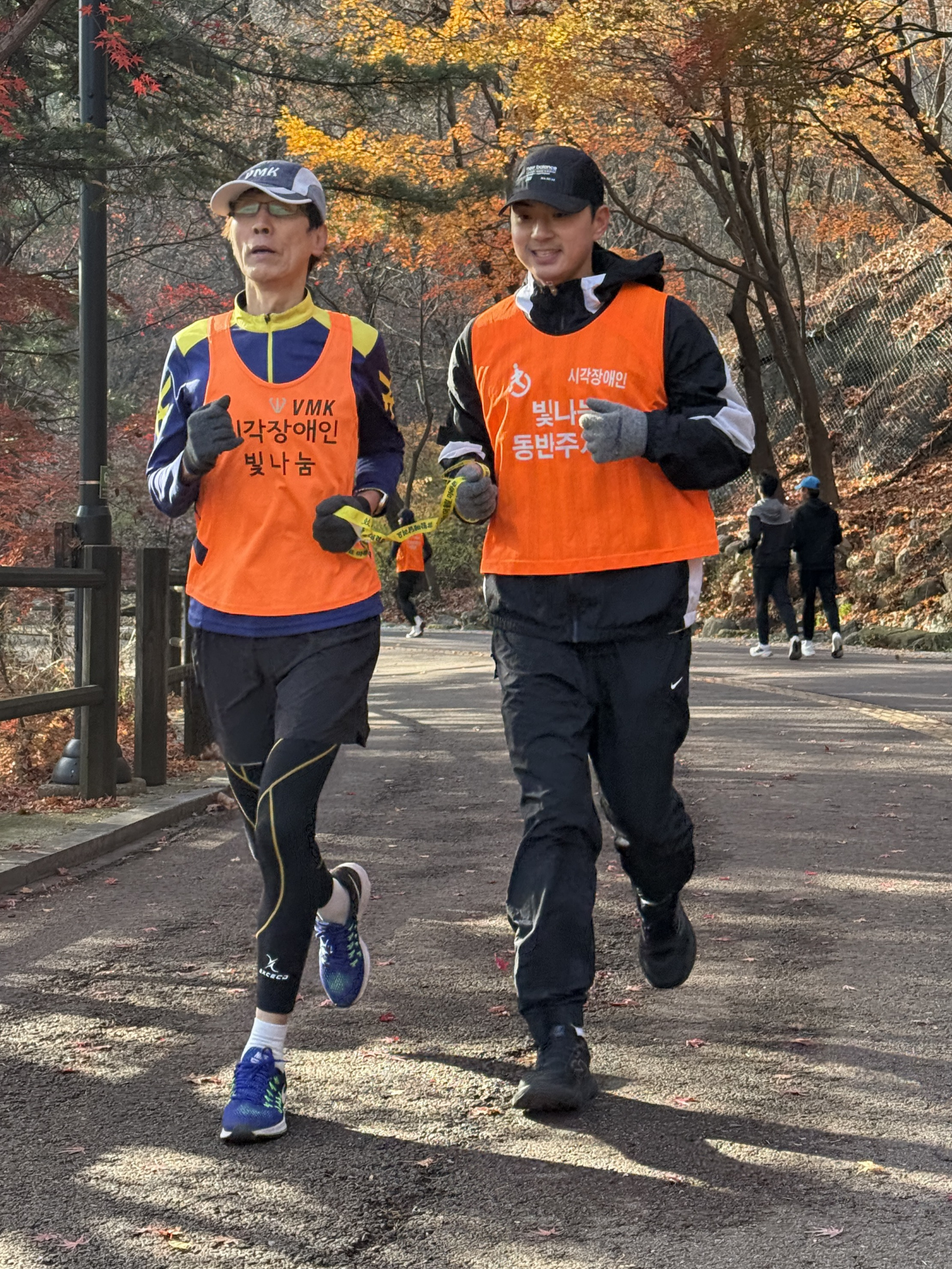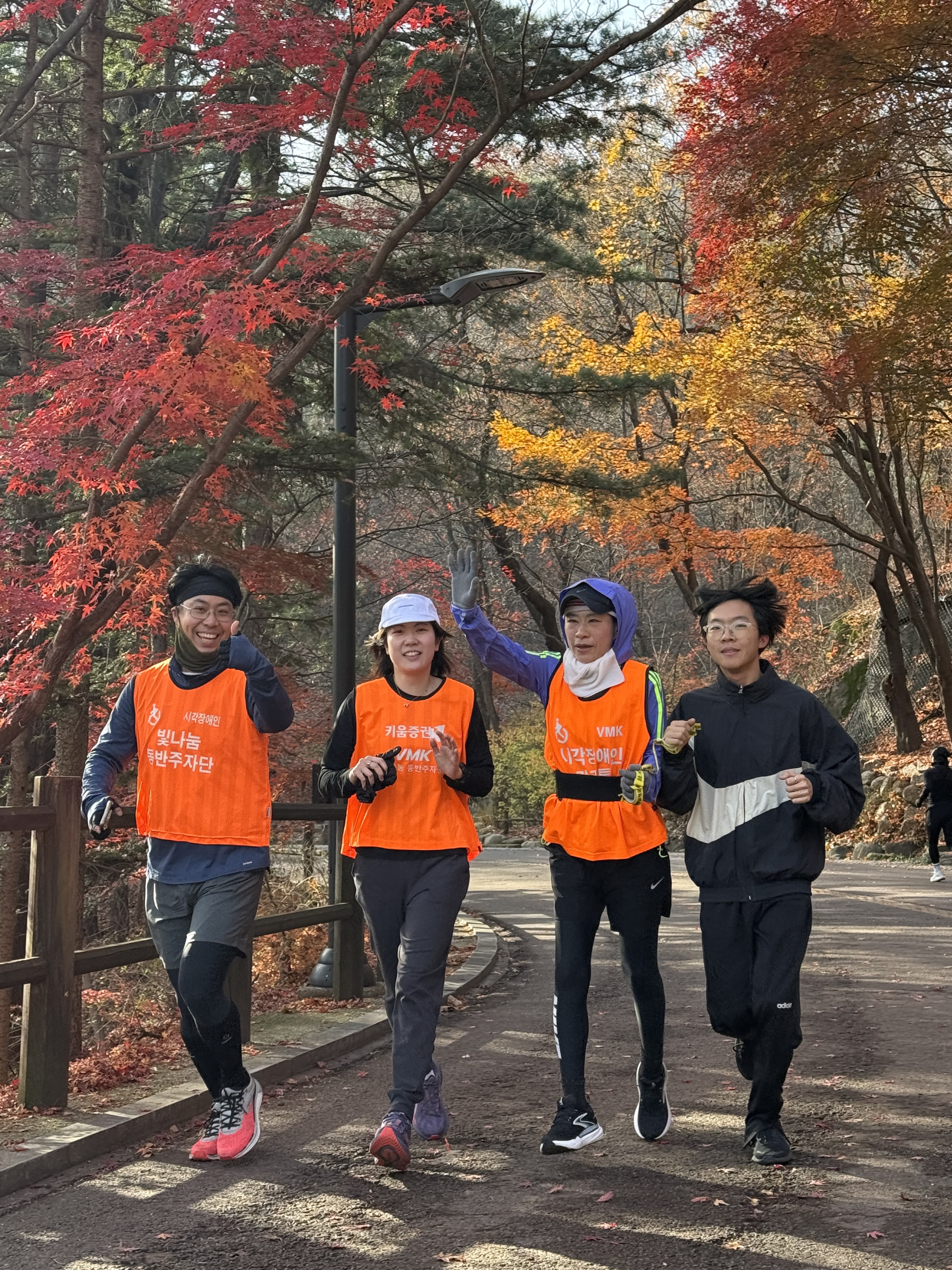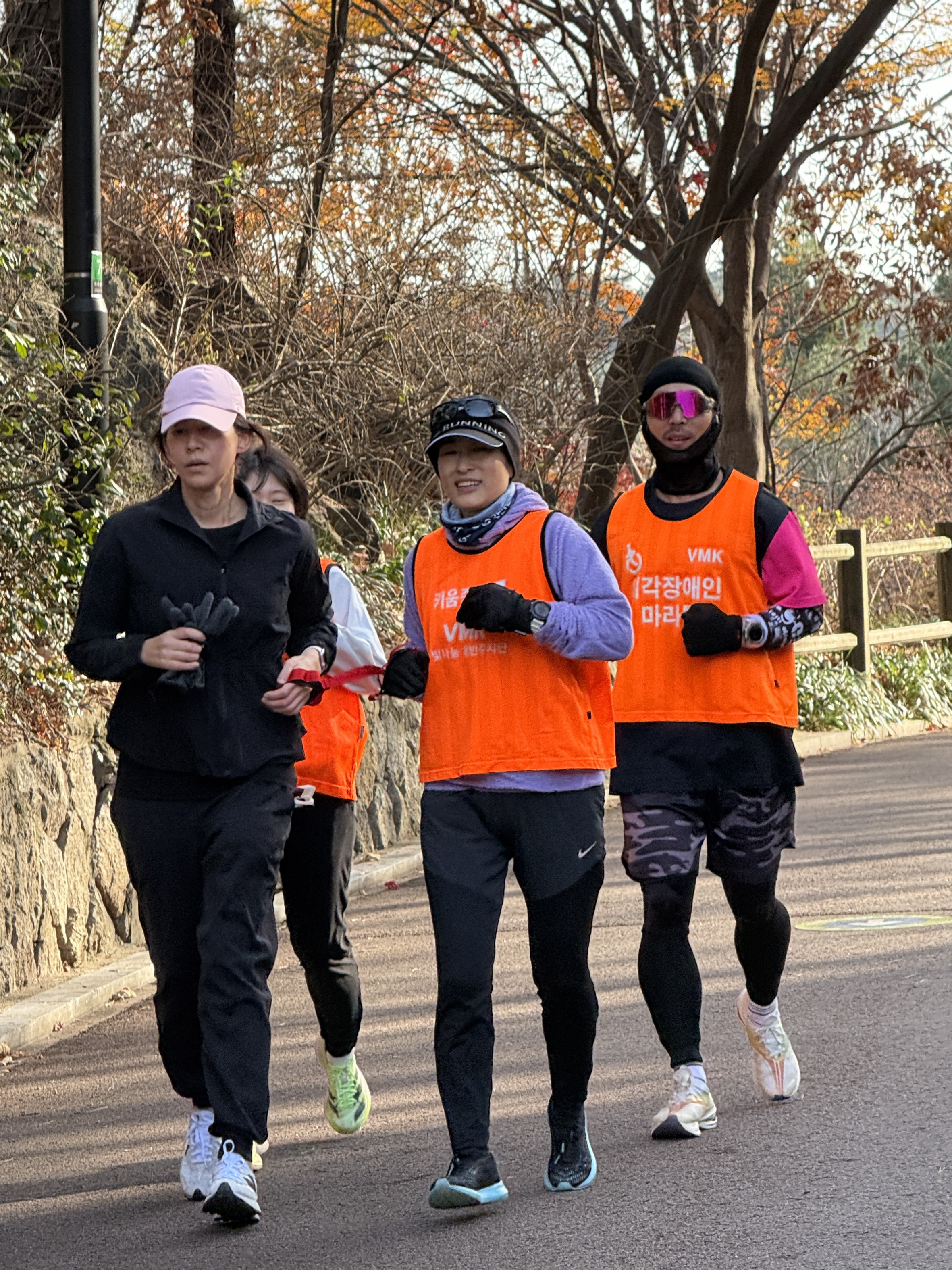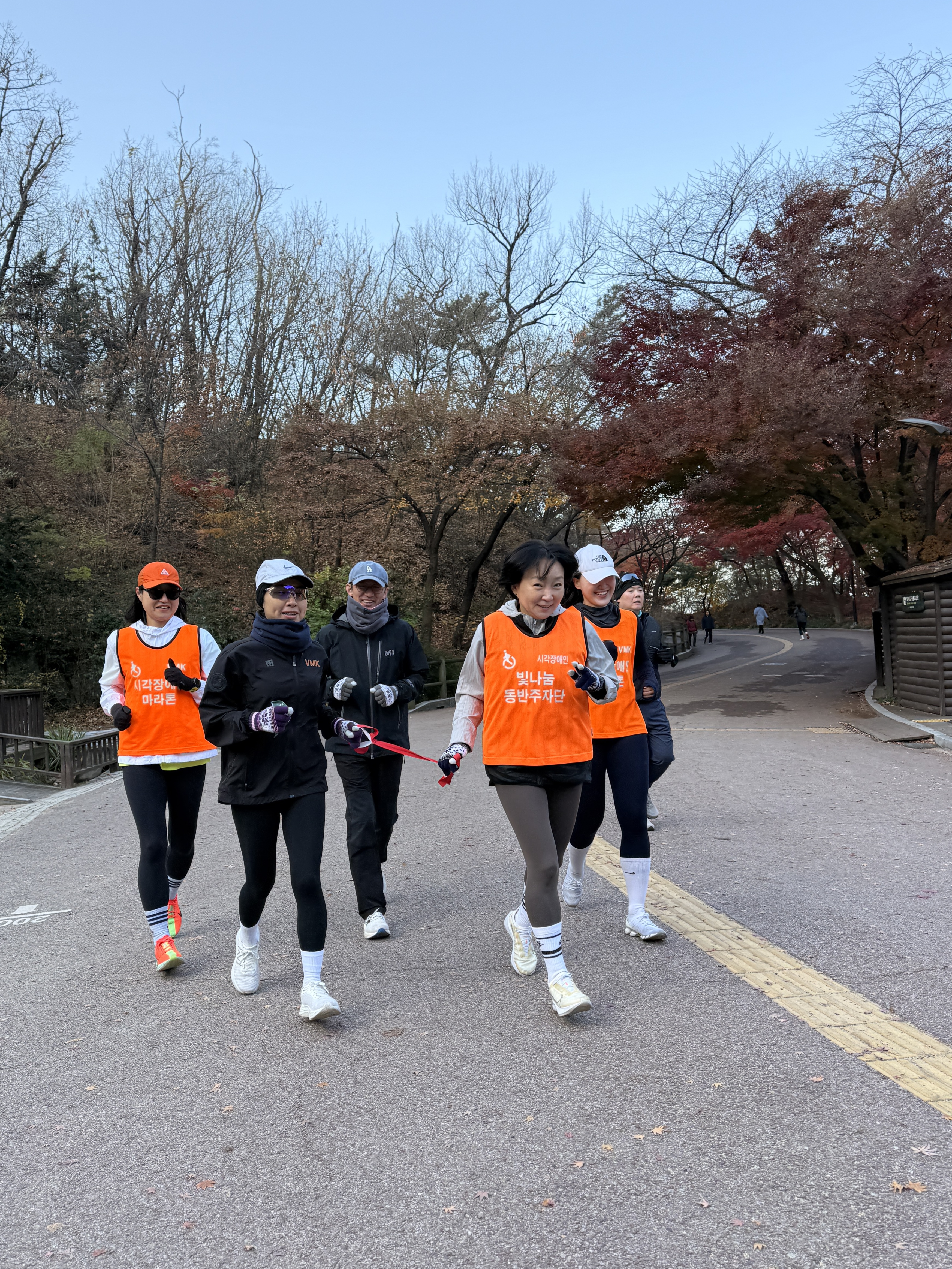 2025년 11월 29일 토요일 오전 9시, 서울 남산 북측순환로에서 진행된 한국시각장애인마라톤회(VMK) 정기 훈련과 가이드 러너 교육 사진입니다.11·29