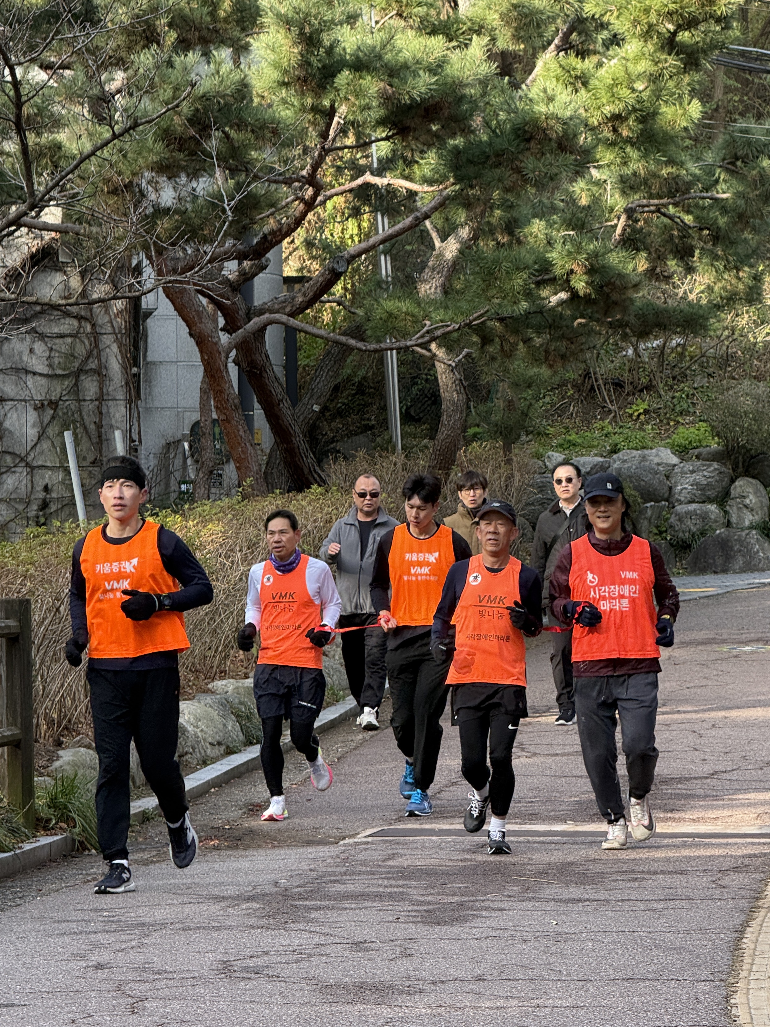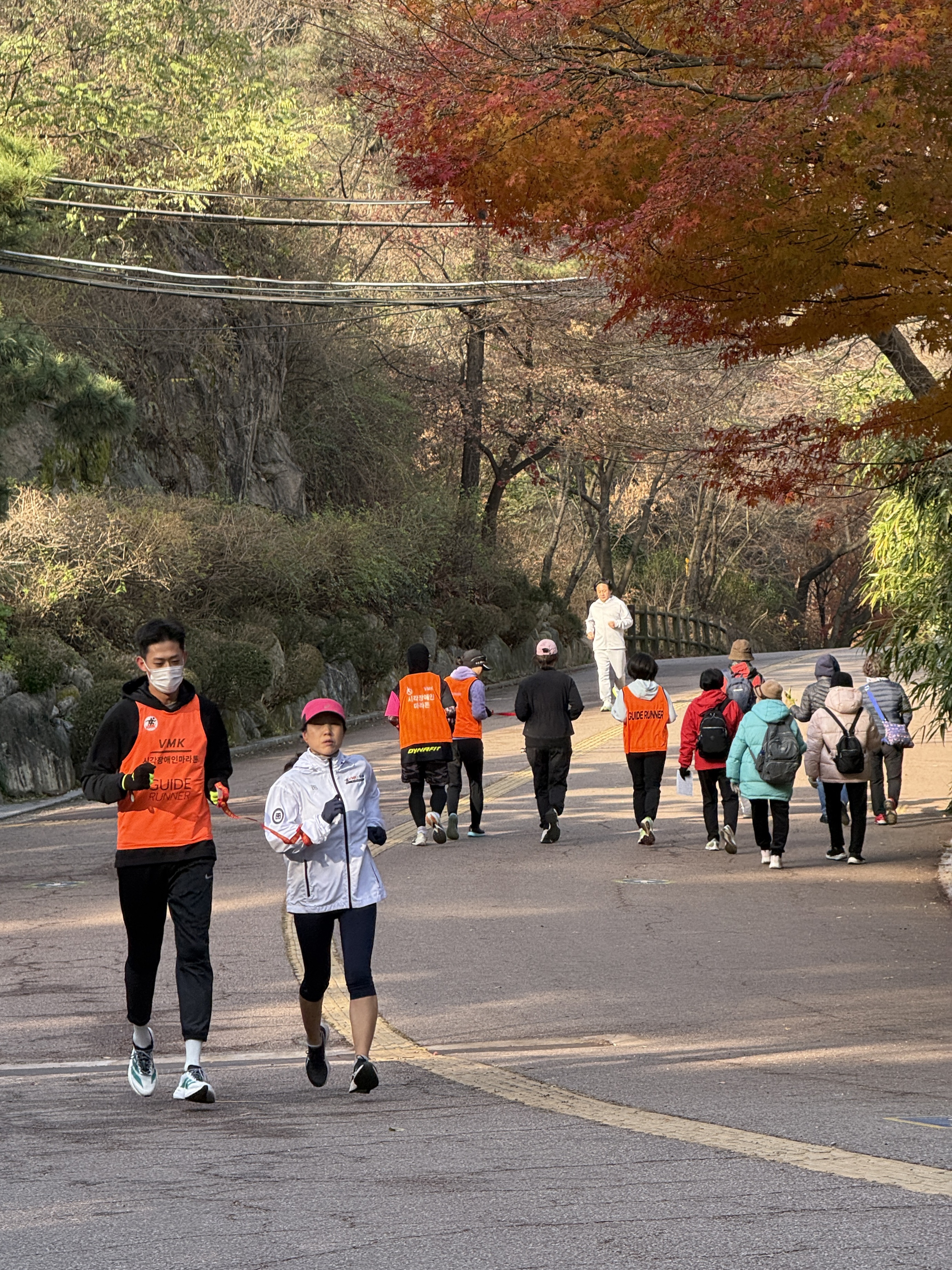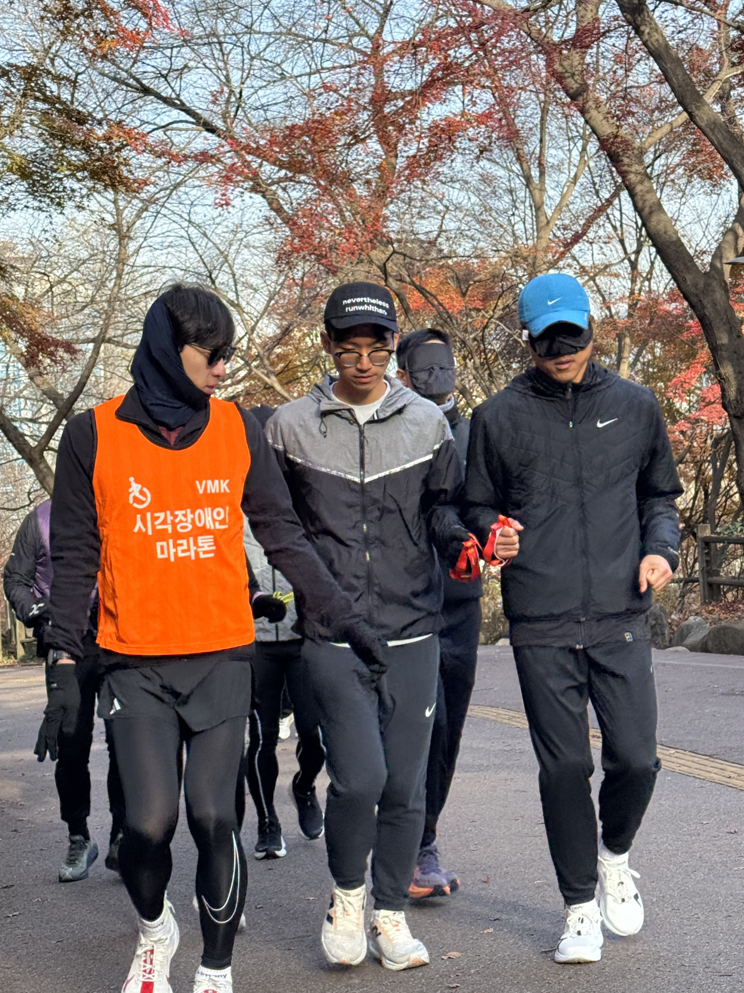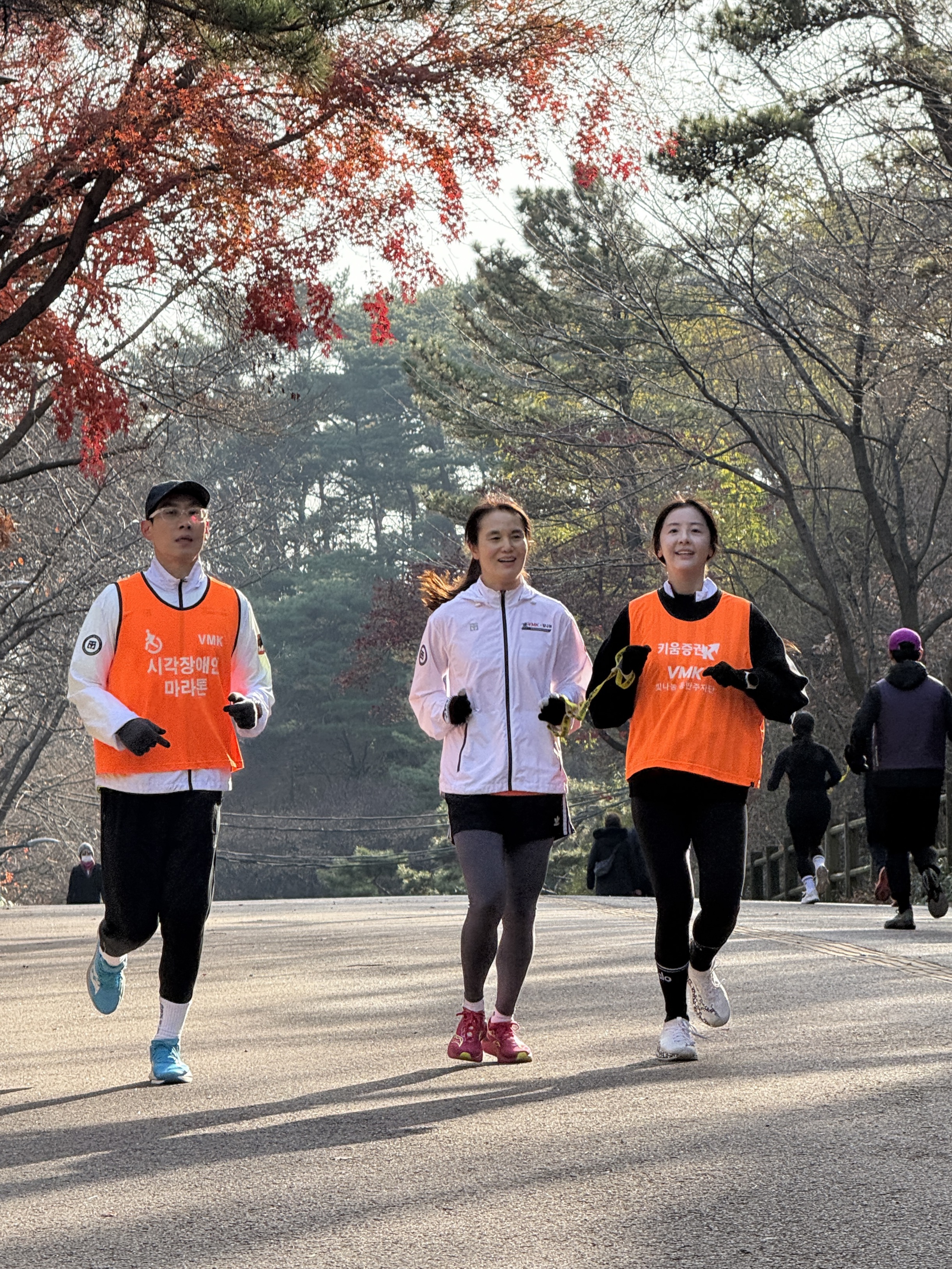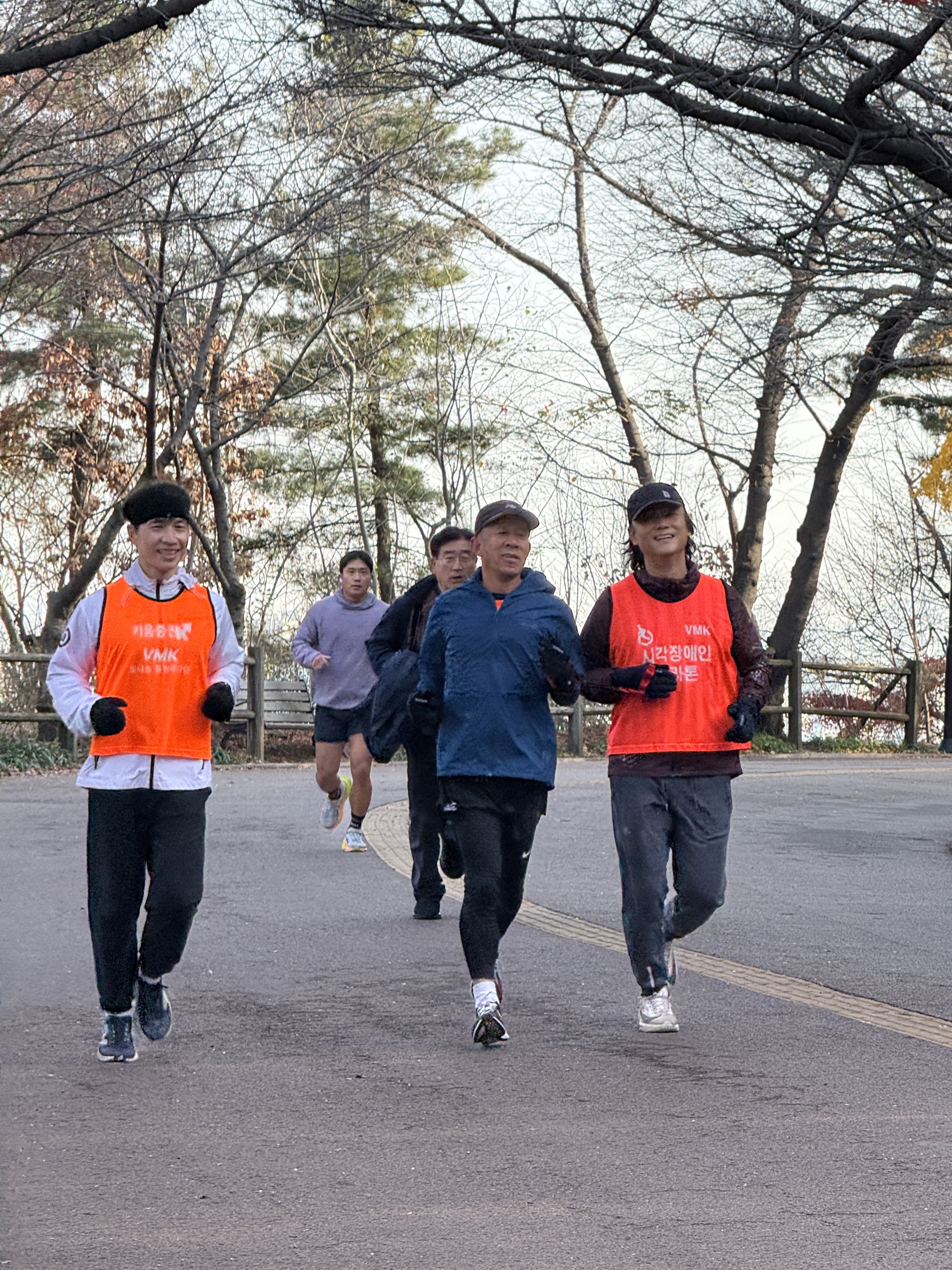 2025년 11월 29일 토요일 오전 9시, 서울 남산 북측순환로에서 진행된 한국시각장애인마라톤회(VMK) 정기 훈련과 가이드 러너 교육 사진입니다.11·29