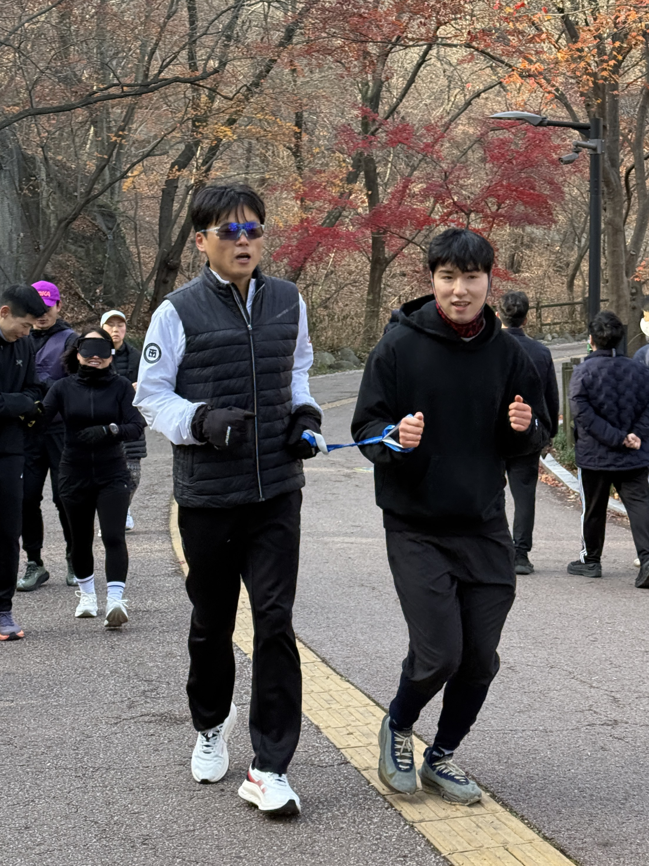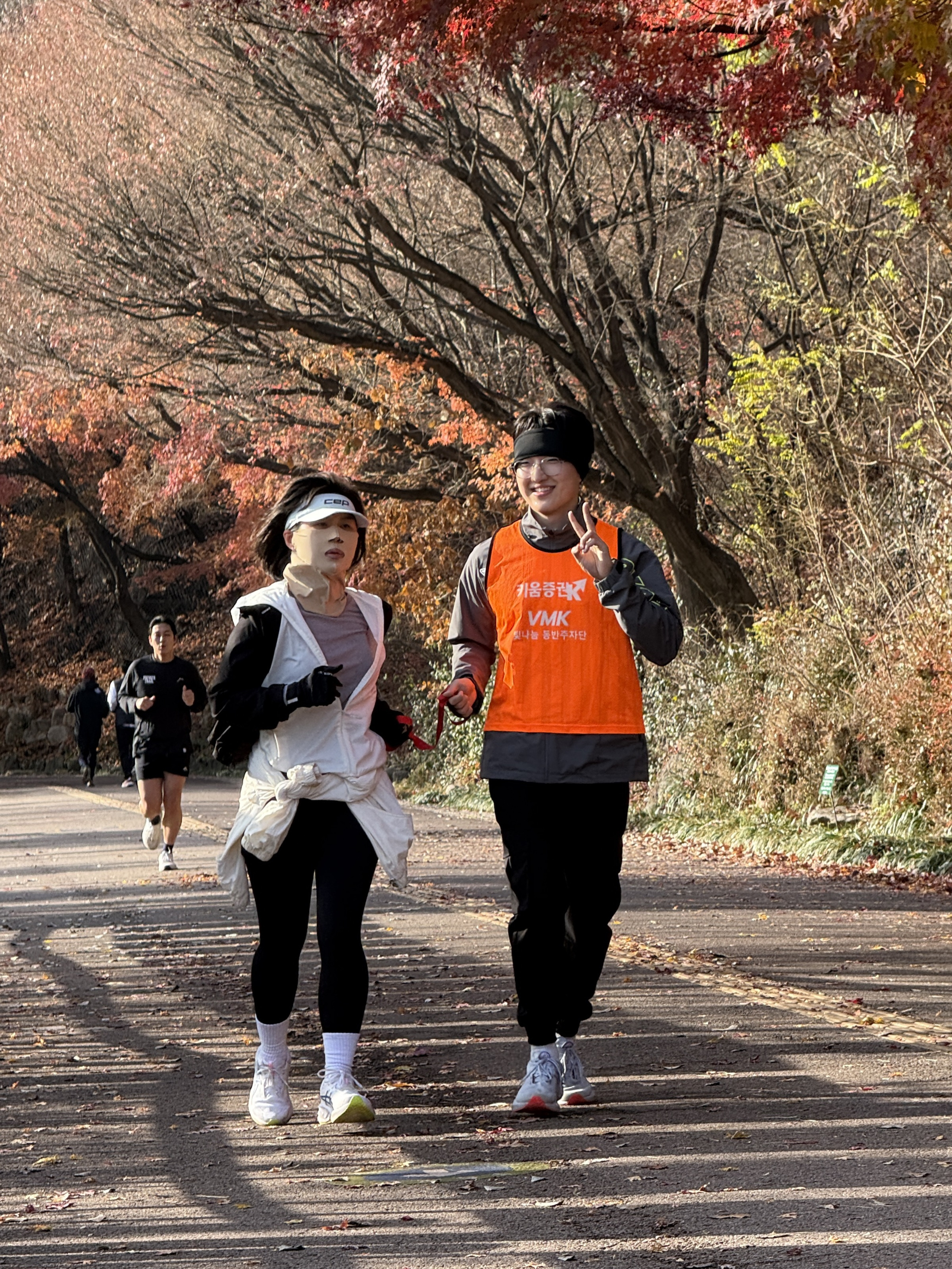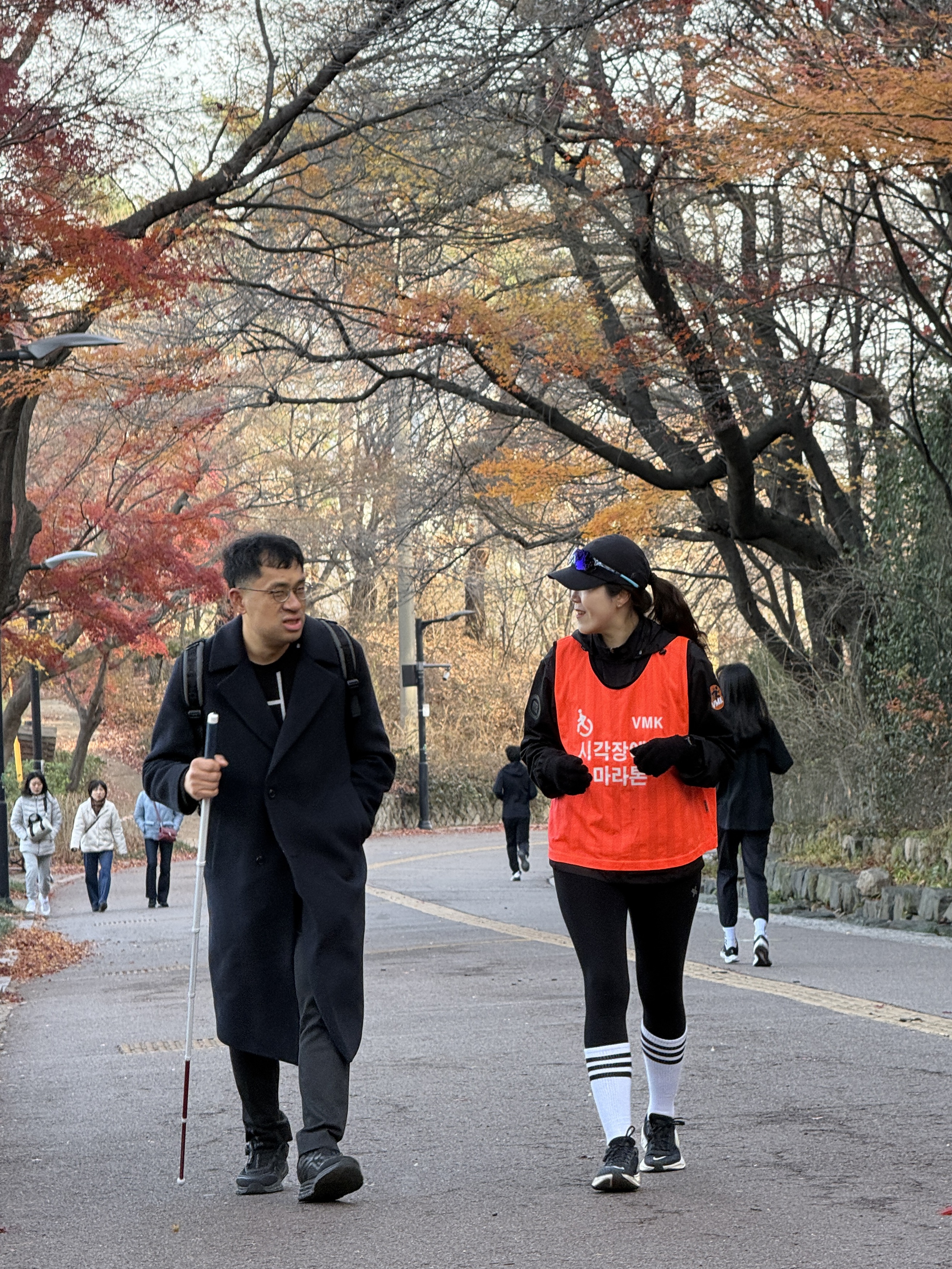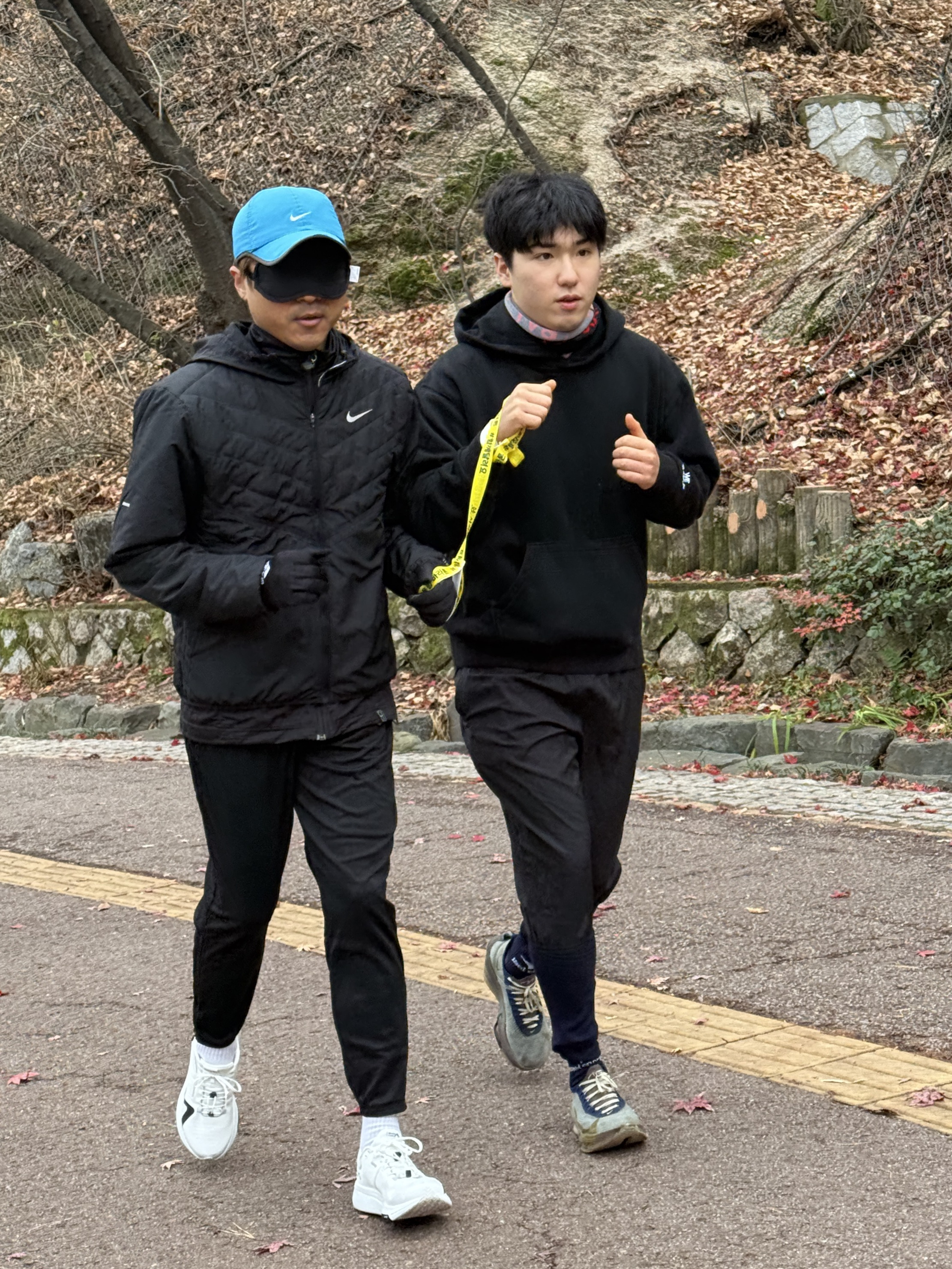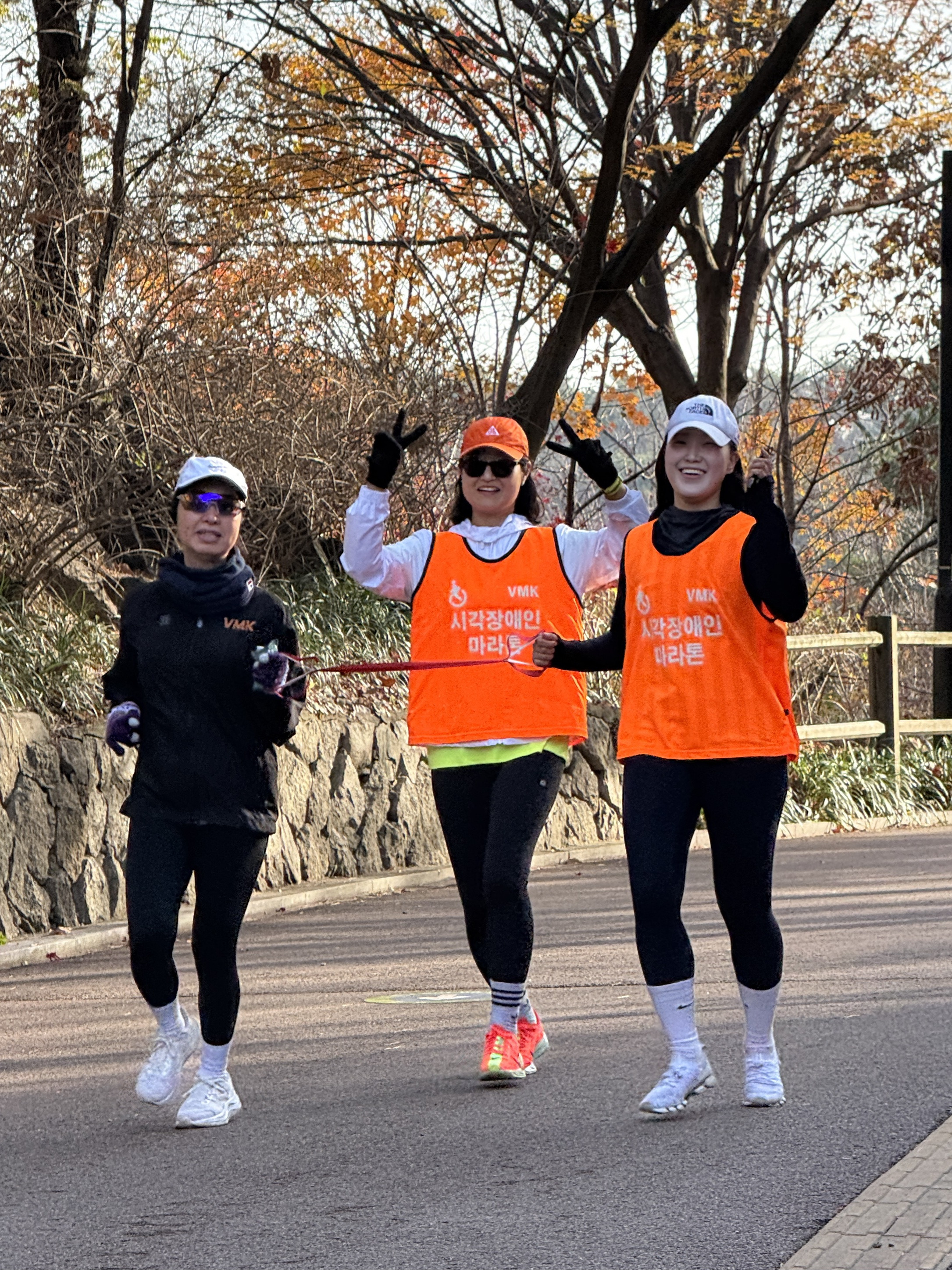 2025년 11월 29일 토요일 오전 9시, 서울 남산 북측순환로에서 진행된 한국시각장애인마라톤회(VMK) 정기 훈련과 가이드 러너 교육 사진입니다.11·29