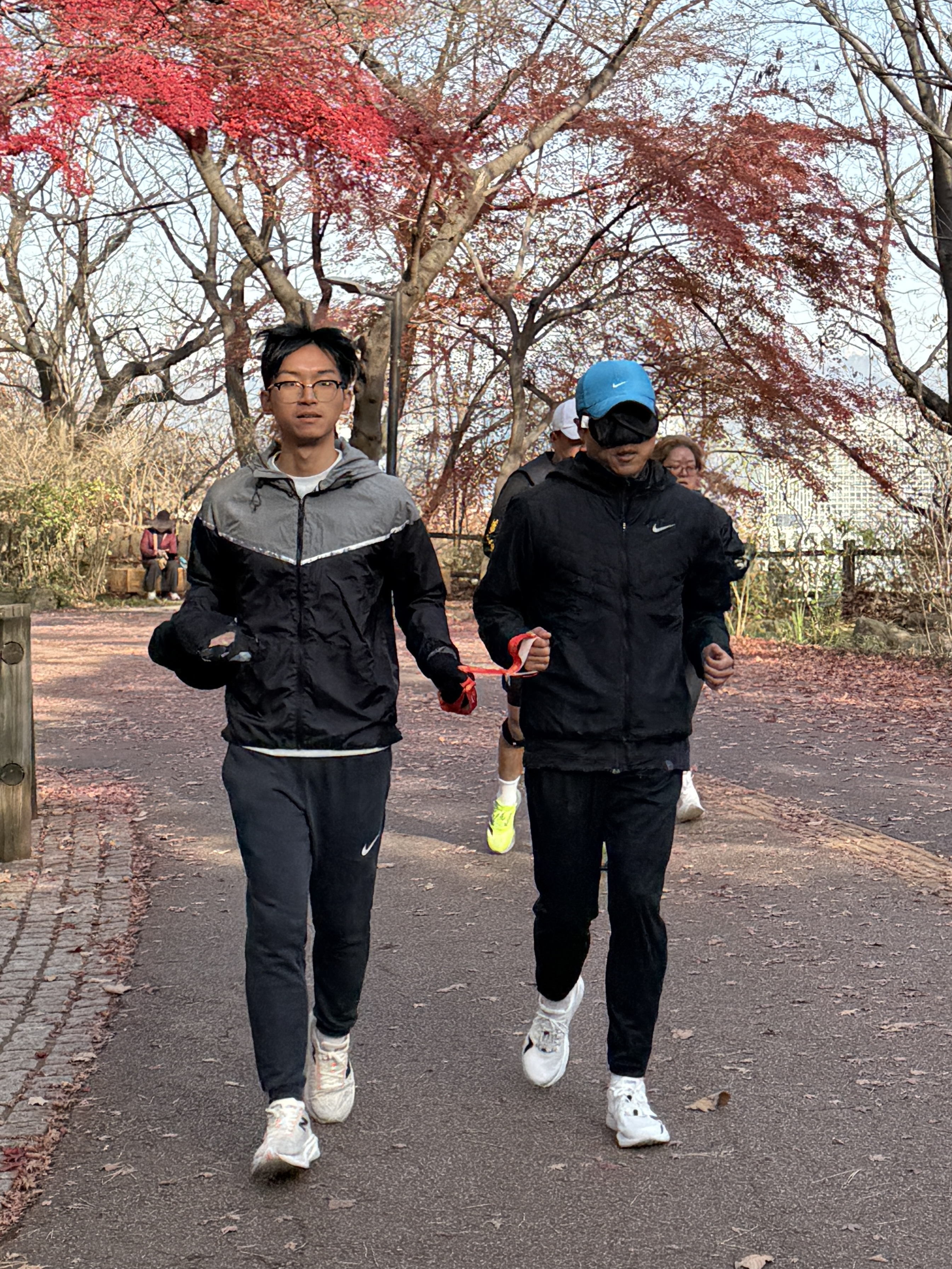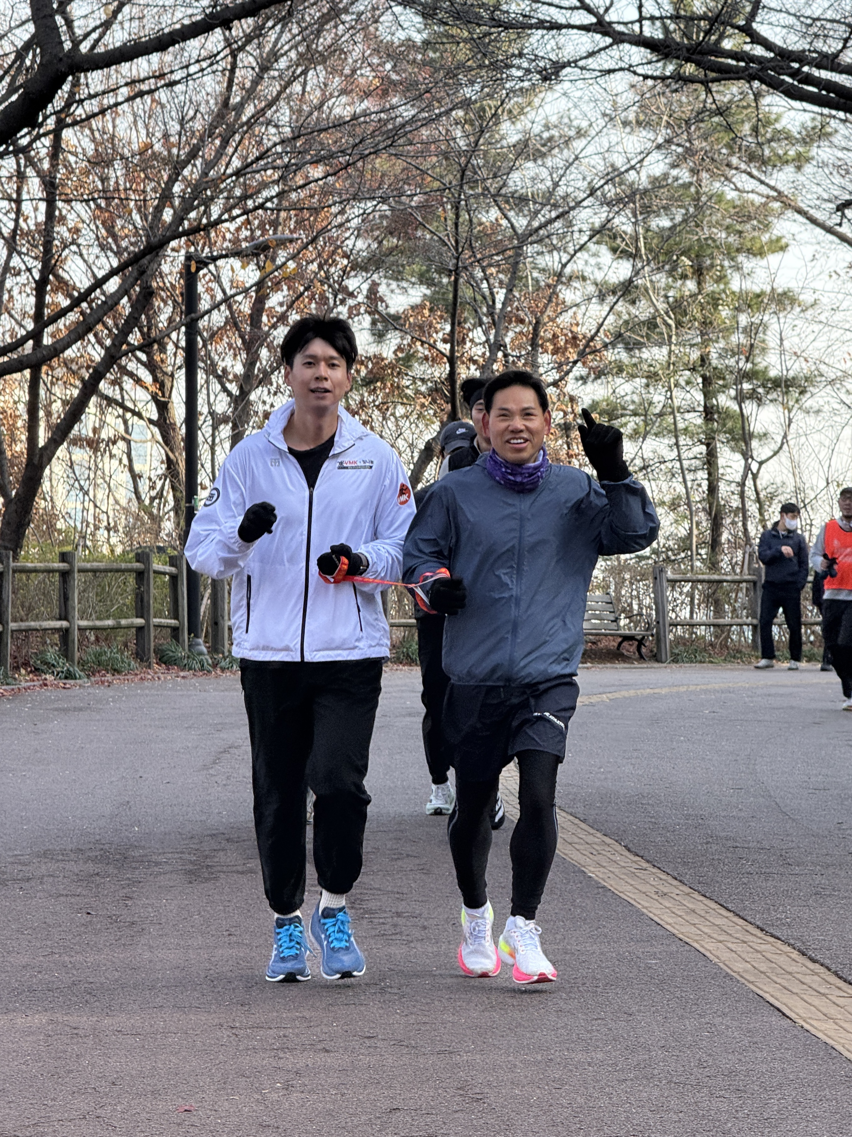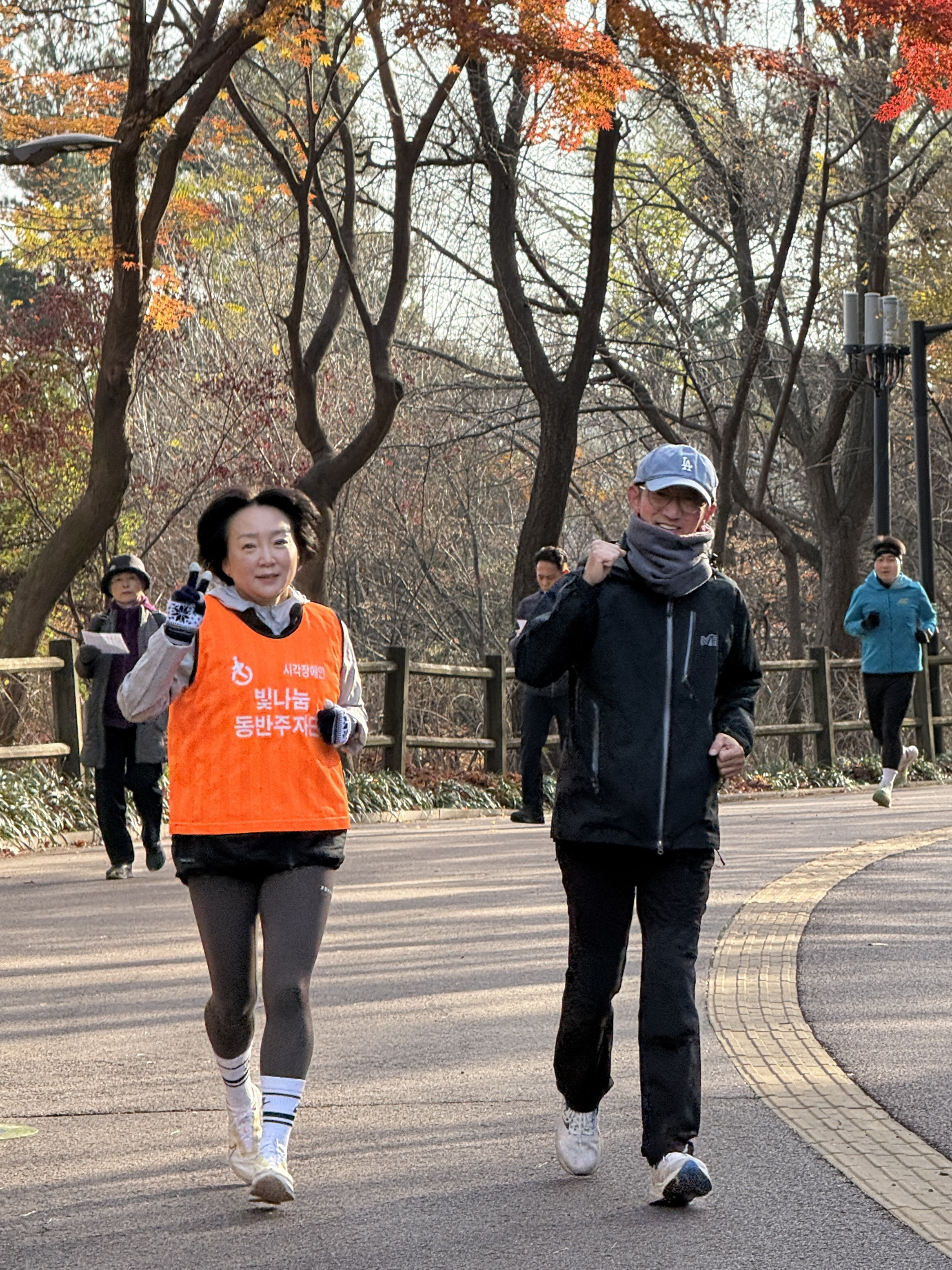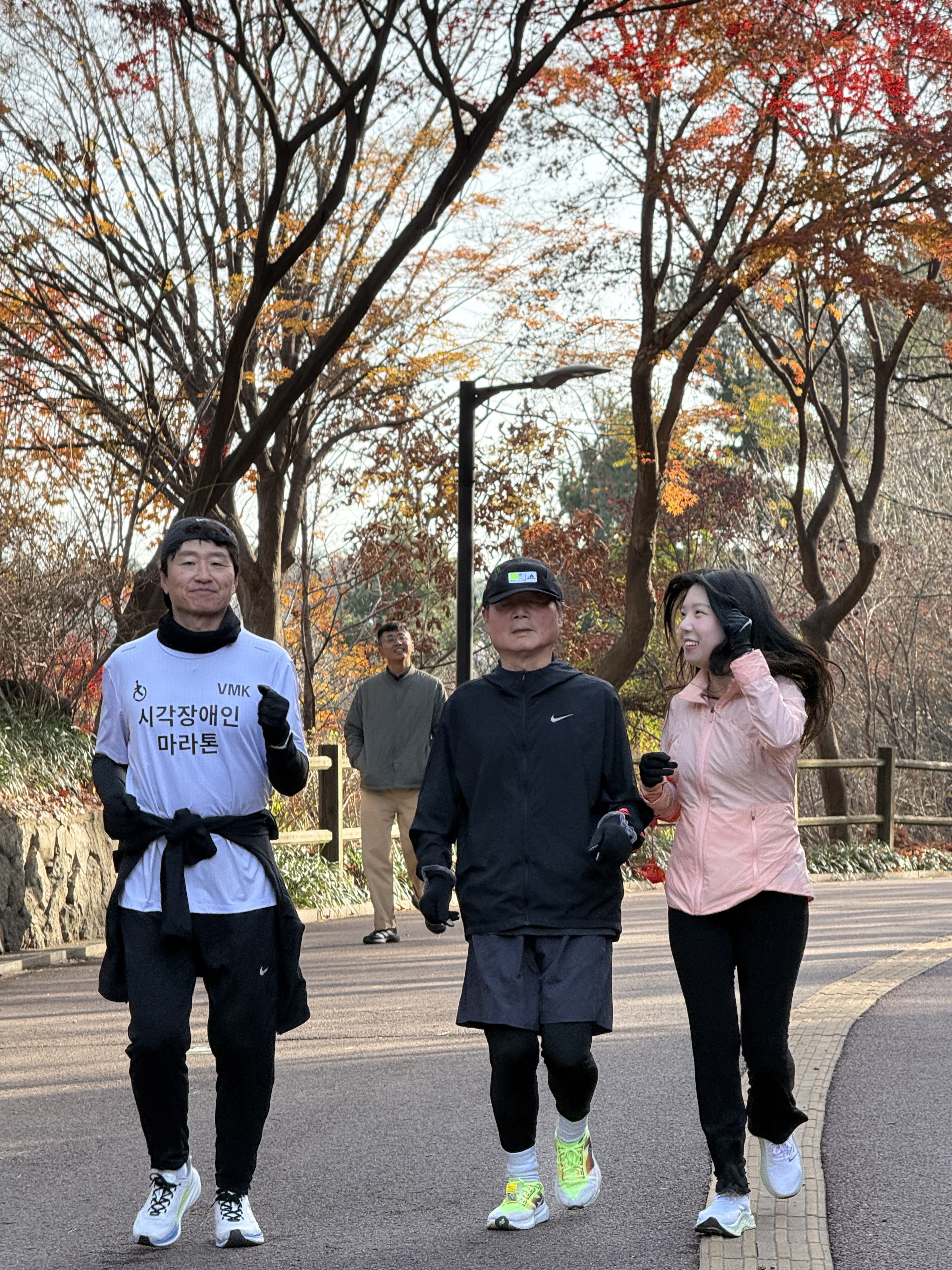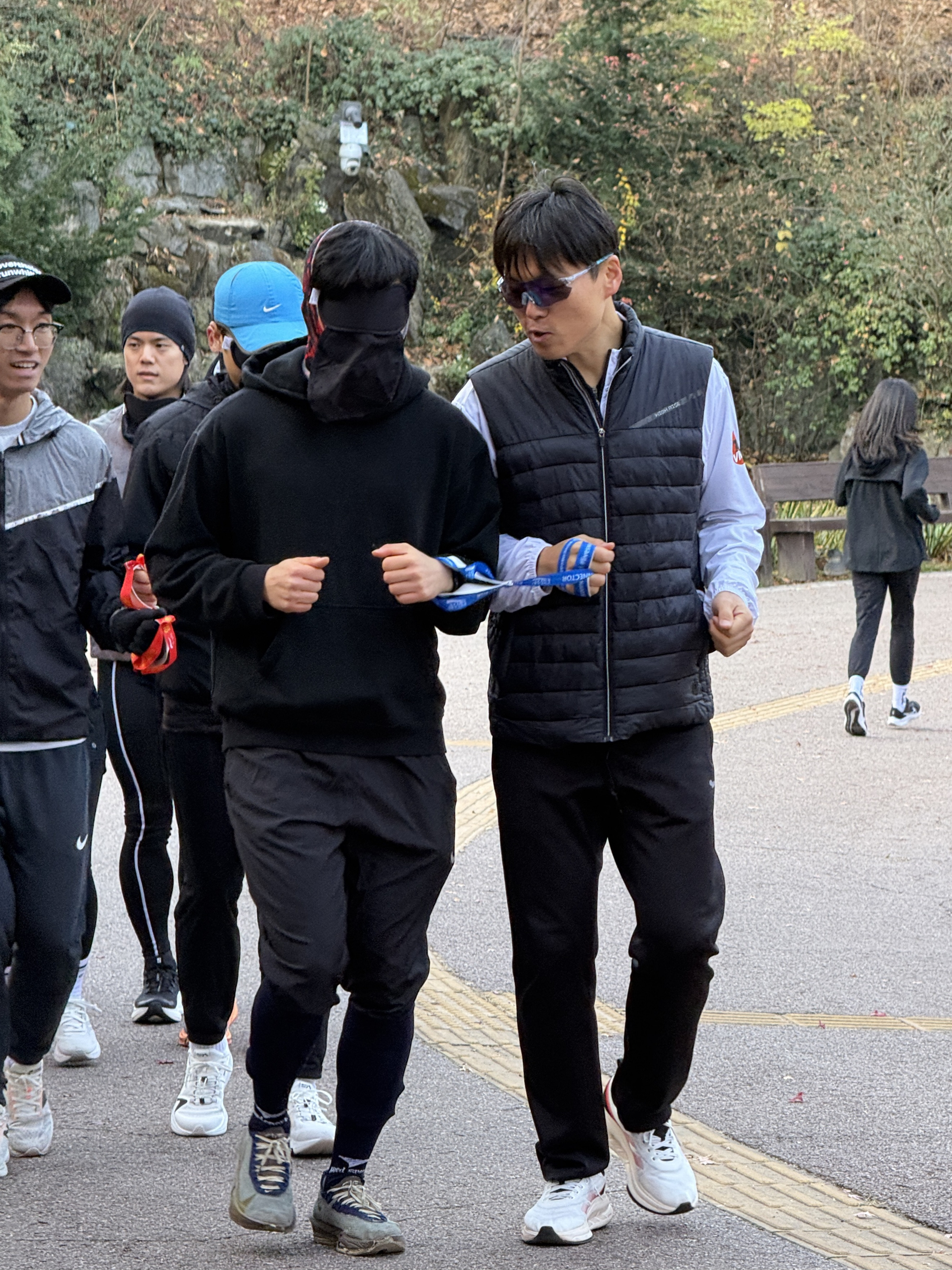 2025년 11월 29일 토요일 오전 9시, 서울 남산 북측순환로에서 진행된 한국시각장애인마라톤회(VMK) 정기 훈련과 가이드 러너 교육 사진입니다.11·29