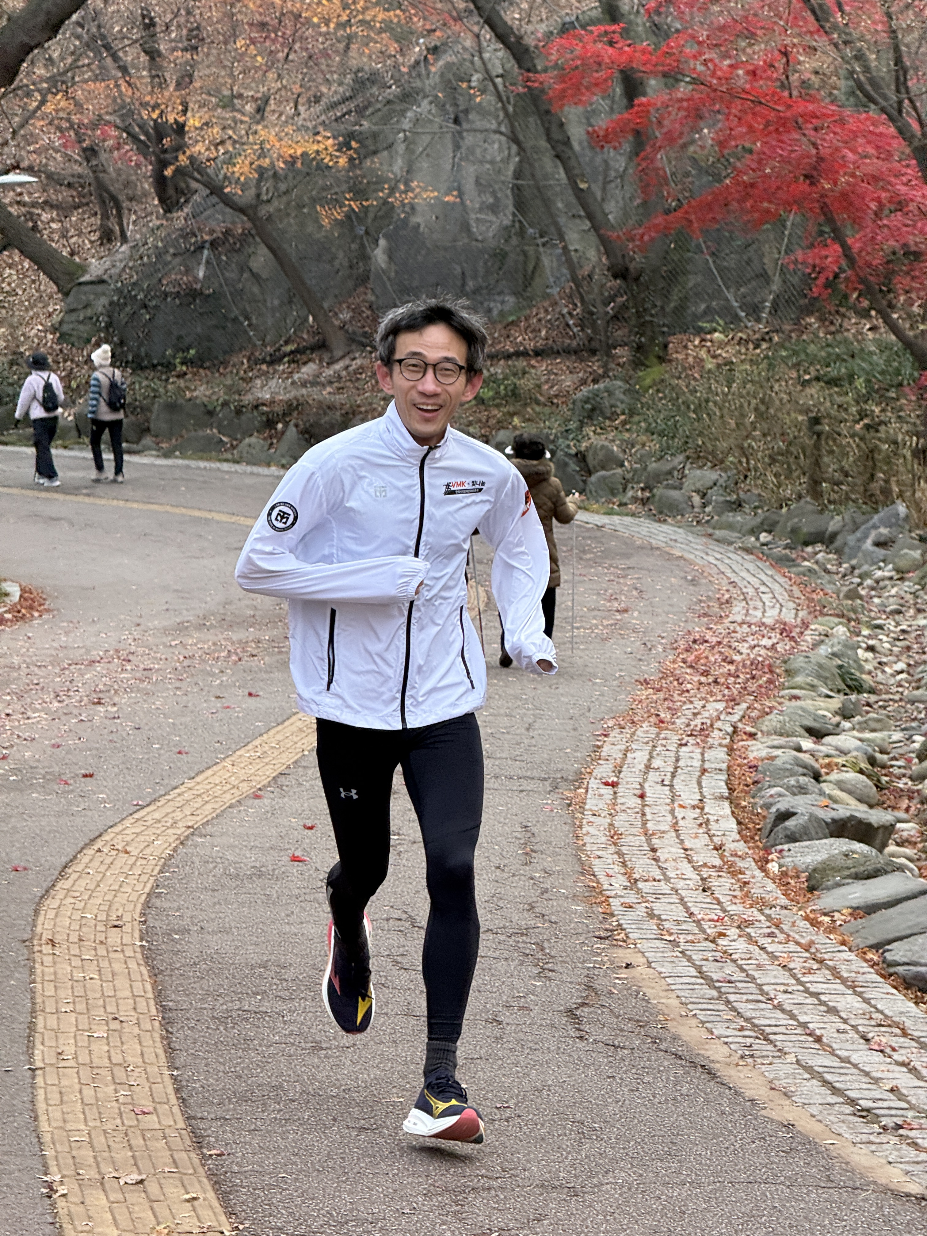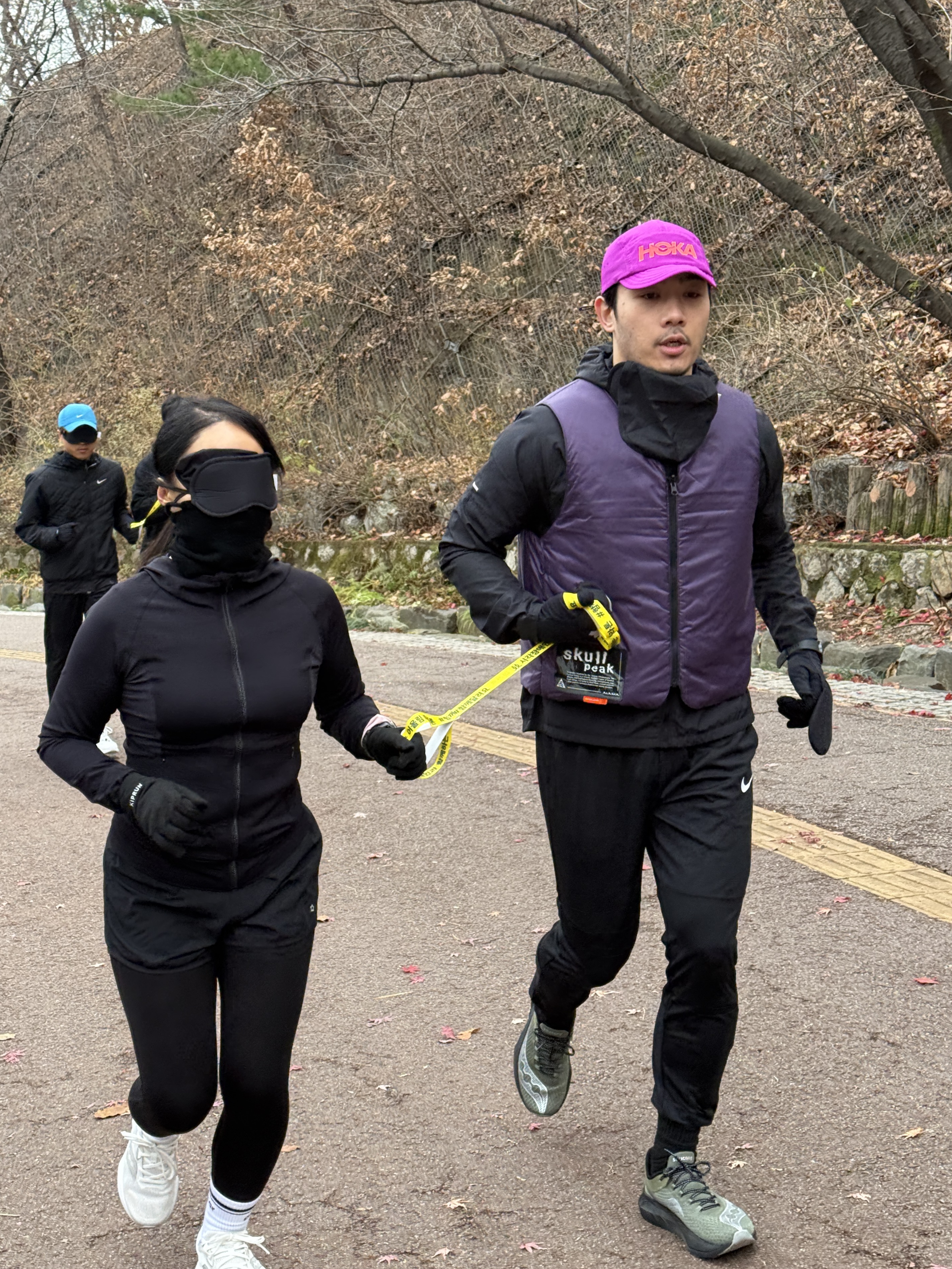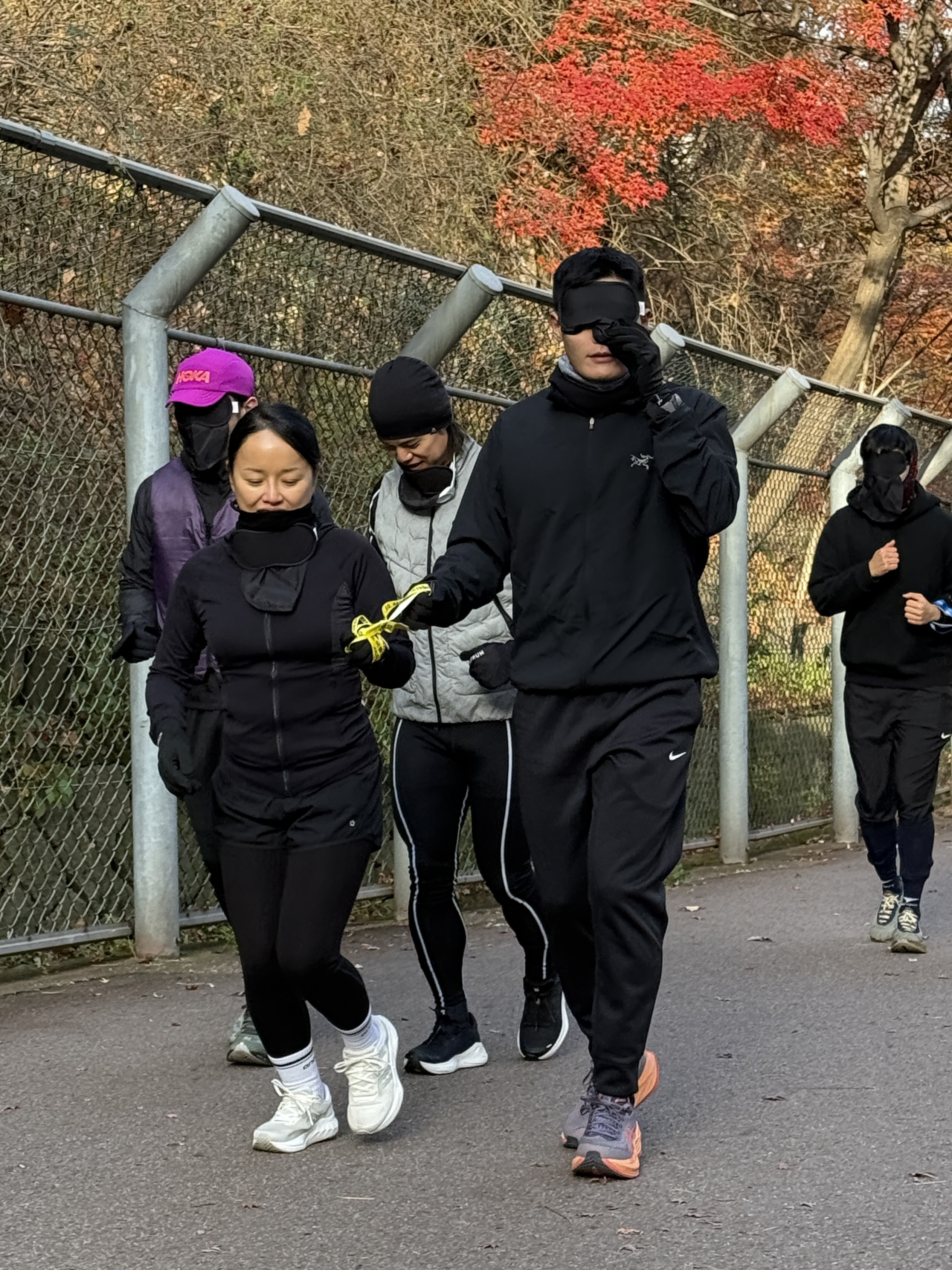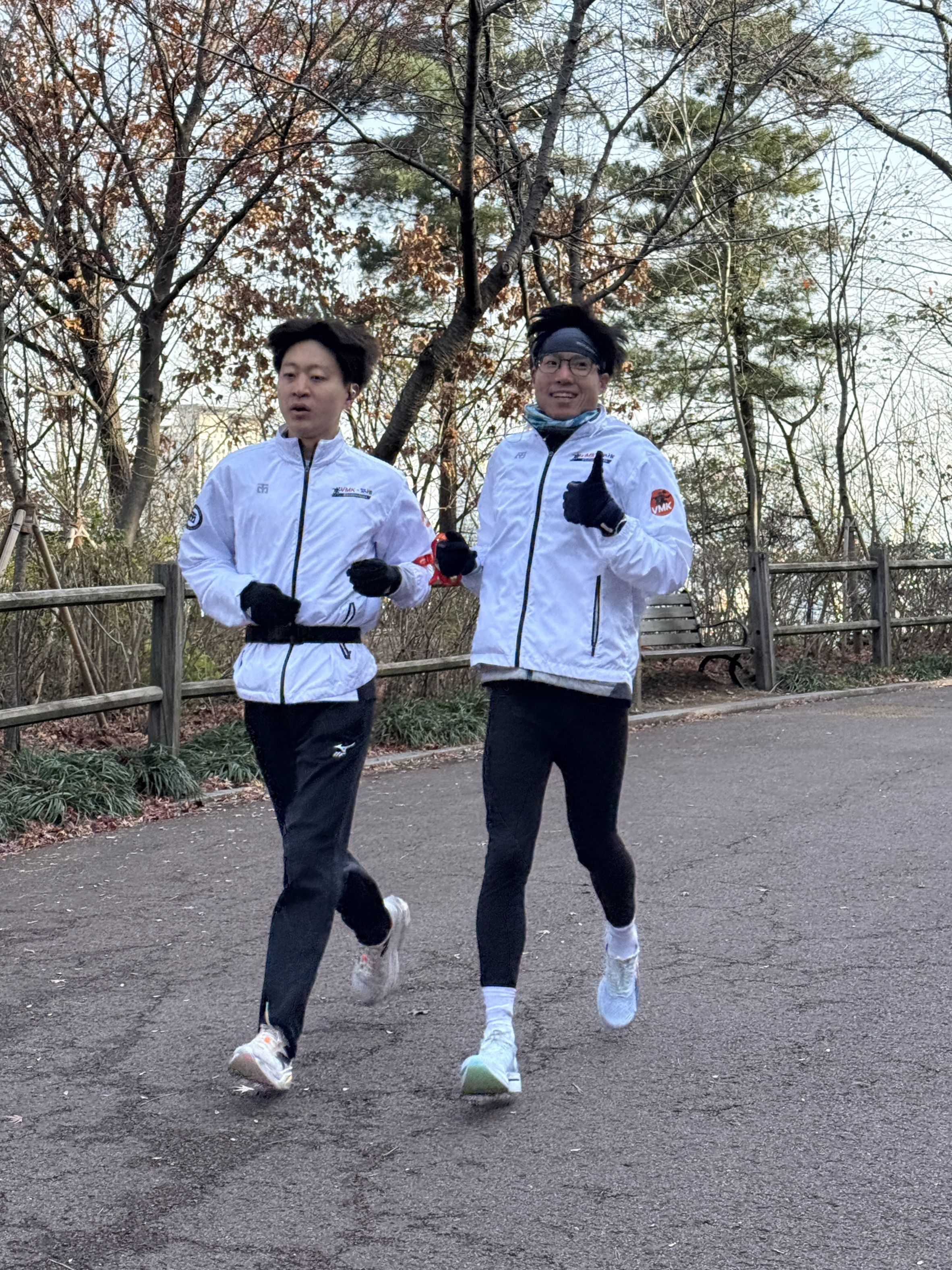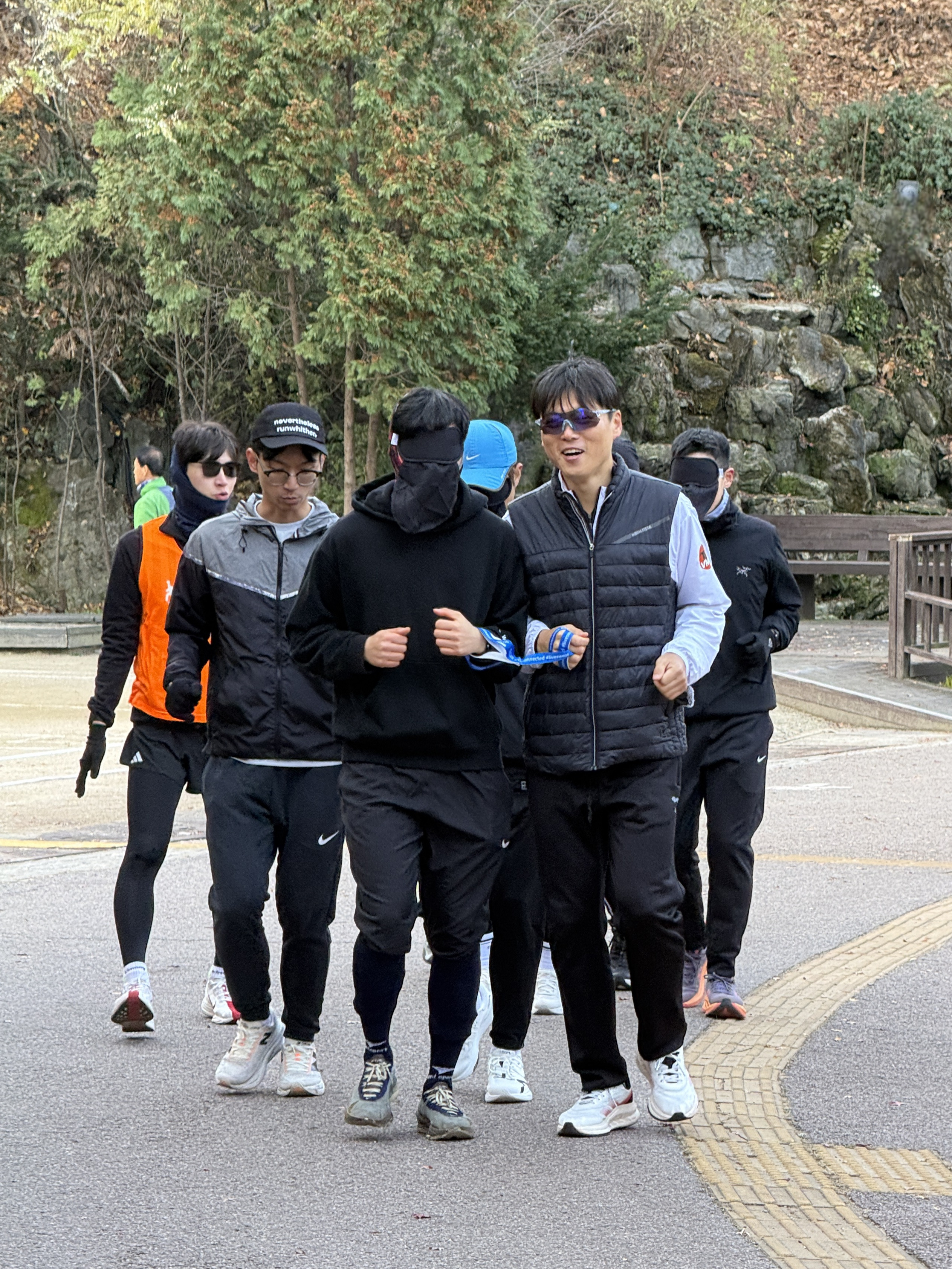 2025년 11월 29일 토요일 오전 9시, 서울 남산 북측순환로에서 진행된 한국시각장애인마라톤회(VMK) 정기 훈련과 가이드 러너 교육 사진입니다.11·29