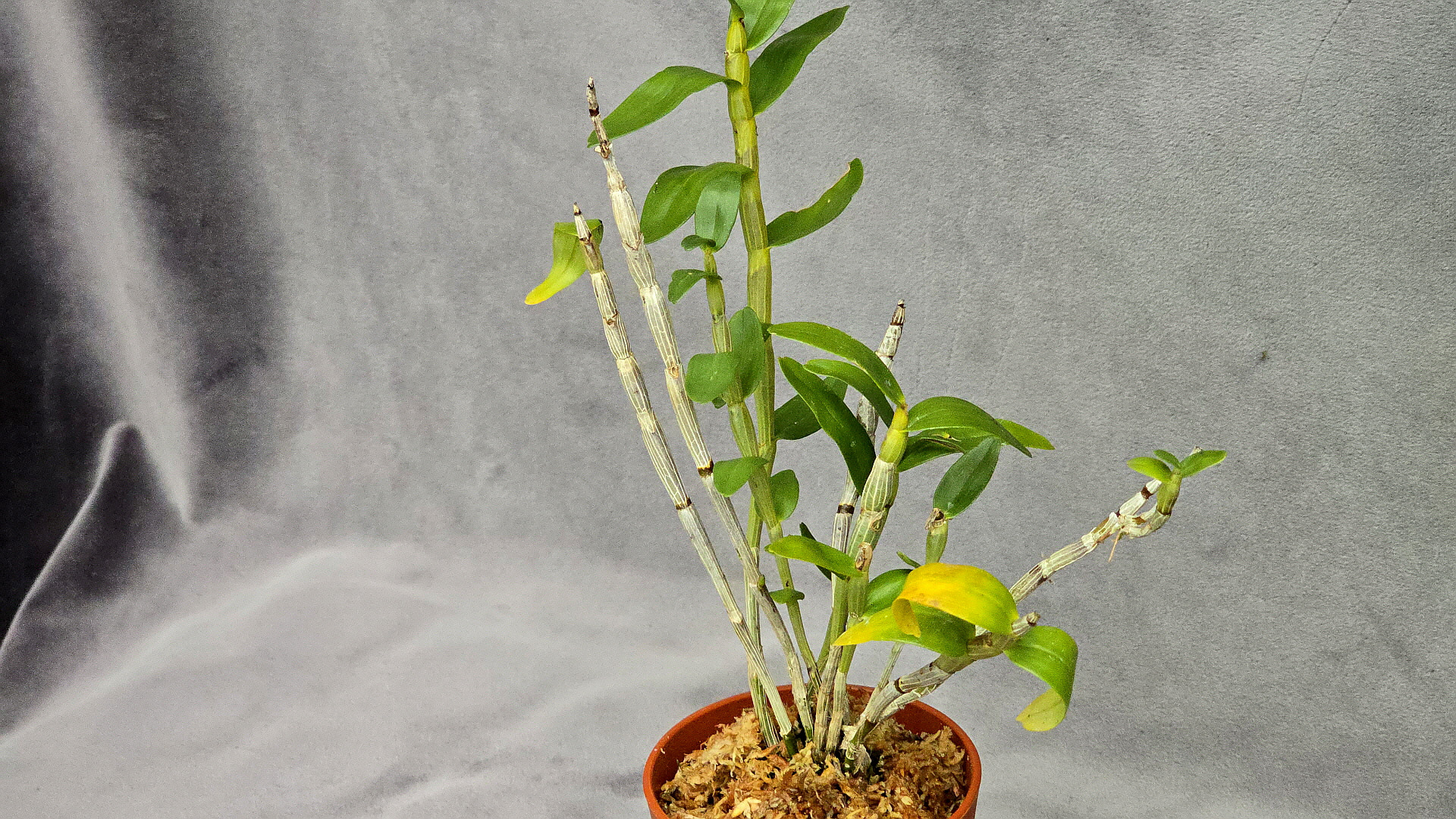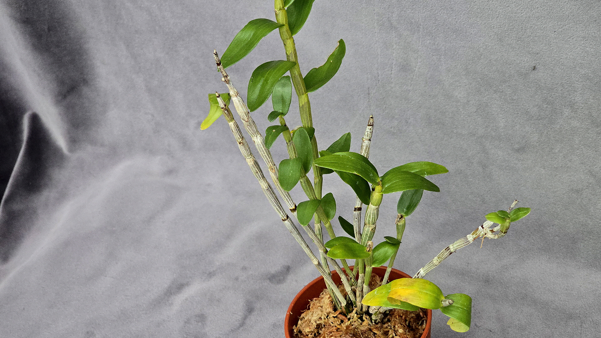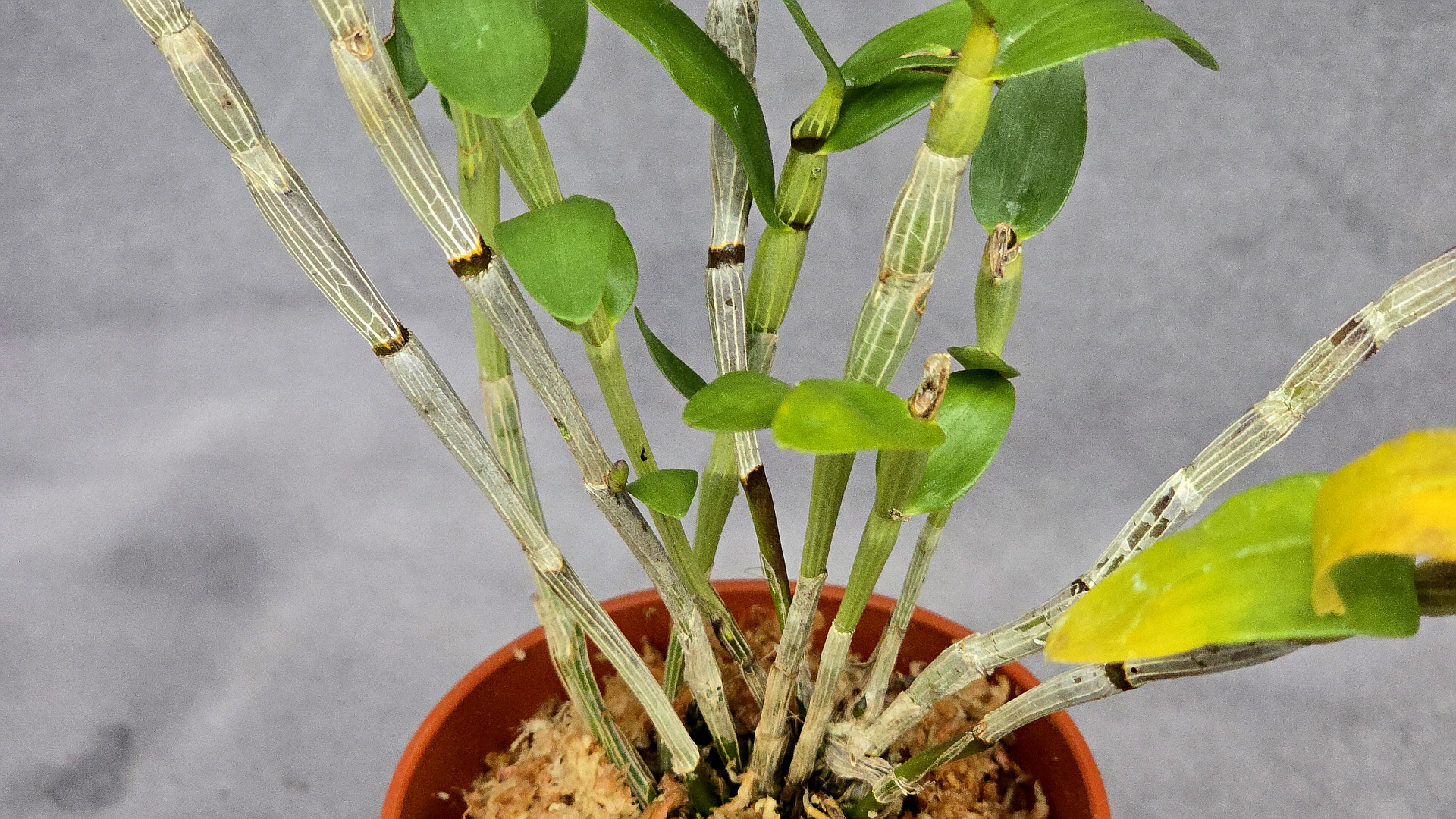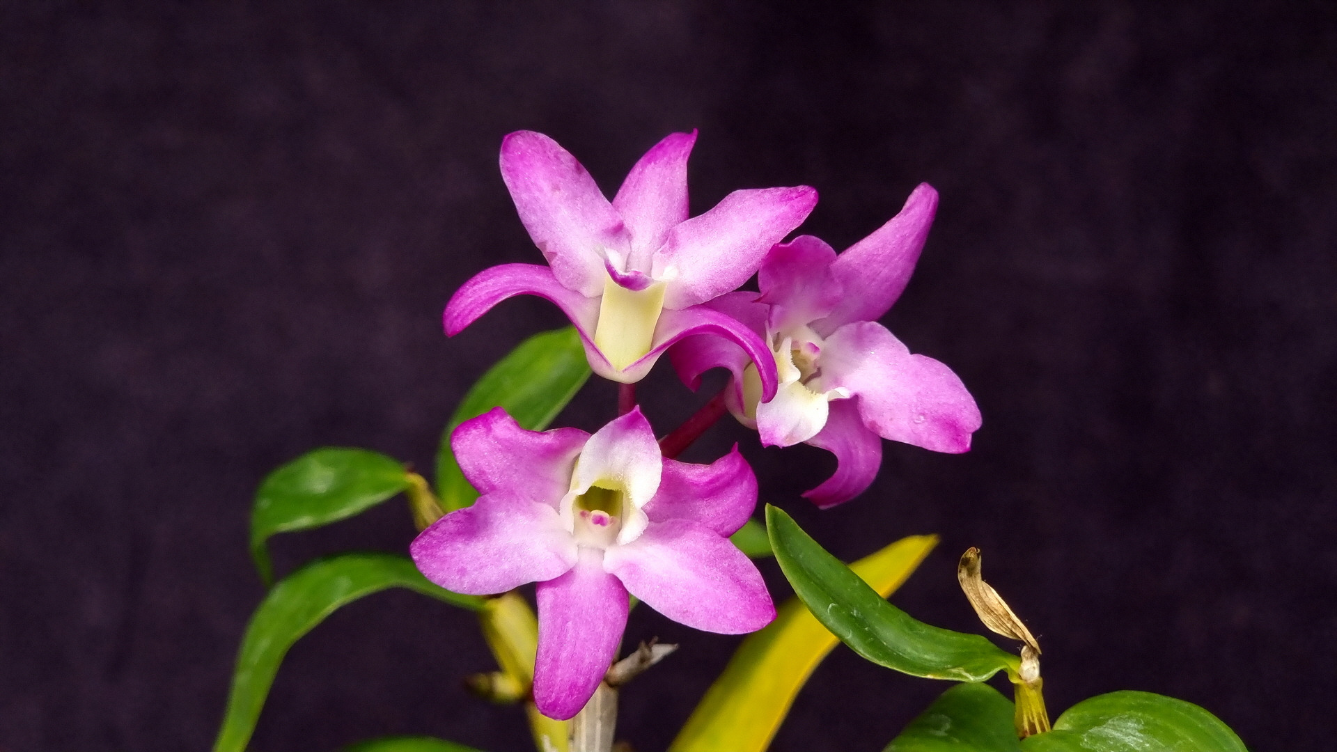화려하고 깨끗한 느낌의 홍화를 피우는 천사에서 변이된 석곡
