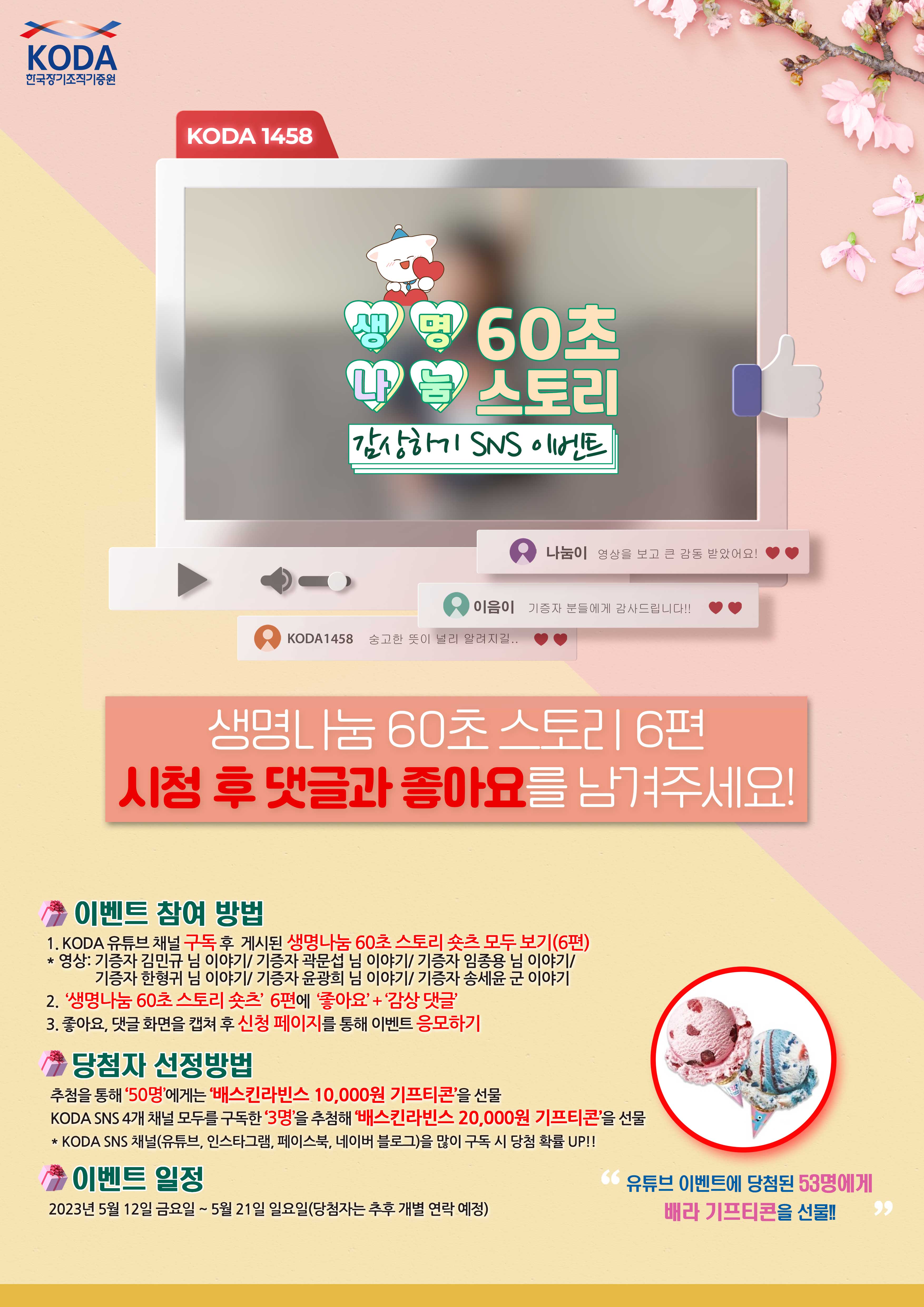 복지부 공공기관 한국장기조직기증원에서 배스킨 라빈스 2만원 기프티콘을 주는 이벤트를 하고 있네요~!!
