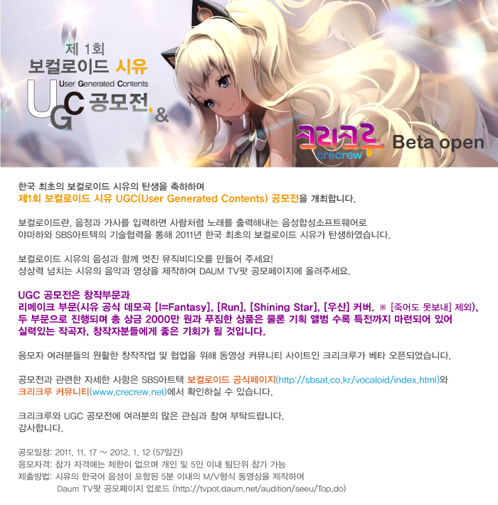 시유 UGC 공모전 개최 + 크리크루 오픈 안내 작성자VoRe|작성시간11.11.17|조회수1,497 목록 댓글 11 글자크기 작게가 글자크기 크게가 다음검색 현재 게시글 추가 기능 열기 북마크 신고 센터로 신고 댓글 댓글 11 댓글쓰기 답글쓰기 댓글 리스트 작성자백루묘랑 | 작성시간 11.11.21 크리크루가 드뎌 열렸군요!! 작성자제이 | 작성시간 11.11.22 으하...정말...하고 싶은데.....ㅜㅜ 작성자TOMO | 작성시간 11.11.22 하고싶은데 노래해주실분이없다.. 작성자DORTHY | 작성시간 11.11.25 하고 싶당 근데 시험이 얼마안남았당! ㅜㅜㅜㅜㅜㅜㅜ 작성자보컬린렌~♥♡ | 작성시간 11.12.31 해볼게요!!!!!!!!!!!! 댓글 전체보기