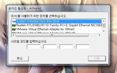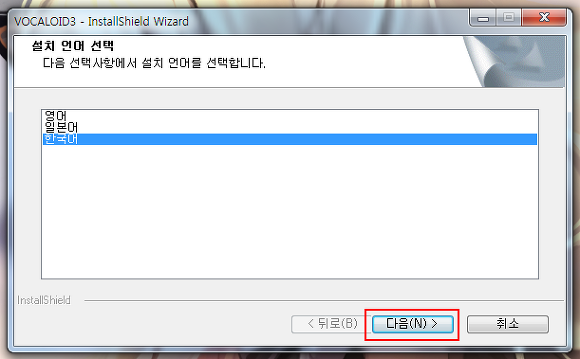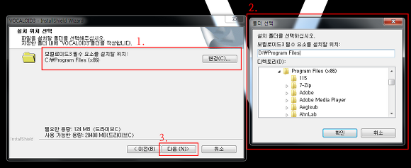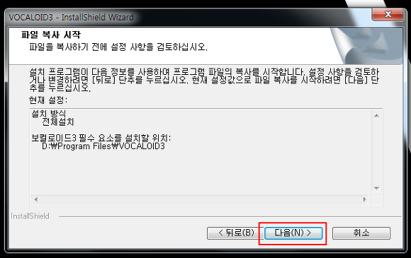 하드 디스크를 선택해주시고 보컬로이드3 DVD 케이스 하단부에 있는 시리얼 코드를 넣어주시길 바랍니다.