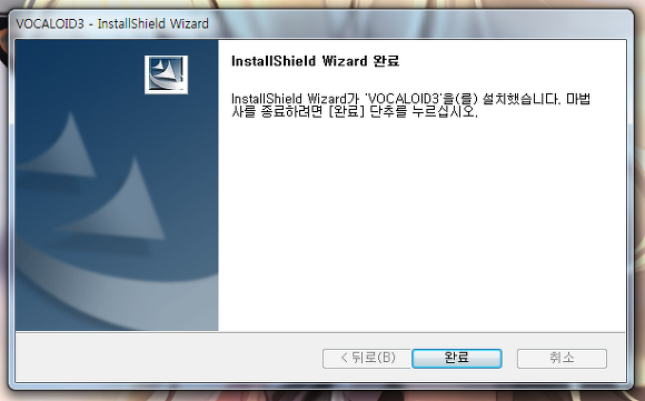 완료를 누르면 보컬로이드3 에디터 설치가 완료됩니다.