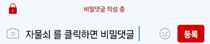 카페 어플,핸드폰으로 댓글 달때 자물쇠는 저기 위치에 있습니다.