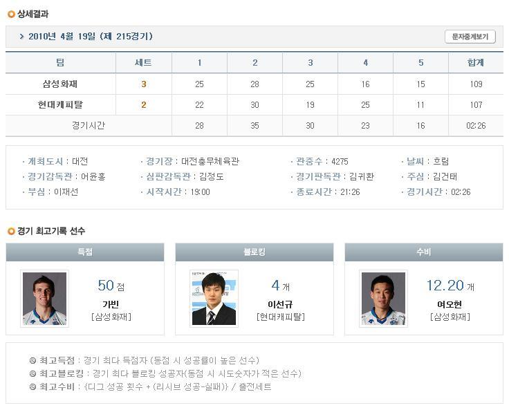 [V리그 남자부]삼성화재 : 현대캐피탈 작성자사랑방 지기|작성시간10.04.19|조회수16 목록 댓글 0 글자크기 작게가 글자크기 크게가 출처 : KOVO 다음검색 현재 게시글 추가 기능 열기 북마크 공유하기 신고 센터로 신고 댓글 댓글 0 댓글쓰기 답글쓰기 댓글 리스트