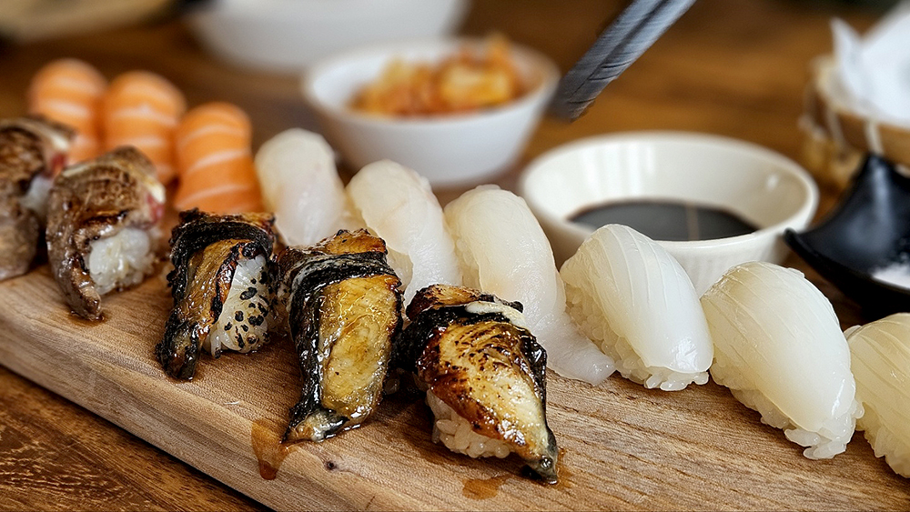 스시노찌 스시, 데리야끼치킨, 김치우동, 회덮밥, 돈가스를