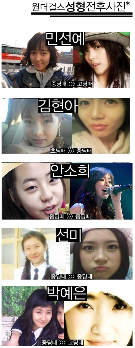 참 맑고 성형안했을것 같은 아이들이였는데 코,윤곽 정도는 다 한것 같은 느낌이에여...