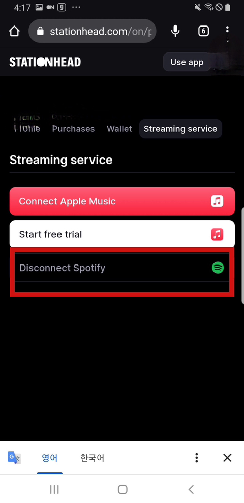 스테이션헤드에서는 스포티파이 연결 확인